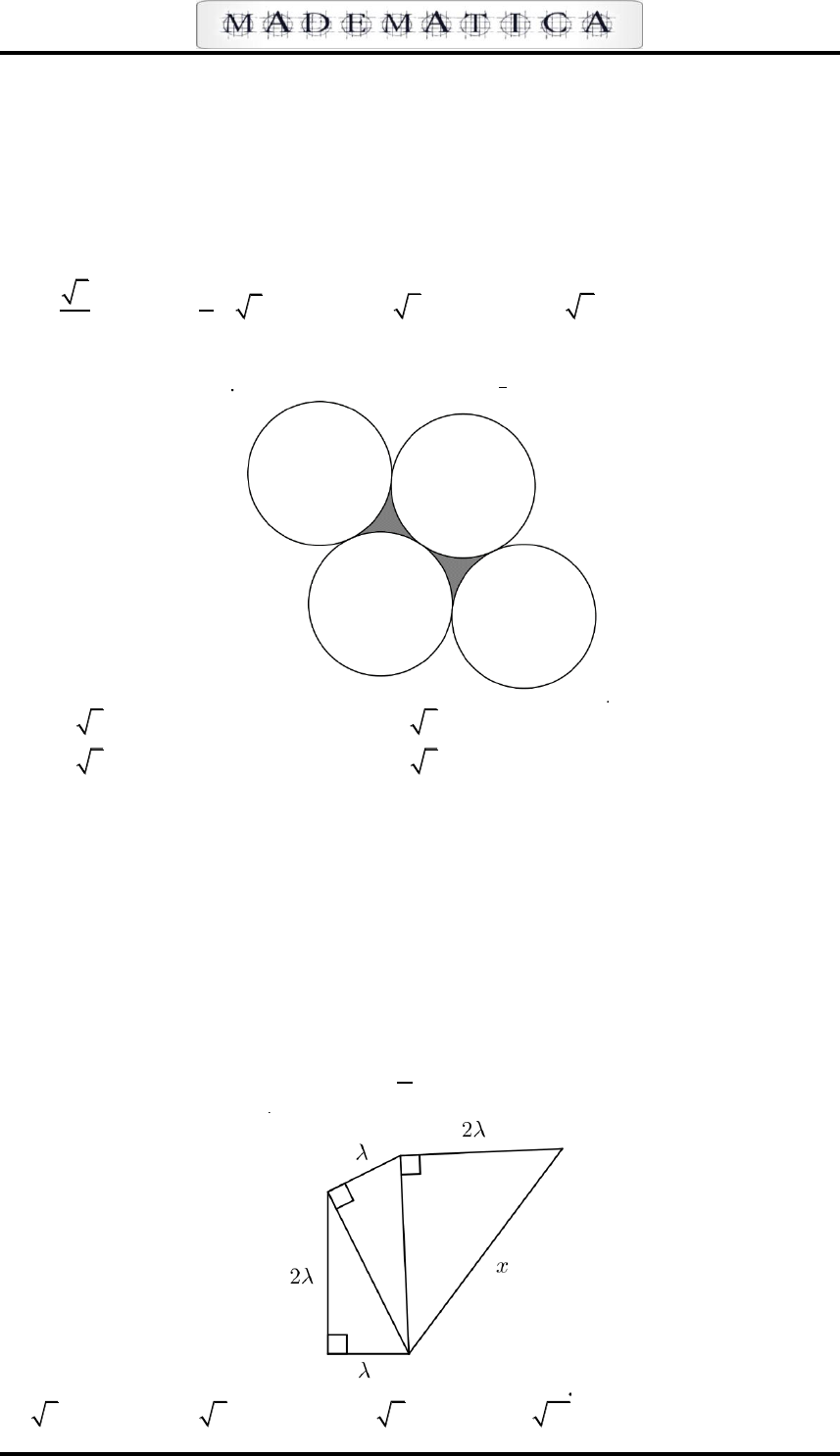 Resoluções elaboradas pelo Prof. Renato Madeira madematica.blogspot.com Página 1 de 66 EXERCÍCIOS DE GEOMETRIA PLANA DA AFA 1994 a 2019 ENUNCIADOS 1) (AFA 1994) Num triângulo ABC, os ângulos B̂ e Ĉ medem, respectivamente, 45 e 60 , o lado AC mede 2 cm. Então, a medida do lado BC (em cm) é: a) 3 1 3 + b) 1 3 2 + c) 1 3+ d) 2 2+ 2) (AFA 1995) Na figura, todos os círculos têm raio r. Qual a área da parte hachurada? a) ( )2r 2 3 − b) ( )2r 3 3 − c) ( )2r 4 3 − d) ( )2r 5 3 − 3) (AFA 1995) Num pentágono convexo, os ângulos internos estão em progressão aritmética. Qual o 3º termo, em graus dessa progressão? a) 54 b) 108 c) 162 d) 216 4) (AFA 1995) Dados dois triângulos semelhantes, um deles com 4, 7 e 9 cm de lado, e o outro com 66 cm de perímetro, pode-se afirmar que o menor lado do triângulo maior mede, em cm. a) 9,8 b) 11,6 c) 12,4 d) 13,2 5) (AFA 1995) Na figura abaixo, a razão x é: a) 5 b) 6 c) 2 2 d) 10 Resoluções elaboradas pelo Prof. Renato Madeira madematica.blogspot.com Página 2 de 66 6) (AFA 1995) No retângulo ABCD, BC e PC medem, respectivamente, 5 cm e 3 cm. Qual a área, em 2cm , do triângulo ABP? a) 32 3 b) 16 c) 19 d) 62 3 7) (AFA 1995) A razão entre as áreas de um quadrado de lado e de um círculo de raio r, que possuem o mesmo perímetro, é: a) 8 b) 6 c) 4 d) 2 8) (AFA 1995) Considere uma circunferência inscrita num quadrado de lado a. A área da região hachurada é: a) ( ) 2a 4 64 − b) ( ) 2a 4 32 − c) ( ) 2a 4 16 − d) ( ) 2a 4 8 − 9) (AFA 1996) Seja ABC um triângulo retângulo com catetos AB e BC. Divide-se AB em 10 partes congruentes e, pelos pontos de divisão, traçam-se retas paralelas a BC, cortando o lado AC e determinando 9 segmentos paralelos a BC. Se BC 18,= então a soma das medidas desses segmentos é: a) 81 b) 64 c) 49 d) 100 Resoluções elaboradas pelo Prof. Renato Madeira madematica.blogspot.com Página 3 de 66 10) (AFA 1996) A base maior de um trapézio mede 26 cm, a menor 14 cm e a altura 6 cm. As alturas dos triângulos formados pelos prolongamentos dos lados não paralelos, em cm, são: a) 8 e 9 b) 7 e 13 c) 91 e 14 d) 15 e 18 11) (AFA 1996) Qual a área do triângulo retângulo isósceles que inscreve uma circunferência de raio r 2 ?= a) ( )3 2 2+ b) ( )2 3 2 2+ c) ( )3 2 2+ d) ( )4 1 2+ 12) (AFA 1996) Qual a diferença entre a área de um triângulo equilátero de lado a e a área da circunferência nele inscrita? a) ( )2a 2 3 12 − b) ( )2a 3 3 12 − b) ( )2a 4 3 12 − d) ( )2a 5 3 12 − 13) (AFA 1996) O valor do menor ângulo formado pelos ponteiros de um relógio às 2h e 15min é: a) 15 b) 30 c) 17 30' d) 22 30' 14) (AFA 1996) Na figura abaixo, OA 5,= AB 3,= ˆ ˆ ˆAOB BOC COD= = = e ˆˆ ˆABO BCO CDO 90 .= = = Se 2x cos ,= então a área do triângulo CDO é: a) 23x b) 24x c) 26x d) 28x 15) (AFA 1996) Os lados de um triângulo ABC medem AB 20 cm,= BC 15 cm= e AC 10 cm.= Sobre o lado BC marca-se BD 3 cm= e traçam-se paralelas DE ao lado AB (E sobre AC) e DF ao lado AC (F sobre AB). O perímetro do paralelogramo AEDF, em cm, é: a) 24 b) 28 c) 32 d) 36 16) (AFA 1997) Sejam os triângulos ABC e CDE. O triângulo ABC está inscrito em uma circunferência de raio 3, o lado CA mede 3 e AB é diâmetro de . Os vértices D e E do triângulo CDE são a interseção do prolongamento dos lados CA e CB com a reta paralela a AB e tangente à circunferência . O valor de DE é: Resoluções elaboradas pelo Prof. Renato Madeira madematica.blogspot.com Página 4 de 66 a) 9 b) 5 3 c) 6 3+ d) ( )2 2 3+ 17) (AFA 1997) Considerando-se a figura abaixo, NÃO se pode afirmar que a) Se o triângulo ABC é isósceles, então os triângulos ABD, ACE e BCD são sempre, dois a dois, congruentes. b) Os triângulos ABD e AEC são congruentes se os lados AB e BC forem congruentes e F o incentro do triângulo ABC. c) Os triângulos ABD e AEC são congruentes se os lados AB e BC forem congruentes e F o ortocentro do triângulo ABC. d) Os triângulos BEF e CDF são congruentes se os lados AB e BC forem congruentes e F o baricentro do triângulo ABC. 18) (AFA 1998) Inscreve-se um quadrilátero convexo ABCD em uma circunferência tal que ˆABC x .= Então, ˆ ˆACB BDC,+ em graus, é o a) suplementar de x. b) suplementar de 2x. c) complementar de x. d) complementar de 2x. 19) (AFA 1998) Dois vértices de um triângulo equilátero pertencem a dois lados de um quadrado cuja área é 21m . Se o terceiro vértice do triângulo coincide com um dos vértices do quadrado, então, a área do triângulo, em 2m , é a) 2 3 1− b) 2 3 1+ c) 3 2 3− + d) 3 2 3+ 20) (AFA 1998) Seja ABCD um quadrado, ABE um triângulo equilátero e E um ponto interior ao quadrado. O ângulo ˆAED mede, em graus, a) 55 b) 60 c) 75 d) 90 Resoluções elaboradas pelo Prof. Renato Madeira madematica.blogspot.com Página 5 de 66 21) (AFA 1998) Seja o triângulo equilátero DEF, inscrito no triângulo isósceles ABC, com AB AC= e DE paralelo a BC (D sobre AB e E sobre AC). Tomando-se ˆADE ,= ˆCEF = e ˆDFB = pode-se afirmar que a) 2 + = b) 2 + = c) 2 3 + = d) 2 3+ = 22) (AFA 1998) Um círculo com área 2100 cm possui uma corda de 16 cm. Qual a área, em 2cm , do maior círculo tangente a essa corda e a esse círculo em pontos distintos? a) 36 b) 49 c) 64 d) 81 23) (AFA 1998) O pentágono ABCDE está inscrito em uma circunferência de centro O. Se o ângulo ˆAOB mede 40 , então a soma dos ângulos ˆBCD e ˆAED, em graus, é a) 144 b) 180 c) 200 d) 214 24) (AFA 1999) Na figura abaixo o perímetro do triângulo equilátero ABC é 72 cm , M é o ponto médio de AB e CE 16 cm= . Então, a medida do segmento CN, em cm, é um sétimo de a) 51 b) 50 c) 49 d) 48 25) (AFA 1999) Na figura abaixo, o lado do quadrado é 1 cm. Então, a área da região sombreada, em 2cm , é a) 1 4 2 − b) 1 2 2 − c) 1 4 4 − d) 1 2 4 − Resoluções elaboradas pelo Prof. Renato Madeira madematica.blogspot.com Página 6 de 66 26) (AFA 1999) De 2h 45min a 4h 35min, o ponteiro das