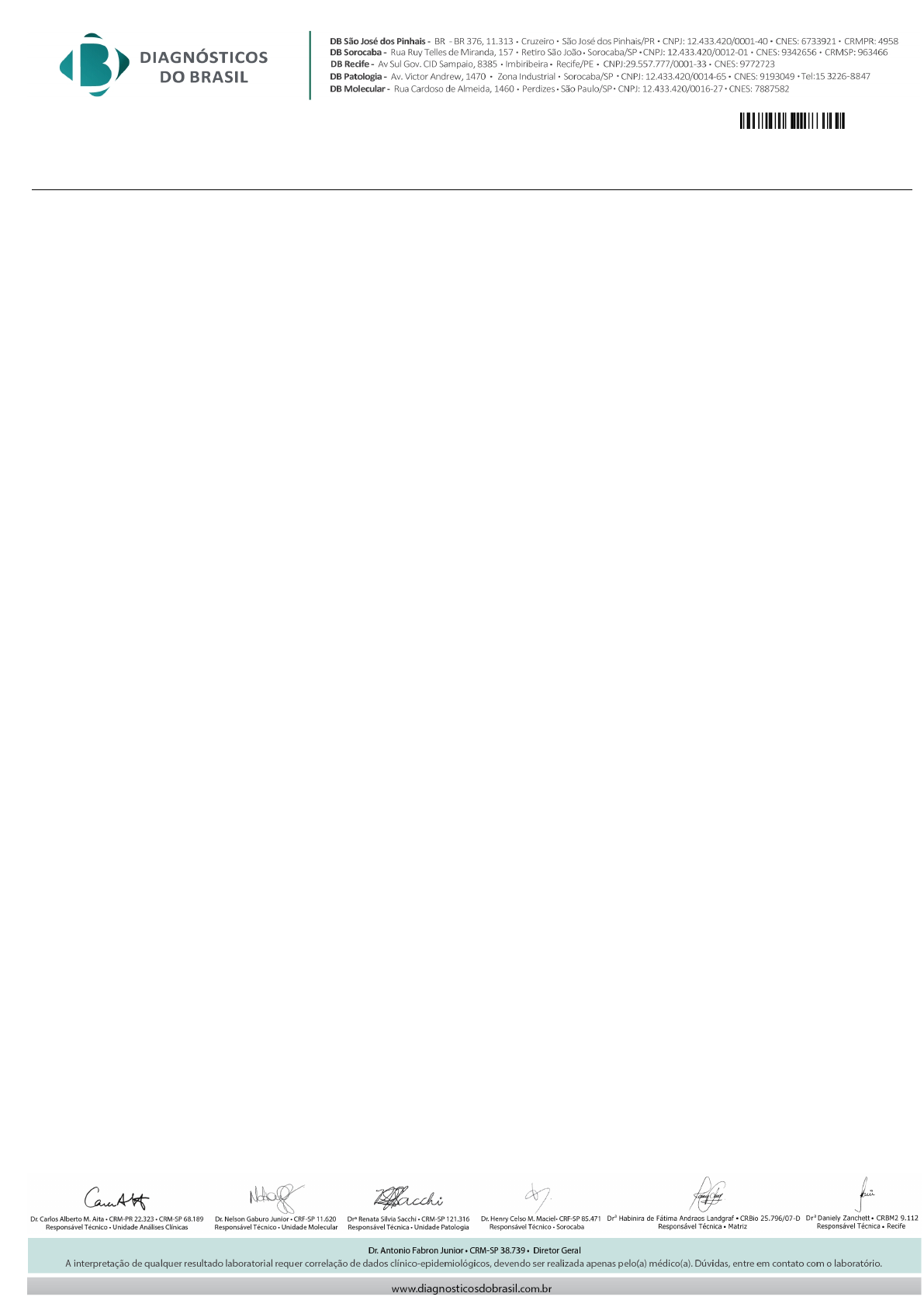 Paciente: LEANDRO VIEIRA HOLANDA LAVOR NETO Idade: 33a Cód. Apoiado: Pedido:63741814943541193051 1121769109Apoiado: 9181 - HOSPITAL MEMORIAL PETROLINA LTDA Dt. Cadastro:Masculino 24/11/2020Solicitante: Sexo: 02/04/1987Dt. Nasc:MÉDICO NÃO INFORMADO Cidade/UF: PETROLINA/PE CORONAVÍRUS 2019 DETECÇÃO POR PCR (COVID19) Valor de referência Não detectadoResultado: Não detectado Nota: 1- Limite de detecção do teste (LoD) é de 10 GCE/uL ou cópias genômicas equivalentes/uL. 2- O resultado Detectado indica a presença do patógeno na amostra analisada. 3- O resultado Não detectado indica a ausência do patógeno ou concentração inferior ao limite de detecção do teste. 4- Em caso de resultado Não detectado e persistindo os sintomas, sugere-se a critério medico a repetição do mesmo ensaio em 5 dias. 5- Este teste é capaz de detectar a presença do patógeno SARS-COV-2 que causa a doença COVID-19. 6- O SARS-CoV-2 é um vírus pertencente à Família Coronaviridae de introdução recente na espécie humana. É um vírus com capacidade de disseminação rápida sendo associado a quadros respiratórios leves ou com complicações como pneumonia ou síndrome respiratória aguda grave. Referência: D. H. Lee. [TOCE: Innovative Technology for High Multiplex Real-time PCR.] Seegene Bulletin (2012)1: 5-10 N. Merindol, et al. SARS-CoV-2 detection by direct rRT-PCR without RNA extraction. Journal of Clinical Virology 128 (2020) 104423 Material: SWAB NASOFARINGE E OROFARINGE Método..: PCR EM TEMPO REAL Coletado em (24/11/2020 11:42) Assinado eletronicamente em:(27/11/2020 08:39) por Dra. Priscila Vascon Macedo - CRBIO 79876/01-D