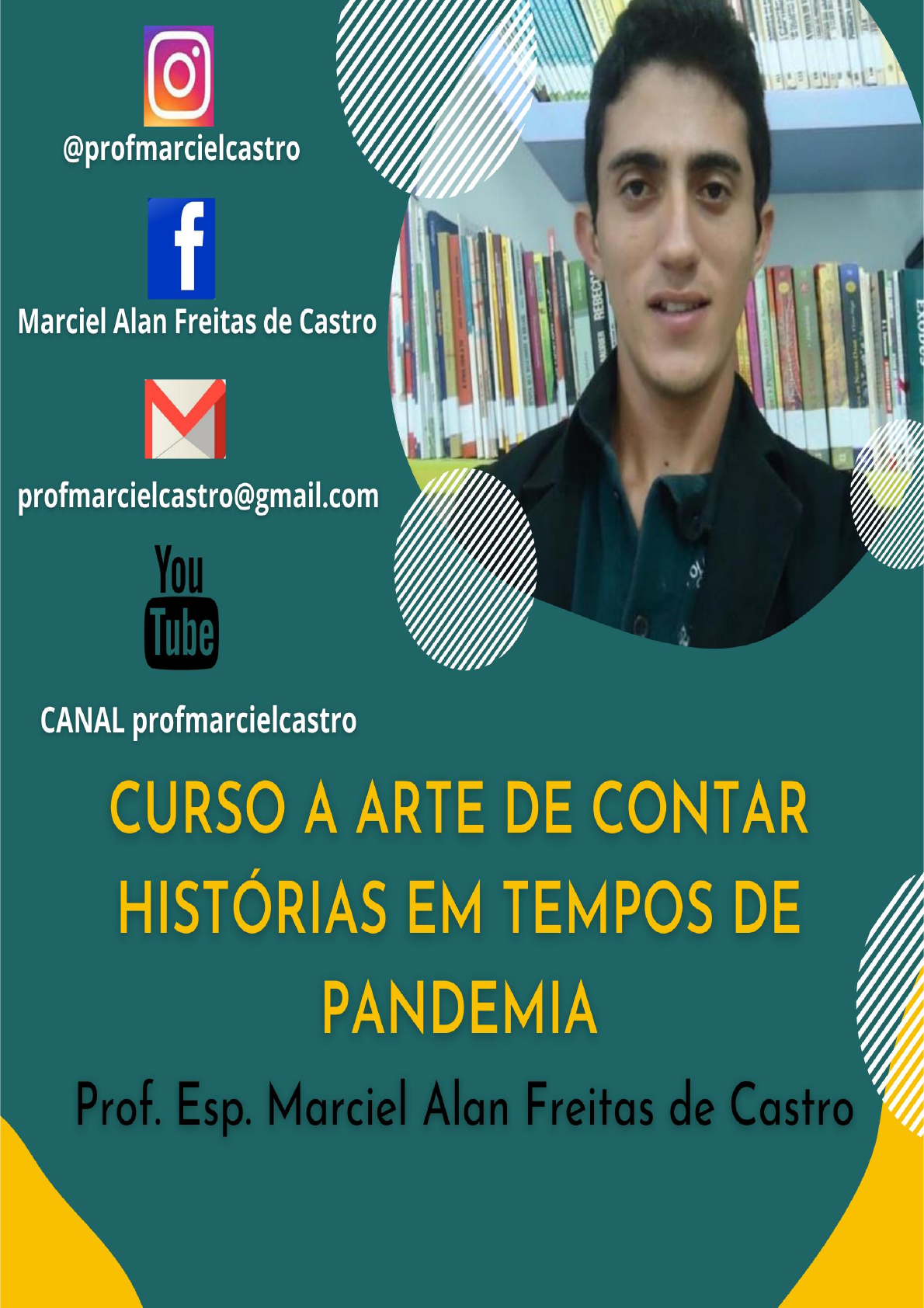 A princípio apresentam-se três fatores relevantes na construção da Proposta do Curso A Arte de Contar Histórias em Tempos de Pandemia organizado pelo professor Marciel Alan Freitas de Castro. O primeiro fator é que ele apresenta, fundamentado numa abordagem teórica atual e relevante, a importância do processo de contar histórias para crianças na fase de aprendizagem da leitura e da escrita. O segundo fator é que o livro demonstra que a criança é capaz de recriar histórias clássicas, e capaz de recontar a história que o professor ou o contador de história recitou para ela. Trata-se de um processo de recriação lúdica, artística e fantástica. Um processo que, se devidamente explorado por educadores e professores, é capaz de facilitar a criança a ter domínio das técnicas de leitura e escrita. O terceiro fator é que a criança, após o processo de ouvir e de recontar histórias clássicas, torna-se muito mais suscetível, muito mais livre e aberta ao processo de aprender a ler e a escrever. Marciel Alan Freitas de Castro traz uma audaciosa proposta de reatualização do clássico processo de contar histórias para crianças. Ao mesmo tempo, ele demonstra que contar histórias ainda é uma ferramenta poderosa para criar o sujeito leitor, para inserir a criança no mundo da leitura e da produção textual. Por tudo isso, afirma-se que este Curso é uma boa ferramenta teórica, de reflexão e de apoio pedagógico para educadores, professores, contadores de histórias e outros profissionais que, de forma direta ou indireta, estão envolvidos com o lúdico processo de mergulhar as crianças no mundo da leitura e da produção textual. Professor Marciel Alan Freitas de Castro Coordenador do Curso A Arte de Contar Histórias em Tempos de Pandemia A arte de contar histórias vem se perpetuando desde a antiguidade até a pós-modernidade, tempo este no qual o contador de histórias vem ganhando espaço, e teoricamente as produções orais e escritas resgatadas por estes profissionais que oralizavam os contos de tradição oral e que advém da herança e da tradição dos povos ancestrais passaram a ser estudados nas universidades. Visto que as produções e contações realizadas remetem aos hábitos, crenças e enfim a cultura local dos povos da antiguidade. Vale salientar o que diz Busatto, quando enfoca que (2006, p. 25) “A contação de histórias ou narração oral de histórias permite ao sujeito que conta e ao sujeito que ouve um contato com outras dimensões do seu ser e da realidade que o cerca”. As histórias contadas permitiam aos sujeitos pensar nas diferentes realidades que o cercavam, bem como nas relações humanísticas, experiências e vivências dos familiares com o passado. Visto que neste momento de contação de história valores eram repassados por pessoas mais velhas a fim de ajudarem a quem ouvia determinada história, estes por sua vez poderiam procurar ajuda dos contadores como meio de superar e enfrentar o medo e a angústia, dentre outros sentimentos que assolavam a comunidade na época. As histórias contadas eram carregadas de sentimento do contador, quanto este contava e entoava com ajuda de instrumentos sonoros, por exemplo, o violão, transmitia ensinamentos e alguns mistérios aprendidos com seus ancestrais. O sujeito era contador de histórias e músico por que contava e encantava com sua poética, convivia entre os povos de sua comunidade, e apresentava como essência a promoção de valores mediados pela leitura e entoação de textos de tradição que comportavam versos livres. Visto que quando o contador contava as histórias valores eram transmitidos, bem como era despertado o interesse nas crianças por estes textos. Assim tal processo foi estabelecendo relações entre o contador e ouvinte e a partir daí tornou-se um marco para a nova trajetória de sentidos entre o contador e ouvinte. É importante frisar o que diz Gomes (2003, p. 224) em relação ao professor como contador de história e formador de leitores: O professor, imbuído das funções de contador de histórias em sala de aula, é um elemento aglutinador de interesses múltiplos e desencadeador de processos que favorecem o gosto pela leitura e possibilitam a formação de leitores. Contar histórias é uma atividade lúdica de leitura que pode reverter a relação conflituosa entre alunos e livros literários, desmistificando, assim, o caráter enfadonho e desinteressante atribuído ao ato de ler. A atividade de mediação literária de contos orais eram realizadas em diferentes contextos por educadores que assumiram o papel de narrador, de contador e que apresentavam familiaridade com diferentes suportes da antiguidade e que continham e veiculavam textos literários que hoje passaram a ser resgatados por escritores e estudiosos de toda parte do mundo. É importante frisar que os educadores ou contadores passaram a atuar em sala e aprimoraram as suas práticas e habilidades em relação ao momento de mediar à receptividade dos contos. No qual estes profissionais se preocupam com o uso e com as atribuições da linguagem poética no espaço escolar, bem como ao uso de expressões orais, visuais, corporais e por fim gestuais e se apoiam no material impresso e na oralidade narrativa mediada pelo contador, mas antes os contadores realizam escolhas, primeiro no que se trata do repertório de leitura, ao público que é destinado o texto e o que deve ser previamente elaborado, adaptado, ou seja, mudanças na estrutura interna ou externa são aplicadas antes da apresentação oral pelo contador. Os contadores de história abriam caminhos que permitiam o ouvinte entrar no universo da literatura. Esse momento representava para o sujeito leitor um estado de encanto e de estar hipnotizado com os múltiplos gêneros que compreende a literatura. Assim é a partir deste contato com o texto literário que o leitor pode apresentar o gosto pela leitura e se transformar em um mediado