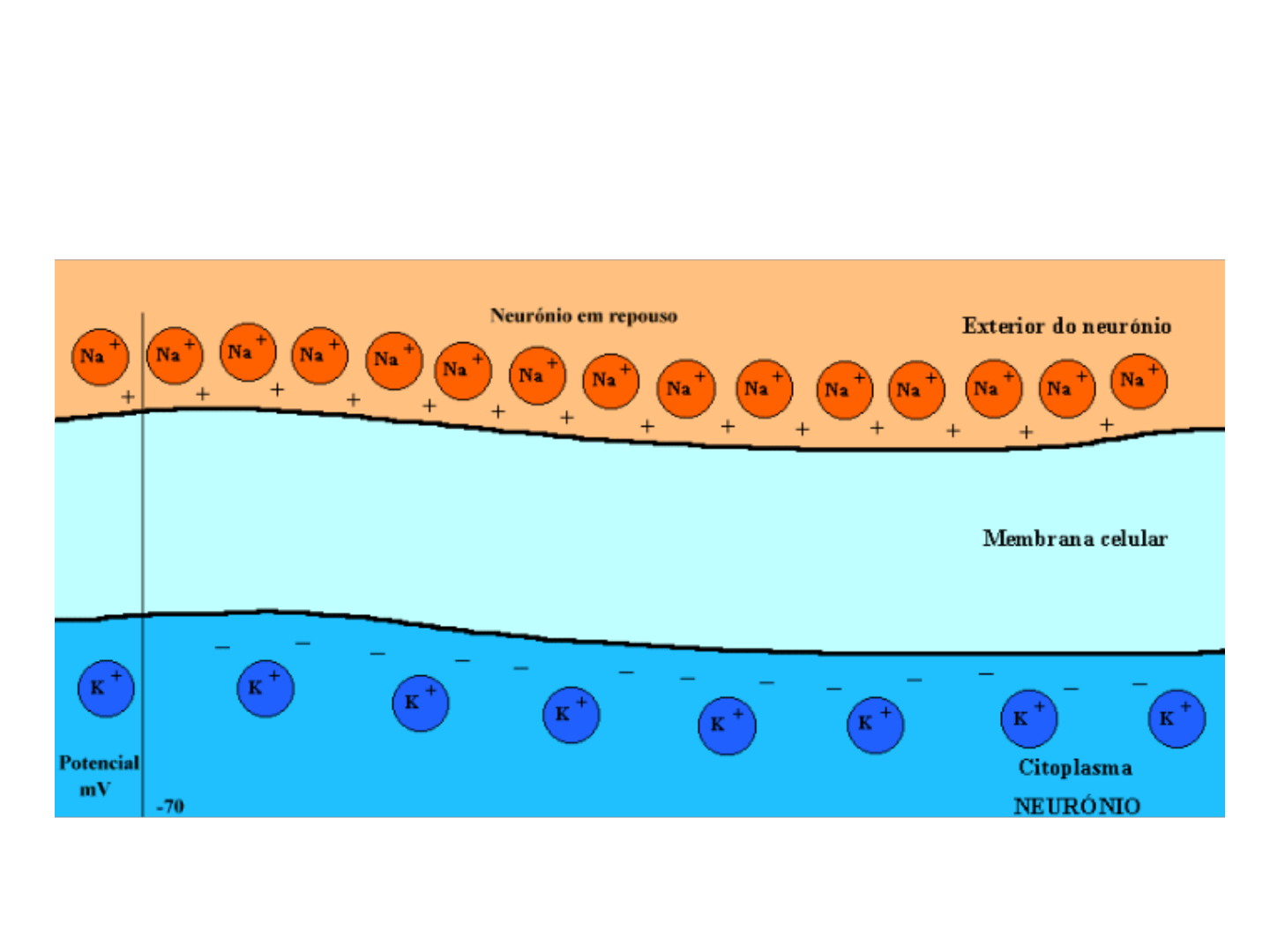 Fisiologia Humana Bioeletrogênese Prof. Carlos Eduardo Brasil Neves, D.Sc. Membrana Celular Composição Química dos Líquidos Intra e Extracelulares (mmol/L) Íon Intracelular Extracelular K+ 150 5 Na+ 2 140 Cl- 10 105 Ânions Orgânicos 65 0 Permeabilidade da membrana fosfolipídica s/ proteínas Proteínas de transporte Proteínas carreadoras proteínas de canal +rápido Transportes através da Membrana • Transporte Passivo – Sem gasto de energia, dependente do gradiente de concentração de íons – Difusão Simples – Difusão Facilitada • Transporte Ativo – com gasto de energia, realizado contra o gradiente de concentração de íons – Bomba de Na++/K+ Tipos de transporte através da membrana Difusão Simples • É o movimento contínuo de moléculas por entre as outras nos líquidos e nos gases. • Os íons estão em constante movimento através dos meios intra e extracelular, através de canais voltagem- dependentes. Difusão Facilitada • Difusão mediada por carreador Velocidade Efetiva de Difusão • Depende: – Permeabilidade da membrana; – Diferença de concentração da substância difusora; – Diferença de pressão através da membrana; – Diferença de potencial elétrico (ddp) Transporte Ativo • Ocorre quando a membrana celular transfere moléculas ou íons contra um Gradiente Eletroquímico,que é a soma de todas as forças difusionais (diferença de concentração, de potencial elétrico e de pressão), que agem sobre a membrana. • Divide-se em: – Transporte ativo primário – energia derivada diretamente do ATP – Transporte ativo secundário – energia é derivada de gradientes iônicos gerados no TA primário. Bomba de Na++/K+ • Esta bomba está presente em todas as reações do corpo e é a responsável pela manutenção das concentrações de sódio e potássio através da membrana celular, além de estabelecer um potencial elétrico negativo no interior da membrana. Bomba de Na++/K+ Devido ao bombeamento de 3 íons sódio para fora da célula e de apenas dois íons potássio para seu interior gera um positividade no exterior da célula e cria um déficit de íons positivos no interior da célula, criando assim um potencial elétrico através da membrana. Transporte Ativo Secundário Transporte de Água através da Membrana - Osmose Bioeletrogênese • Comunicação ao longo do neurônio ocorre por sinais elétricos • A corrente elétrica ocorre por movimento iônico • Distribuição iônica : – Ânions - Proteínas intracelulares, Cl- – Cations - Na+, K+ Potencial de membrana • O potencial de membrana é a voltagem através da membrana neuronal em qualquer momento (Vm). Pode estar em repouso ou não. Observamos que o interior do neurônio é eletricamente negativo (cerca de -65 mV). • O potencial de repouso é aquela diferença de potencial constante quando o neurônio não está gerando impulsos. Mensuração do potencial de membrana TIPO CELULAR Em (mV) Neurônio -70 Músculo esquelético -80 Músculo cardíaco (atrial e ventricular) -80 Músculo liso -55 Potencial de ação do neurônio • O potencial de ação é uma inversão rápida da situação de negatividade do interior do citosol do neurônio em repouso, que por um instante, fica carregado positivamente em relação ao exterior. • Os potenciais de ação assemelham-se em tamanho e duração e não diminuem à medida em que são conduzidos ao longo do axônio, ou seja, são de tamanho e duração fixos. • A aplicação de uma despolarização crescente a um neurônio não tem qualquer efeito até que se cruze o limiar e, então, surja o potencial de ação. Por esta razão, diz-se que os potenciais de ação obedecem à "lei do tudo ou nada". Etapas do potencial de ação Estado de repouso – célula polarizada; Etapa da despolarização – membrana permeável aos íons sódio – interior tende a positividade. Nas fibras grossas o PM ultrapassa o valor zero. Nas fibras delgadas chega próximo a zero; Etapa da repolarização – em milésimos de segundo os canais de sódio se fecham, abrem os canais de potássio. Repolarização da membrana. Etapa de Hiperpolarização – após a repolarização ocorre o restabelecimento das concentrações de sódio e potássio nos meios intra e extracelulares. Atuação das bombas de Na+/K+ Potencial de ação Tempo (ms) Período refratário absoluto Período refratário relativo Po te nc ia l d e m e m b ra na ( m V ) Pe rm e a b il id a d e i ôn ic a Período refratário Potencial de ação Û Período refratário absoluto Û : período de tempo durante o qual uma célula não pode produzir um segundo potencial de ação. Û Período refratário relativo: Û período que se segue a um potencial de ação no qual é possível gerar uma nova despolarização; no entanto, o estímulo deve ter intensidade superior à utilizada para gerar o primeiro. Propagação do Potencial de ação do neurônio • Em geral, os PAs são gerados apenas nos axônios, por serem estes ricos em canais de sódio. • O PA é propagado ao longo da membrana, devido ao fluxo iônico. O percurso do impulso nervoso no neurônio é sempre no sentido dendrito è corpo celular è axônio. Propagação do Potencial de Ação • Os axônios de maior diâmetro conduzem o PA com maior velocidade do que os axônios menos calibrosos. Isto porque os mais calibrosos são revestidos com bainha de mielina e o PA é propagado pelos nodos de Ranvier (onde existem canais iônicos de baixo limiar de excitabilidade). • Nas regiões dos nódulos de Ranvier, a onda de despolarização "salta" diretamente de um nódulo para outro, não acontecendo em toda a extensão da região mielinizada (a mielina é isolante). Desmielinização na doença esclerose múltipla Sinapse • é um tipo de junção especializada em que um terminal axonal faz contato com outro neurônio ou tipo celular • Podem ser: – Elétricas; ou – Químicas (maioria) Sinapses Elétr