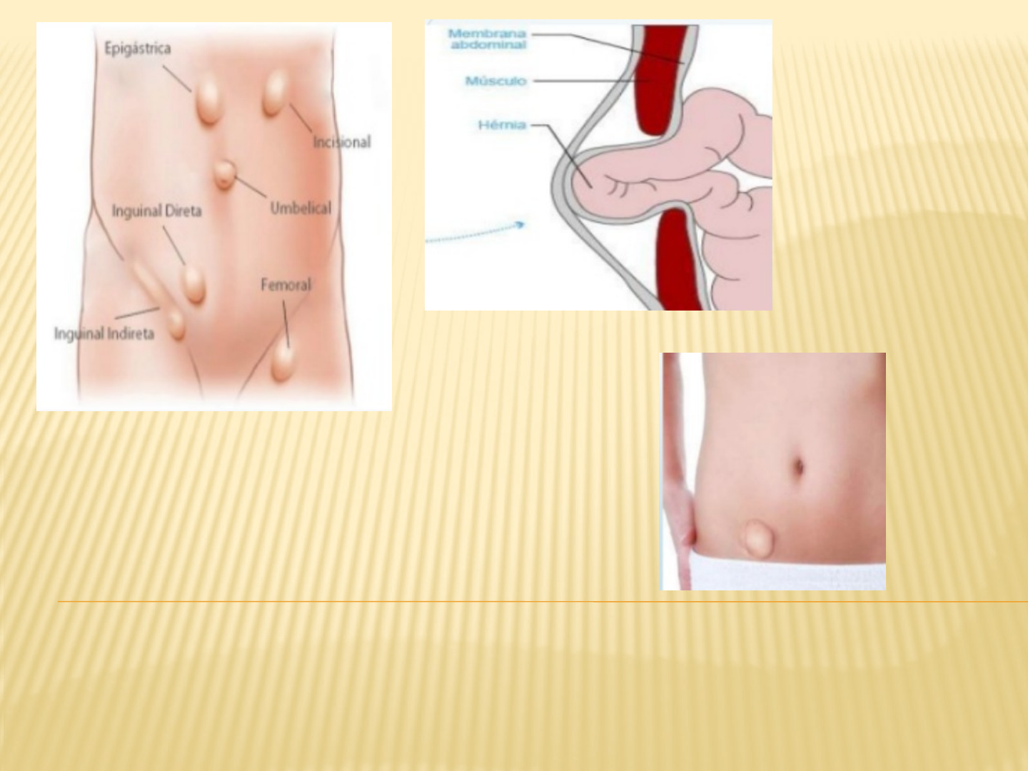 HERNIORRAFIA OQUE É ? Herniorrafia ou hernioplastia é a cirurgia que visa corrigir o defeito na musculatura e/ou aponeurose (capa que reveste os músculos) que permite o aparecimento da hérnia abdominal. Como é feita a herniorrafia ? A técnica consiste no fechamento do anel herniário (defeito acima relatado) por meio de pontos cirúrgicos ou, mais atualmente, com a colocação de telas. Essas telas são como uma rede, feita de material orgânico, sintético ou ambos e que tem como objetivos o fechamento do defeito e a formação de tecido cicatricial (fibrose) mais espesso e resistente que o tecido que se formaria sem a colocação da tela. Esse tecido formado com a tela, e como dito, mais espesso e resistente, diminui a chance de recidivas (formação de outras hérnias no mesmo local). TELA Em que casos é indicado? A cirurgia é indicada em casos de hérnias abdominal abaixo do abdome, hérnias epigástricas que surgem na linha média do abdome, das hérnias umbilicais próximo ou em volta do umbigo ou ainda as hérnias inguinais, que surgem mais próximas da virilha ou na região da coxa e a parte inferior do abdome. Neste último caso, podem descer até os testículos nos homens levando ao aparecimento das hérnias inguinoescrotal. A cirurgia se torna a maior aliada para este tratamento. Assistência de enfermagem pré-operatória se a hérnia estrangulada prevalecem as condições de emergência cirurgia eletiva em geral paciente está em boas condições físicas, então: escovar as regiões supra púbica e a superfície anterior da parte superior das coxas fazer tricotomia conforme rotina observar qualquer infecção do trato respiratório superior, se presente, a cirurgia terá que ser adiada porque a tosse os espinhos no pós-operatório podem romper os pontos atender o paciente conforme suas necessidades psicológicas encaminhar o paciente ao centro cirúrgico Assistência de enfermagem pré-operatória Verificar sinais vitais pesar o paciente colher material para exames conforme solicitação médica observar e anotar aceitação da dieta orientar higiene oral e corporal antes de encaminhar o paciente para o centro cirúrgico manter o paciente em jejum conforme rotina orientar o paciente esvaziar a bexiga 30 minutos antes da cirurgia retirar prótese dentária joias Assistência de enfermagem pré-operatória Assistência de enfermagem pós-operatório receber e transferir o paciente de marca para o leito com cuidado observando sondas e soros e etc. posicionar o paciente no leito conforme o tipo de anestesia verificar sinais vitais observar o estado de consciência (sonolência) fazer medicação conforme prescrição controlar a diurese assistir psicologicamente o paciente e os familiares observar e relatar as seguintes complicações: Pulmonares: cianose, dispneia, agitação. Urinárias: infecção e retenção urinária. Gastrintestinais: náuseas vômitos constipação intestinal sede. Vasculares: cianose edemas. Da ferida operatória: hemorragia infecção e deiscência e choque. Incentivar a deambulação precoce no movimentação ativa e passiva no leito adotar as seguintes medidas para edema ou inchaço escrotal: repouso no leito saco de gelo suspensório escrotal para apoio as atividades atléticas os extremos não são permitidos durante 8 a 12 semanas após operação Assistência de enfermagem pós-operatório Assistência de enfermagem pós-operatório ALUNA: VIVIAN VITÓRIA ALVARENGA ROCHA TURMA: E03 BIBLIOGRAFIA: https://www.tuasaude.com/herniorrafia-inguinal/ https://www.gov.br/pt-br/servicos-estaduais/herniorrafia-s-resseccao-intestinal-hernia-estrangulada#:~:text=Outras%20Informa%C3%A7%C3%B5es-,O%20que%20%C3%A9%3F,da%20abertura%20com%20fortes%20suturas. https://pt.slideshare.net/claudiasofiia6/hrnias