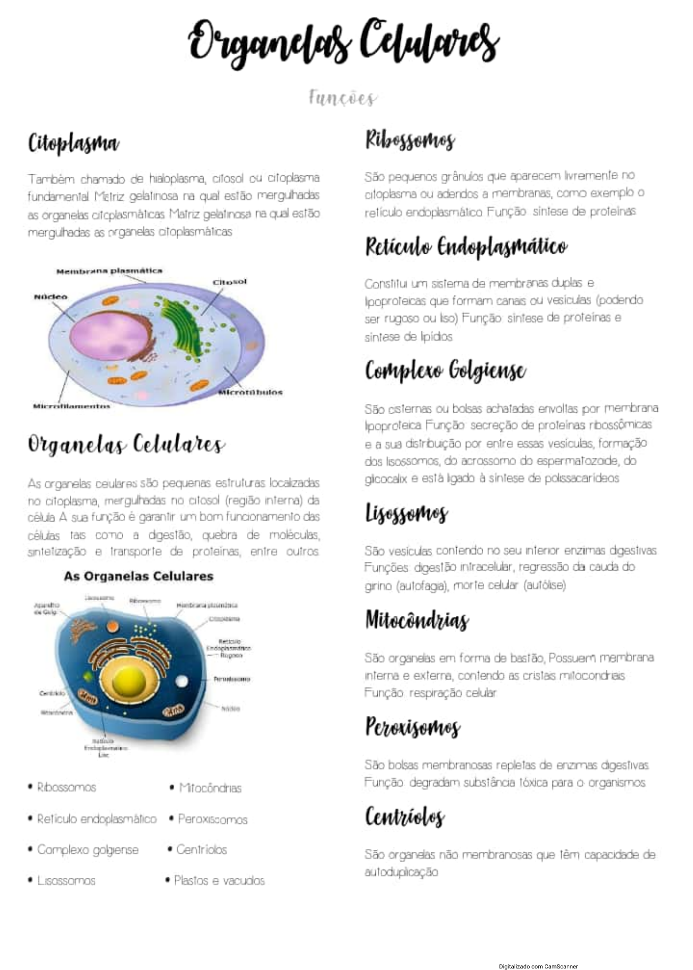 organelas e embriogênese somática fazem parte da área da biologia celular e da biologia do desenvolvimento. As organelas são componentes internos da c