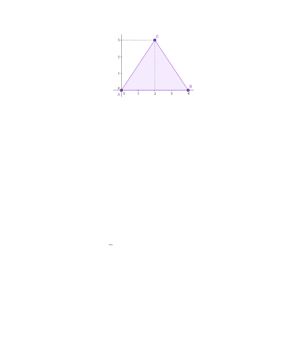 EXERCÍCIOS 1. Calcule a área do triângulo abaixo, em cm2, utilizando a Geometria Analítica. 2. Calcule a área do triângulo de vértices A (2,4), B (3,8) e C (– 2, 5). 3. Dados os pontos A (1,1) e B (10,10), qual deve ser a coordenada y do ponto C (10, y) para que a área do triângulo que tem A, B e C como vértices seja igual a 45? 4. Dados os pontos A (1,1) e B (10,10), qual deve ser a coordenada y do ponto C (10, y) para que a área do triângulo que tem A, B e C como vértices seja igual a 45? 5. (PM Pará). Os pontos (2,3), (5,3) e (2,7) são vértices de um triângulo retângulo. A área desse triângulo é: 6. (CFO ES – Exatus 2013). Sendo “S” denominada de área do polígono determinado pelas coordenadas cartesianas dos pontos A(5,0), B(2,3), C(1,0) e D(6,5), qual o valor de S? 7. (PM ES – Exatus 2013). Clarence desenhou o triângulo determinado pelas coordenadas dos pontos cartesianos A(7;5), B(3;2) e C(7;2). Ao calcular a área e o perímetro desse triângulo, os valores obtidos foram, respectivamente: 8. (Ufrj) Sejam A (1, 0) e B (5, 4 ) dois vértices de um triângulo equilátero ABC. O vértice C está no Segundo quadrante. Determine suas coordenadas. 9. Considere a reta t mediatriz do segmento cujos extremos são os pontos em que a reta s: 2x−3y+12=0 intercepta os eixos coordenados. Então, a distância do ponto M(1,1) à reta t é? 10. Considere um ponto móvel que se desloca, em linha reta, do ponto A(0, 0) para o ponto B(4, 3) e, em seguida, para o ponto C(7, 7). Pede-se que: a) Qual a distância percorrida pelo móvel? b) Quanto vale a área do triangulo ABD, sendo D (1, 7)? c) Quanto vale a área do quadrilátero ABCD?