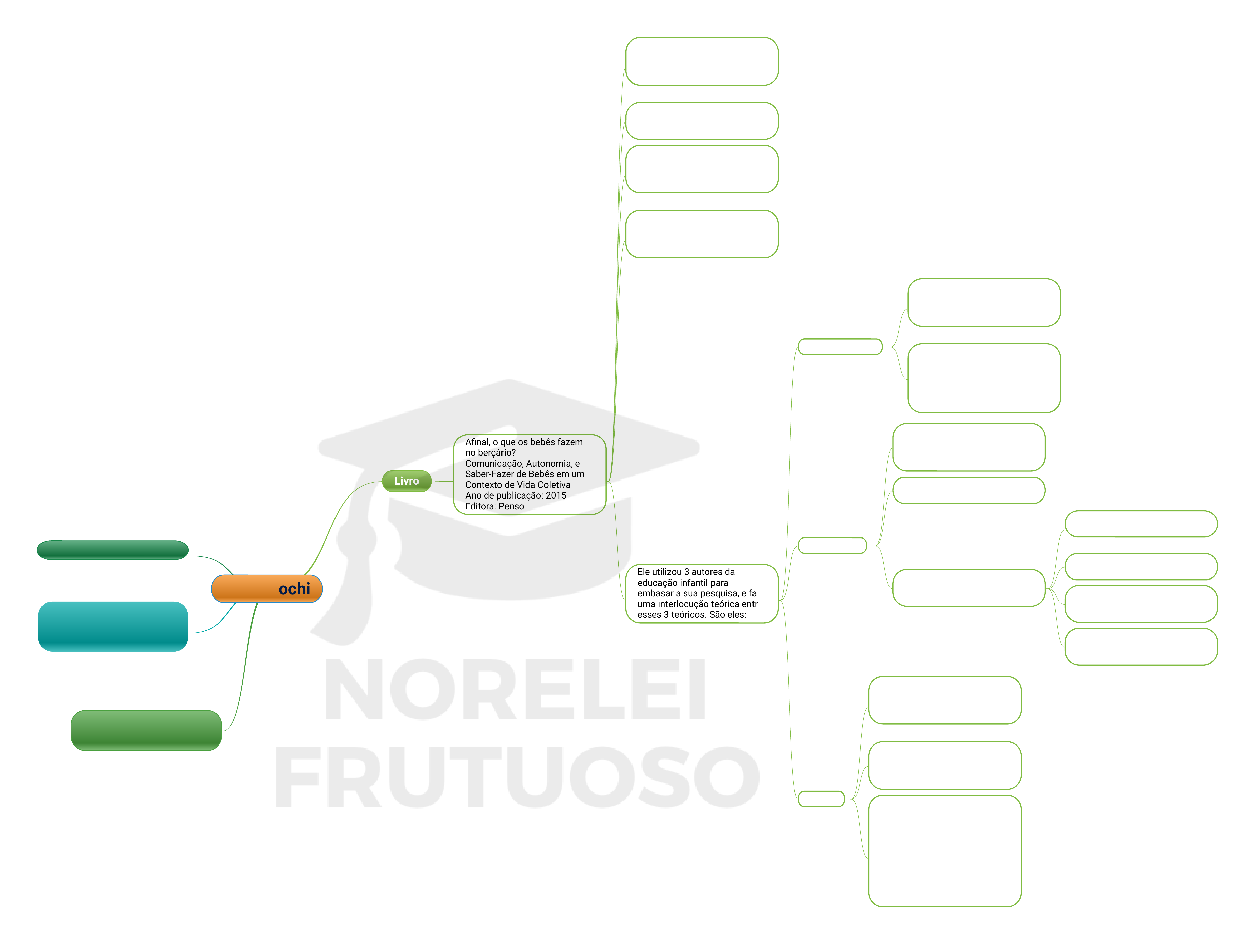 Paulo Fochi Livro Afinal, o que os bebês fazem no berçário? Comunicação, Autonomia, e Saber-Fazer de Bebês em um Contexto de Vida Coletiva Ano de publicação: 2015 Editora: Penso Traz a vivência prática a partir da sua experiência como professor, pesquisador e coordenador pedagógico. O livro se trata de um norteador para aperfeiçoar a prática educativa. Ressalva que os bebês são capazes de aprender a partir de si próprio, mesmo sem a intervenção dos adultos. Apresenta as diferentes formas de aprender das crianças baseadas nas suas próprias decisões e nas suas iniciativas. Ele utilizou 3 autores da educação infantil para embasar a sua pesquisa, e faz uma interlocução teórica entre esses 3 teóricos. São eles: Doutor em educação pela USP Atualmente é professor de curso de pedagogia e coordenador de especialização em educação infantil Atua como assessor nas redes municipais de ensino de educação infantil Loris Malaguzzi Emmi Pikler Bruner Progettazione - Fazer um planejamento de um projeto contextualizado com a realidade da criança, na vertente de como ela interroga o mundo. Tem um livro escrito junto com a Judit Falk - Educar os três primeiros anos: a experiência de lóczy. Tem seus estudos embasados em Wallon. Aborda alguns conceitos do trabalho com os bebês. São eles: Valorização positiva da atividade autônoma da criança Valor das relações pessoais da criança Estimular a criança para ter uma imagem positiva de si mesmo Encorajamento de manter a integridade e a saúde física da criança Psicólogo, estudou bastante sobre Piaget, Vygotsky, Dewey e trouxe muitas contribuições para a educação infantil. Fala sobre conceitos relacionados ao pensamento, a linguagem e a narrativa da criança. Um fato curioso, é que Malaguzzi se inspirou na teoria do Bruner. Depois de um período o Bruner leu coisas relacionadas ao Malaguzzi e soube sobre o que projeto realizado na Reggio Emília. Os dois se tornaram amigos e um acompanhou o trabalho do outro. Criou a Pedagogia de Projetos na região de Reggio Emília, considerada a 5° melhor educação infantil do mundo.
