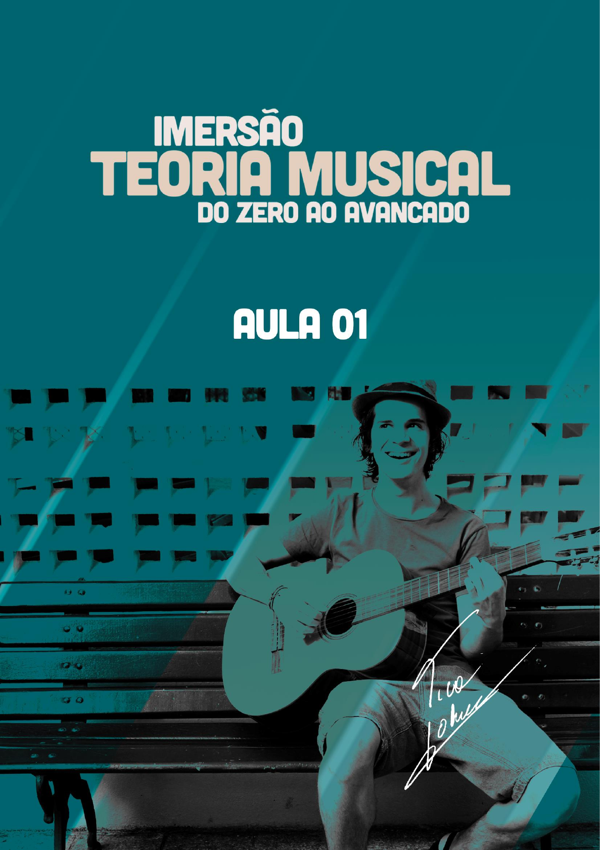 É proibida a venda deste material. Todos os Direitos Reservados a Tico Fahur. Conheça o meu Treinamento Online: www.dicaminuta.com.br É proibida a venda deste material. Todos os Direitos Reservados a Tico Fahur. Conheça o meu Treinamento Online: www.dicaminuta.com.br Imersão em Teoria Musical Aula 01 A teoria é o que vai te dar base e explicação lógica sobre os fenômenos musicais. Introdução Olá ! Seja muito bem vindo a Imersão em Teoria Músical. Eu me chamo Tico Fahur, sou músico, guitarrista, compositor e educador. Tenho dedicado os últimos 15 anos ao estudo da música e venho compartilhando, ensinando e ajudando as pessoas pela internet. Essa aqui será a primeira de uma série de 3 aulas que você vai receber, onde eu vou te ensinar de vez tudo sobre a Teoria Musical. Essa aula é pra você que já tentou estudar mas talvez tenha sentido dificuldade, ou pra você que já ouviu falar da Teoria, mas nunca estudou de fato. Eu vou te ensinar ‘’do zero’’ tudo o que eu sei sobre teoria e como juntar a teoria com a prática para que o seu aprendizado seja eficiente, leve e mais objetivo! Então, vamos nessa ? -> O que é música ? De maneira simples a música é uma sucessão e junção de ‘’fenômenos sonoros’’ que são tocados e interpretados por nosso cérebro. A música pode acontecer e existir das mais variadas formas. Um canto, uma melodia, um ritmo, uma canção, uma orquestra, um violão, um piano... enfim. A grande beleza da música é o fato de ela ser infinita. Sempre vai existir o que se criar. É esta aí a beleza da Arte! -> Os elementos da música Podemos dividir a música em 3 principais pilares: O ritmo, a harmonia e a melodia. O Ritmo é como o motor da música. Ele é o responsável por conseguirmos identificar diferentes gêneros e estilos musicais, como por exemplo o Samba, o Rock, o Blues ou o Reggae por exemplo. A harmonia é responsável pela ‘’base’’ da música. Quando falamos de ‘’guitarra base’’ ou ‘’violão base’’ estamos geralmente nos referindo a harmonia. É o instrumento responsável por tocar os acordes, por criar a harmonia de uma música. E a melodia é o que faz a gente muitas vezes identificar uma música, ou mesmo assobiar uma música. Ela é a ‘’camada’’ mais alta, e em uma música com letra é a parte que o cantor ou cantora executa. Tambem é comum a melodia ser tocada por instrumentos de sopro, como um saxofone, ou um trompete por exemplo. Porém, muitas vezes a melodia pode ser tocada também por outros instrumentos, como mesmo o violão, a guitarra, ou um piano! É proibida a venda deste material. Todos os Direitos Reservados a Tico Fahur. Conheça o meu Treinamento Online: www.dicaminuta.com.br -> O que é o estudo da Teoria Musical De maneira simples, o estudo da teoria musical é a sistematização analítica da música. Podemos analisar a música por diversas maneiras. Analisar a melodia, a harmonia e o ritmo por exemplo. A teoria é responsável por nos dar as bases lógicas e racionais acerca dos ‘’fenômenos sonoros’’. Para isso nos dividimos esse estudo em diversos tópicos e segmentos. E uns dos mais importantes tópicos, e que serve de base para todos os outros assuntos da música é o estudo dos Intervalos. -> Intervalos No nosso mundo ‘físico’ nos medimos as distâncias em Kilômetros, metros e centímetros, por exemplo. Na música nos medidos as distâncias musicais em intervalos! Assim conseguimos diferenciar e classificar qual é a distância de um som ate outro som, por exemplo. Dentro do nosso sistema musical usamos como medida de distância o Semi-Tom e o Tom. É muito simples, 1 tom é igual a 2 Semi-tons. É pura matemática! O Semitom é o menor intervalos musical que possuímos, dentro do sistema musical ocidental. E pra você tocar um semi-tom é muito simples. No seu violão ou guitarra sempre que você tocar uma ‘’Casa’’ em seguida de outra, o intervalos musical correspondente a isso é exatamente um semitom. Nós também chamamos esse intervalo de segunda menor. Mas não precisa se preocupar com isso agora! ☺ Da nota Sí para a nota Dó por exemplo, você tem um Semi-tom, assim como de Mi para Fá, por exemplo! Os intervalos são classificados e nomeados conforme a sua distância musical. Nós temos 5 grupos diferentes de intervalos, que são eles: Intervalos Justos, Intervalos Menores e Maiores, Intervalos Aumentados e o Intervalo Diminuto. Isso é muito importante porque é o que vai diferenciar a qualidade dos intervalos. -> Escala Maior A esacala maior é uma estrutura intervalar e constante de 7 notas musicais. Dela nós criamos os acordes de uma tonalidade por exemplo. Toda escala maior, independente da tonalidade, vai ter sempre a mesma estrutura! Isso é uma eterna constância, que é o que vamos ver a seguir. Vamos pegar por exemplo a escala de Dó maior. C D E F G A B C A escala de Dó maior é a unica escala maior que é composta apenas pelo que chamamos de ‘’Notas Naturais’’, isso é, ela não possui nenhum ‘acidente’. Mas que diabos são acidentes ? Muito simples... Os acidentes são os Sustenidos e Bemóis, que são representados geralmente por # e b respectivamente. Um É proibida a venda deste material. Todos os Direitos Reservados a Tico Fahur. Conheça o meu Treinamento Online: www.dicaminuta.com.br sustenido é responsável por aumentar meio tom a uma determinada nota, enquanto o bemol por diminuir meio tom de uma nota. A estrutura da escala maior pode ser medida por duas maneiras, por Tons e Semi-tons, e por analisar quais os intervalos de cada nota da escala com relação a Tônica. Na primeira maneira nos temos a seguinte visualização: C D E F G A B C T T ST T T T ST O que temos aqui é que entre todas as notas da escala, exceto o Mi e o Si, a distância musical com a próxima nota é 1 Tom. Do Mí para o Fá temos um Semi- Tom, assim como de Sí para Dó, porque não temos nenhuma ‘’notinha’
