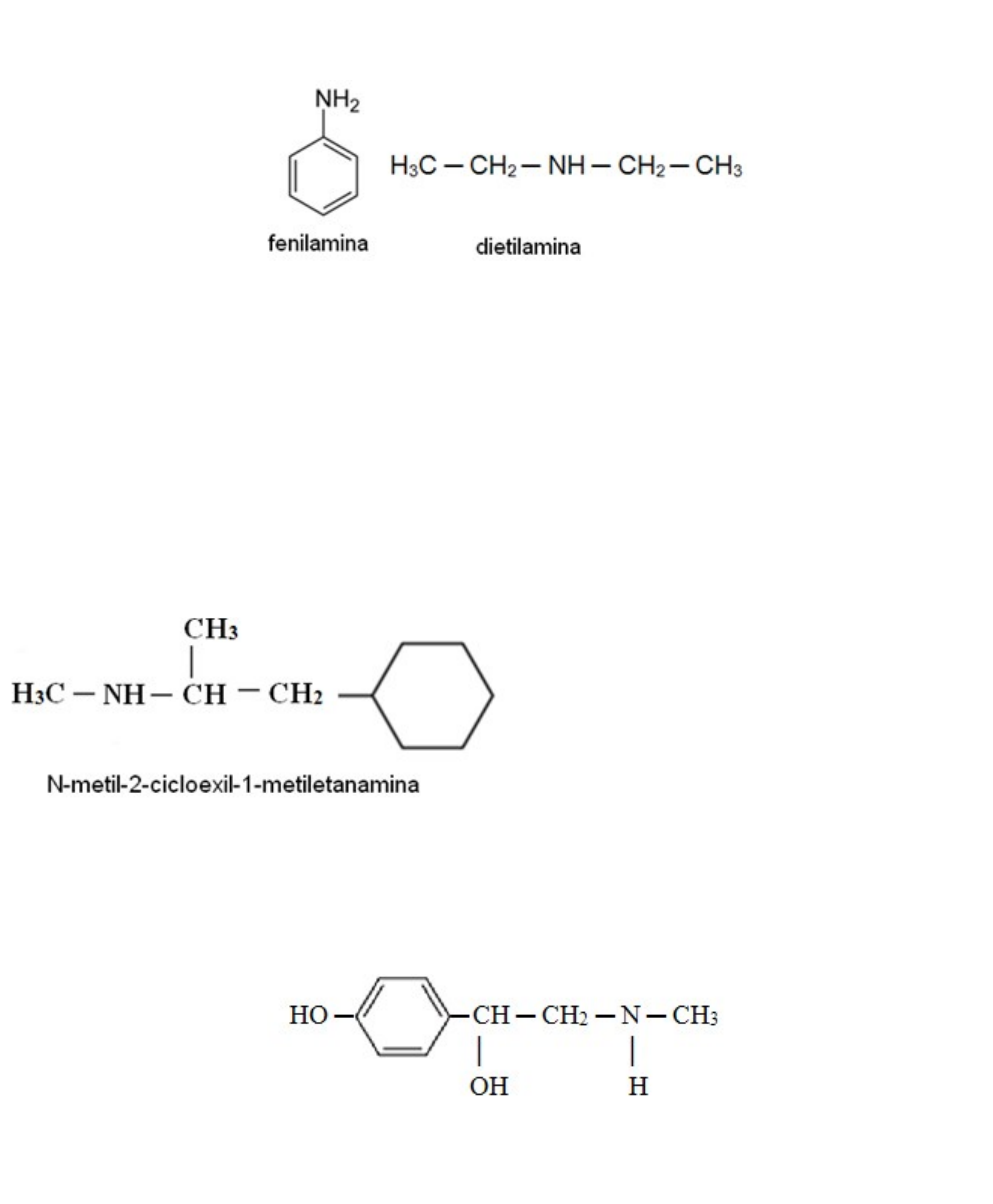 Estudo dirigido Amidas e aminas Química Orgânica Profª Me Celiana Maria Ferrarini Triches 1- A fenilamina e a dietilamina, mostradas abaixo, são aminas, respectivamente: a. Primária e primária b. Secundária e secundária c. Primária e secundária d. Secundária e primária e. Primária e terciária 2- Uma das aplicações mais importantes das aminas é na produção de medicamentos. Em remédios que combatem a gripe, por exemplo, dentre outras substâncias, pode-se encontrar a amina abaixo: Trata-se de uma amina primária, secundária ou terciária? SECUNDÁRIA 3- A adrenalina tem fórmula estrutural dada abaixo: Neste composto podemos identificar os seguintes grupos funcionais: a. Fenol, álcool, amina b. Álcool, nitrocomposto e aldeído c. Álcool, aldeído e fenol d. Enol, álcool e cetona e. Cetona, álcool e fenol 4-Forneça o nome das aminas a seguir: A)ETILAMINA B)ETILMETILAMINA C)METILVINILAMINA D)ETILFENILISOPROPILAMINA E)DIMETILAMINA F)ISOBUTILAMINA G)P-METIL-ANILINA 5- Escreva as fórmulas estruturais das seguintes aminas: a. Metil-isopropilamina: H3C-NH-CH-CH3 | CH3 b. 2-metil-pentan-3-amina: CH3 NH2 | | H3C-CH-CH-CH2-CH3 c. 4-metil-pentan-2-amina: CH3 NH2 | | H3C-CH-CH2-CH-CH3 6- ConstruA a) N-metilbutanamida b) N,N-fenil-metilpentanamida c) N,N-etil-t-butil-3,5,5-trimetil-heptanamida d) N,N-dimetiletanamida 7- Indique o nome do composto com a fórmula molecular a seguir: a) N,N-fenil-etilpentanamida b) N,N-fenil-metilpentanamida c) N,N-benzil-metilpentanamida d) N,N-benzil-etilpentanamida e) N,N-fenil-metil-hexanamida 8- O princípio ativo de alguns medicamentos para obesidade é a substância cuja fórmula estrutural está representada abaixo: A partir do NH e tudo que se segue a direita | Circule onde se encontra o grupo amida nessa fórmula. 9- O acetoaminofen é uma substância que tem propriedades analgésicas e antipiréticas. Ela é comercializada com o nome de Tylenol e sua fórmula encontra-se esquematizada abaixo: Assinale as alternativas corretas em relação ao acetoaminofen. 10. Pertence à classe dos fenóis; 1. Contém também a função amida; 2. Tem fórmula C8H9NO2; 3. Pertence à classe das substâncias aromáticas devido à presença do anel benzênico. Qual a soma dos itens corretos __16_______ 10- A cor amarela do xixi se deve a uma substância chamada urobilina, formada em nosso organismo a partir da degradação da hemoglobina. A hemoglobina liberada pelas hemácias, por exemplo, é quebrada ainda no sangue, formando compostos menores que são absorvidos pelo fígado, passam pelo intestino e retornam ao fígado, onde são finalmente transformados em urobilina. Em seguida, a substância de cor amarelada vai para os rins e se transforma em urina, junto com uma parte da água que bebemos e outros ingredientes. Xixi amarelo demais pode indicar que você não está bebendo água o suficiente. O ideal é que a urina seja bem clarinha. Quais são as funções orgânicas representadas na estrutura da urobilina? a) Aldeído, Ácido Carboxílico e Cetona b) Amida, Amina, Ácido Carboxílico c) Cetona, Amina e Hidrocarboneto d) Ácido Carboxílico, Amida e Fenol e) Fenol, Amina e Amida