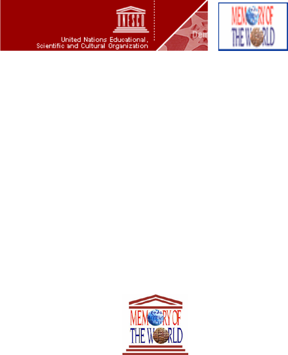 MEMÓRIA DO MUNDO DIRETRIZES PARA A SALVAGUARDA DO PATRIMÔNIO DOCUMENTAL EDIÇÃO REVISADA 2002 Elaborado para UNESCO por Ray Edmondson (Versão para português Maria Elisa Bustamante) Divisão da Sociedade da Informação Organização das Nações Unidas para Educação, Ciência e Cultura 2 ÍNDICE Prefácio 4 1. Introdução 5 1.1 O que é Memória do Mundo? 5 1.2 Objetivos do Memória do Mundo 6 1.3 Contexto Histórico para o Memória do Mundo 6 2. Fundamentos 8 2.1 Hipóteses básicas 8 2.2 Características do Programa 8 2.3 Visão e missão 9 2.4 Programas complementares 9 2.5 Questões éticas 10 2.6 Patrimônio Documental: definições 10 2.7 Compartilhando memórias 12 2.8 Estratégias chave 13 3. Preservação e acesso 15 3.1 Introdução 15 3.2 Definindo preservação 15 3.3 Princípios de preservação 15 3.4 Princípios e métodos de acesso 16 3.5 Produtos e distribuição 19 3.6 Publicidade e sensibilização 20 3.7 Educação e treinamento 22 4. Os registros de Memória do Mundo 23 4.1 Registros internacionais, regionais e nacionais 23 4.2 Critérios de seleção para o Registro de Memória do Mundo 24 4.3 Nominando para o Registro de Memória do Mundo 26 4.4 Pré-condições jurídicas e de gestão 27 4.5 Preparando as nominações 28 4.6 Submetendo as nominações 29 4.7 Avaliação das nominações 29 4.8 Remoção do Registro 30 4.9 Patrimônio perdido e destruído 30 5 Estrutura e gerenciamento do Programa 32 5.1 Contexto 32 5.2 O Comitê Consultivo Internacional (CCI) 32 5.3 Órgãos subsidiários do CCI 32 5.4 Secretaria 33 3 5.5 Patrimônio ameaçado 33 5.6 O Fundo Memória do Mundo 34 5.7 Comitês Nacionais 35 5.8 Comitês Regionais 36 5.9 Projetos e atividades 37 5.10 Encontros, conferências e informação 37 5.11 Monitoramento e Relatórios 37 5.12 Relações com programas complementares (dentro da UNESCO) 38 5.13 Relações com Organizações Não Governamentais e Órgãos Consultivos 38 6 Financiamento e Marketing 40 6.1 Facilitando e intermediando 40 6.2 Levantando fundos e renda 40 6.3 Uso do logotipo e rótulo de Memória do Mundo 42 6.4 Identificação e controle de produto 42 7 Panorama Futuro 44 7.1 Para uma convenção 44 Apêndices A Formulário de nominação e guia pra o preenchimento do formulário 45 B Fundo Memória do Mundo: lista indicativa de fatores a serem incluídos nas requisições de subvenções 53 C Formulário de descrição do projeto 54 D Termos de referência para um comitê nacional Memória do Mundo 59 E Glossário e acrônimos 61 F Bibliografia 63 G Critérios para a inclusão de propriedades culturais na Lista de Patrimônio Mundial 65 H Critérios para a Proclamação de Obras-primas do Patrimônio Intangível da Humanidade 67 Sítio da Web: www.unesco.org/webworld/mdm Contato: a.abid@unesco.org 4 Prefácio As Diretrizes originais do Programa Memória do Mundo foram elaboradas por Juan Lyall em colaboração com Stephen Foster, Duncan Marshall e Roslyn Russel, sob os auspícios da IFLA (Federação Internacional de Associações de Bibliotecas). Este documento, extraordinário e pioneiro, publicado em 1995, serviu de base para o desenvolvimento subseqüente do Programa e dos valores que ele representa. Naturalmente, desenvolvimento requer que diretrizes sejam revisadas e atualizadas regularmente. Esta nova edição toma como ponto de partida o trabalho da equipe original. Abrange a experiência acumulada nos últimos seis anos, incluindo os debates, acerca dos critérios de seleção e do processo de nominação para o Registro “Memória do Mundo”, realizados nos encontros do Comitê Consultivo Internacional nos anos de 1997 e 1999 e na Segunda Conferência “Memória do Mundo” em 2000. Embora uma grande parte deste trabalho esteja baseada no texto anterior, com o qual reconheço meu débito, ele difere em conteúdo e estrutura. Por exemplo, contêm informações menos detalhadas sobre técnicas de preservação, uma vez que outras publicações do Programa “Memória do Mundo” satisfazem esta necessidade de maneira mais exaustiva. Além disso, existem diferenças quanto à ênfase que refletem a evolução do Programa e de sua estrutura. Da mesma forma que o original, este documento é o resultado de um trabalho de equipe. Em fevereiro de 2001, um Grupo de Trabalho especial da UNESCO se reuniu em Bangkok (Tailândia), sob os auspícios da Associação de Arquivos Audiovisuais da Ásia Sul-Oriental e o Pacífico (SEAPAVAA), para definir os parâmetros do documento e desenvolver seu conteúdo. Os membros do grupo – Jon Bing, Richard Engelhardt, Lygia Maria Guimarães, Ingunn Kvisteoy e Dato Habibah Zon – não apenas contribuíram com suas diferentes perspectivas geográficas e culturais, como também, incorporaram sua considerável experiência coletiva sobre o Programa da Memória do Mundo. Foi um privilégio convocar este Grupo de Trabalho e sintetizar posteriormente, seu trabalho e idéias, no texto que lhes apresento. Também reconheço com gratidão, as contribuições e ajuda prática de Abdelaziz Abid, Lourdes Blanco, Beverley Butler, Susanne Ornager e Dietrich Schüller. Sou especialmente grato ao apoio e à colaboração incisiva de Ingunn Kvisterøy durante vários meses. Acredito que estas Diretrizes Revisadas, da mesma forma que a versão anterior, irão oferecer uma sólida base operacional para o contínuo crescimento do Programa Memória do Mundo. Ray Edmondson Comitê Consultivo Internacional Memória do Mundo 5 1 Introdução 1.1. O que é “Memória do Mundo” ? 1.1.1 A Memória do Mundo é a memória coletiva e documentada dos povos do mundo – seu patrimônio documental - que, por sua vez, representa boa parte do patrimônio cultural mundial. Ela traça a evolução do pensamento, dos descobrimentos e das realizações da sociedade humana. É o legado do passado para a comunidade mundial presente e futura. 1.1.2 Grande parte da Memória do Mundo se encontra nas bibliotecas, nos arquivos, n