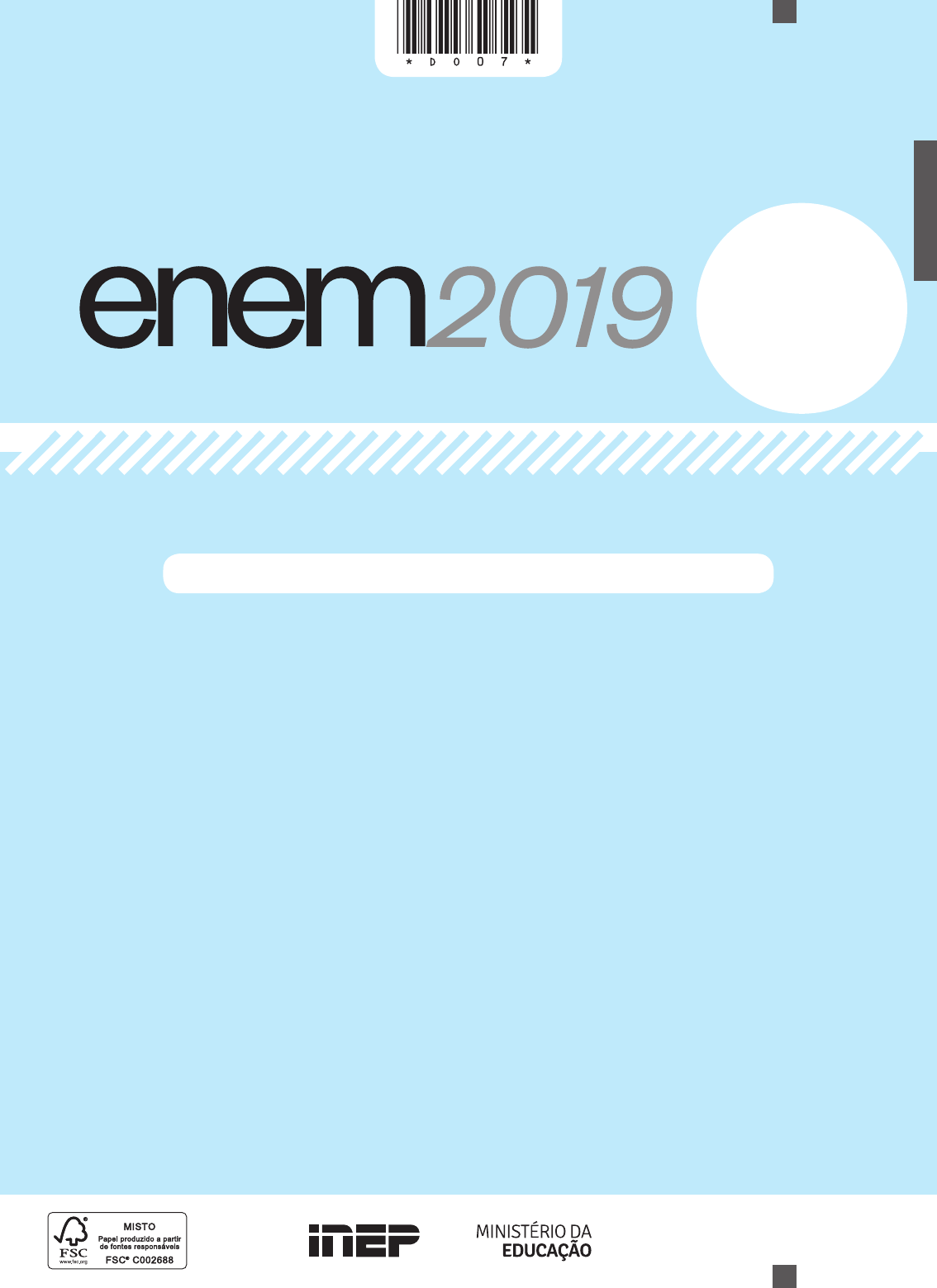 ATENÇÃO: transcreva no espaço apropriado do seu CARTÃO-RESPOSTA, com sua caligrafia usual, considerando as letras maiúsculas e minúsculas, a seguinte frase: E quem irá dizer que não existe razão? LEIA ATENTAMENTE AS INSTRUÇÕES SEGUINTES: 1. Este CADERNO DE QUESTÕES contém 90 questões numeradas de 91 a 180 e uma FOLHA DE RASCUNHO, dispostas da seguinte maneira: a) questões de número 91 a 135, relativas à área de Ciências da Natureza e suas Tecnologias; b) questões de número 136 a 180, relativas à área de Matemática e suas Tecnologias; c) FOLHA DE RASCUNHO. 2. Confira se a quantidade e a ordem das questões do seu CADERNO DE QUESTÕES estão de acordo com as instruções anteriores. Caso o caderno esteja incompleto, tenha defeito ou apresente qualquer divergência, comunique ao aplicador da sala para que ele tome as providências cabíveis. 3. Para cada uma das questões objetivas, são apresentadas 5 opções. Apenas uma responde corretamente à questão. 4. O tempo disponível para estas provas é de cinco horas. 5. Reserve tempo suficiente para preencher o CARTÃO-RESPOSTA. 6. Os rascunhos e as marcações assinaladas no CADERNO DE QUESTÕES e na FOLHA DE RASCUNHO não serão considerados na avaliação. 7. Quando terminar as provas, acene para chamar o aplicador e entregue este CADERNO DE QUESTÕES, o CARTÃO-RESPOSTA e a FOLHA DE RASCUNHO. 8. Você poderá deixar o local de prova somente após decorridas duas horas do início da aplicação e poderá levar seu CADERNO DE QUESTÕES ao deixar em definitivo a sala de prova nos 30 minutos que antecedem o término das provas. 2º DIA CADERNO 7 AZUL EXAME NACIONAL DO ENSINO MÉDIO PROVA DE CIÊNCIAS DA NATUREZA E SUAS TECNOLOGIAS PROVA DE MATEMÁTICA E SUAS TECNOLOGIAS *DO0725AZ1* CN - 2º dia | Caderno 7 - AZUL - Página 2 CIÊNCIAS DA NATUREZA E SUAS TECNOLOGIAS Questões de 91 a 135 Questão 91 Para realizar o desentupimento de tubulações de esgotos residenciais, é utilizada uma mistura sólida comercial que contém hidróxido de sódio (NaOH) e outra espécie química pulverizada. Quando é adicionada água a essa mistura, ocorre uma reação que libera gás hidrogênio e energia na forma de calor, aumentando a eficiência do processo de desentupimento. Considere os potenciais padrão de redução (E ) da água e de outras espécies em meio básico, expressos no quadro. Semirreação de redução E (V) 2 H2O + 2 e− → H2 + 2 OH− −0,83 Co(OH)2 + 2 e− → Co + 2 OH− −0,73 Cu(OH)2 + 2 e− → Cu + 2 OH− −0,22 PbO + H2O + 2 e− → Pb + 2 OH− −0,58 Al(OH)4− + 3 e− → Al + 4 OH− −2,33 Fe(OH)2 + 2 e− → Fe + 2 OH− −0,88 Qual é a outra espécie que está presente na composição da mistura sólida comercial para aumentar sua eficiência? A Al B Co C Cu(OH)2 D Fe(OH)2 E Pb Questão 92 As redes de alta tensão para transmissão de energia elétrica geram campo magnético variável o suficiente para induzir corrente elétrica no arame das cercas. Tanto os animais quanto os funcionários das propriedades rurais ou das concessionárias de energia devem ter muito cuidado ao se aproximarem de uma cerca quando esta estiver próxima a uma rede de alta tensão, pois, se tocarem no arame da cerca, poderão sofrer choque elétrico. Para minimizar este tipo de problema, deve-se: A Fazer o aterramento dos arames da cerca. B Acrescentar fusível de segurança na cerca. C Realizar o aterramento da rede de alta tensão. D Instalar fusível de segurança na rede de alta tensão. E Utilizar fios encapados com isolante na rede de alta tensão. Questão 93 A esquistossomose (barriga-dʼágua) caracteriza-se pela inflamação do fígado e do baço causada pelo verme Schistosoma mansoni (esquistossomo). O contágio ocorre depois que larvas do verme são liberadas na água pelo caramujo do gênero Biomphalaria, seu hospedeiro intermediário, e penetram na pele humana. Após o diagnóstico, o tratamento tradicional utiliza medicamentos por via oral para matar o parasita dentro do corpo. Uma nova estratégia terapêutica baseia-se na utilização de uma vacina, feita a partir de uma proteína extraída do verme, que induz o organismo humano a produzir anticorpos para combater e prevenir a doença. Instituto Oswaldo Cruz/Fundação Oswaldo Cruz (IOC/Fiocruz). Fiocruz anuncia nova fase de vacina para esquistossomose. Disponível em: http://agencia.fiocruz.br. Acesso em: 3 maio 2019 (adaptado). Uma vantagem da vacina em relação ao tratamento tradicional é que ela poderá A impedir a penetração do parasita pela pele. B eliminar o caramujo para que não haja contágio. C impedir o acesso do esquistossomo especificamente para o fígado. D eliminar o esquistossomo antes que ocorra contato com o organismo. E eliminar o esquistossomo dentro do organismo antes da manifestação de sintomas. *DO0725AZ2* CN - 2º dia | Caderno 7 - AZUL - Página 3 Questão 94 Em 1962, um jingle (vinheta musical) criado por Heitor Carillo fez tanto sucesso que extrapolou as fronteiras do rádio e chegou à televisão ilustrado por um desenho animado. Nele, uma pessoa respondia ao fantasma que batia em sua porta, personificando o “frio”, que não o deixaria entrar, pois não abriria a porta e compraria lãs e cobertores para aquecer sua casa. Apesar de memorável, tal comercial televisivo continha incorreções a respeito de conceitos físicos relativos à calorimetria. DUARTE, M. Jingle é a alma do negócio: livro revela os bastidores das músicas de propagandas. Disponível em: https://guiadoscuriosos.uol.com.br. Acesso em: 24 abr. 2019 (adaptado). Para solucionar essas incorreções, deve-se associar à porta e aos cobertores, respectivamente, as funções de: A Aquecer a casa e os corpos. B Evitar a entrada do frio na casa e nos corpos. C Minimizar a perda de calor pela casa e pelos corpos. D Diminuir a entrada do frio na casa e aquecer os corpos. E Aquecer a casa e reduzir a perda de calor pelos corpos. Questão 95 Gli