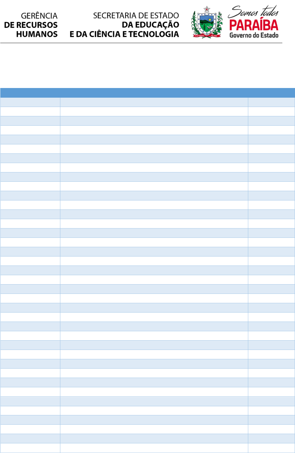 Relação dos DOCENTES da rede pública estadual da Paraíba, CONTEMPLADOS no Prêmio Mestres da Educação, ano 2020, que vem sendo regido pelo disposto no Edital nº 027/2020/SEECT. Página 1 de 19 MATRICULA NOME GRE 6071601 ADELSON DE OLIVEIRA BARRETO 01-JPA 1859048 ADSON BRUNO COSTA PEREIRA 01-JPA 1771671 ALCIDES MAMEDE LEITE 01-JPA 1798162 ALENA SOUSA DE MELO 01-JPA 6439721 ALEXANDRE ANTONIO LOURENCO 01-JPA 6391168 AMANDA NEVES P MAGALHAES 01-JPA 5209927 ANA CRISTINA BATISTA DE SOUZA ROSA 01-JPA 1799665 ANA DEBORA BATISTA AURINO 01-JPA 1681231 ANDRIA ROSSELI BARROS FINIZOLA 01-JPA 1730207 ANNE CARINE VICENTE MARQUES 01-JPA 1798430 AUGUSTO DANTAS FILHO 01-JPA 1888749 BARBARA DE VASCONCELOS FERREIRA LIMA 01-JPA 6167438 BRENDA DAYANNE DA SILVA GUEDES 01-JPA 1888595 BRUNA COSTA SILVA 01-JPA 1882911 CALINE MENDES DE ARAUJO 01-JPA 1882058 CAMILA JESSICA MEDEIROS DA COSTA XAVIER 01-JPA 1218883 CARLOS ANTONIO MACEDO CAMPELO 01-JPA 6663249 CARLOS EDUARDO PEREIRA RUFFO 01-JPA 6703453 CELIA MARIA DE LIMA 01-JPA 1883305 CRISTINA ROTHIER DUARTE 01-JPA 1882937 DAIANA SILVA BARBOSA 01-JPA 6094104 DAIANE BARBOSA DOS SANTOS 01-JPA 1889788 DANIEL GUERRA VILELA 01-JPA 1887033 DAVI FREIRE DA COSTA 01-JPA 1854755 DENNIS SOUZA DA COSTA 01-JPA 1888374 DIEGO GUIMARAES 01-JPA 6172334 DJAELSON DO NASCIMENTO SILVA 01-JPA 1784765 DOUGLAS FABIANO BARROS DE AMORIM 01-JPA 6112528 DRIELY XAVIER DE HOLANDA 01-JPA 6167276 EDNILDON RAMALHO FIDELES JUNIOR 01-JPA 1793560 ELISANGELA DA COSTA SILVA 01-JPA 1597370 ELISANGELA GARCIA SANTOS RODRIGUES 01-JPA 1655981 FABIANA CARLA GOMES BARBOSA 01-JPA 1862731 FABIOLA VANESSA DE FRANCA SILVA OLINTO 01-JPA 1882252 FELIPE SANTOS DOS REIS 01-JPA 1730061 FERNANDO ALVES DE OLIVEIRA 01-JPA 6397026 FLAVIO PADILHA GOMES 01-JPA 6169872 FRANCISCA SIMONE PEREIRA FERNANDES 01-JPA Relação dos DOCENTES da rede pública estadual da Paraíba, CONTEMPLADOS no Prêmio Mestres da Educação, ano 2020, que vem sendo regido pelo disposto no Edital nº 027/2020/SEECT. Página 2 de 19 1597892 FRANCISCO BRITO DO NASCIMENTO 01-JPA 1885821 FRANCISCO ROBSON CARVALHO DE OLIVEIRA 01-JPA 6452876 FRANK FERNANDO SOARES DA SILVA 01-JPA 6112536 FRANKLIN STEWESON F DA COSTA 01-JPA 1856090 GEANE BEZERRA CAVALCANTE 01-JPA 6030637 GERLANE SANTOS FREIRE DE CARVALHO 01-JPA 1855204 GILMAR DE SOUZA BARBOSA VASCONCELOS 01-JPA 1852337 GILSON FERREIRA DE ANDRADE 01-JPA 1793501 HAMILTON DA SILVA SANTOS 01-JPA 1884662 HAMILTON MATOS CARDOSO JUNIOR 01-JPA 1596063 HUMBERTO DA SILVA OLIVEIRA 01-JPA 1439961 IEDA LIGIA GOMES DOS ANJOS ALVES 01-JPA 1725823 INACIO NUNES DA COSTA JUNIOR 01-JPA 1597353 IRIVAN ALVES RODRIGUES 01-JPA 6143890 ISABELLE OHANA PEREIRA SALES DE ATAIDE 01-JPA 6008429 JANAINA NIELY DA SILVA 01-JPA 1570307 JANDILSON SOARES FERNANDES 01-JPA 6099912 JANIELI BARBOSA DE BULHOES 01-JPA 6126014 JANIELLE DO NASCIMENTO RODRIGUES 01-JPA 1728458 JEFFERSON JOSE SOARES DA SILVA 01-JPA 6098304 JEOVANE JUNIOR SANTOS DE OLIVEIRA 01-JPA 6071767 JESSICA LOHAYNE GONZAGA DA SILVA MACHADO 01-JPA 6106498 JOANA ANGELINA MOURA DE MENEZES 01-JPA 6149219 JOAO DANTAS DE LUNA JUNIOR 01-JPA 6167519 JOELMA MARIA ALVES 01-JPA 1777653 JOSAFA DE SA PEREIRA 01-JPA 6548776 JOSE ADELANE BASILIO 01-JPA 1729632 JOSEANE BATISTA AZEVEDO 01-JPA 926060 JOSEFA FARIAS MONTEIRO 01-JPA 1778749 JOSEFA GIRLANIA ALVES DE OLIVEIRA 01-JPA 1853384 JOSIE DOMINGOS DE LIMA 01-JPA 1766155 JOSINEIDE BARBOSA PEREIRA 01-JPA 1661175 JOSSANA MARIA DE OLIVEIRA PINTO 01-JPA 1851756 JOSSANDRA GONCALVES DOS SANTOS 01-JPA 6566278 JULIET SANTOS DA SILVA 01-JPA 6114024 KARLA EDITE BATISTA DO NASCIMENTO 01-JPA 1881256 KILMA CRISTEANE FERREIRA GUEDES 01-JPA 1882953 LAERCIA JAMILLY DUARTE DINIZ NOBREGA 01-JPA 1889923 LAERCIO TEODORO DA SILVA 01-JPA Relação dos DOCENTES da rede pública estadual da Paraíba, CONTEMPLADOS no Prêmio Mestres da Educação, ano 2020, que vem sendo regido pelo disposto no Edital nº 027/2020/SEECT. Página 3 de 19 1793331 LEANDRO SALES ALMEIDA DE OLIVEIRA 01-JPA 1885073 LEONARDO MAXIMINO BERNARDO 01-JPA 6783392 LIGIANNE NASCIMENTO BARROS 01-JPA 6008313 LINCCON DECARVALHO LIMA 01-JPA 1765175 LINDAILTON TRAJANO GONCALVES JUNIOR 01-JPA 1726439 LIZIANNY LEITE DAMASCENA 01-JPA 6712118 LUANA CRISTINA SILVA GOMES 01-JPA 1884581 LUANA FELIX MARQUES CORREIA 01-JPA 1859145 LUCAS DIAS FERREIRA BARBOSA 01-JPA 1854305 LUCIANA MARQUES CORREIA LIMA 01-JPA 1851331 LUCIANO CARLOS DE MOURA 01-JPA 1792083 LUCIANO DA SILVA SANTOS 01-JPA 6458173 LUCINEIA DA SILVA TEIXEIRA 01-JPA 6130551 LUIZ ANTONIO MACHADO NEVES 01-JPA 1437739 LUZIA VACELUCIA LOPES 01-JPA 1773194 MAINARA DUARTE EULALIO 01-JPA 1852345 MANOEL SATIRO DE MEDEIROS NETO 01-JPA 6135901 MANUELLE CRISTINE SILVA 01-JPA 6539980 MANUELLEN KALINE NORBERTO DOS SANTOS 01-JPA 6168841 MARCELA VIANA DE SOUZA 01-JPA 6872166 MARCONDES TRISTAO DA CRUZ 01-JPA 6103014 MARCOS FABIO TAURINO DOS SANTOS 01-JPA 1303988 MARIA CONCEICAO DA NOBREGA FIGUEIREDO 01-JPA 6098657 MARIA DA CONCEICAO GOMES DA SILVA 01-JPA 1793624 MARIA DO CARMO MELO AGUIAR NETA 01-JPA 1780379 MARIA JOSE DAVI GOMES 01-JPA 6166148 MARIA KAROLINA DA SILVA FERNANDES 01-JPA 1343050 MARIA NEUSANI DE OLIVEIRA 01-JPA 1882236 MARIANA MARQUES TEIXEIRA 01-JPA 6581102 MARILEDA RODRIGUES DE OLIVEIRA 01-JPA 1655892 MAURICIO ALVES BARBOSA 01-JPA 6153585 MICHELE DA SILVA FONTE 01-JPA 1888072 MILENA MONIQUE DE SANTANA GOMES 01-JPA 1883984 MYRAI ARAUJO SEGAL 01-JPA 1727460 PATILLA VANESSA MATIAS GAMA 01-JPA 1638696 PATRICIA CAMPOS DE ARRUDA 01-JPA 6118739 PATRICIA FERREIRA DA SILVA 01-JPA 1862545 PATRICIA FERREIRA SANTOS 01-JPA 1852388 PHELLIPE CUNHA DA SILVA 01-JPA Relação dos DOCENTES da rede pública estadual da Paraíba, CONTEMPLADOS no Prêmio Mestres da Educação, ano 2020, que vem sendo regido pelo disposto no Edital nº 027/2020/SEECT. Página 4 de 19 1784056 POLIANE KARENINE BATISTA 01-JPA 1884883 PRISCILA REIS DE OLIVEIRA DA SILVA 01-JPA 6171192 PRYSCILLA FIRMINO ANDRADE DE SOUSA 01-JPA 6162843 RAFAEL ARAUJO SOARES 01-JPA 6167659 RAISSA DA SILVA BARROS 01-J