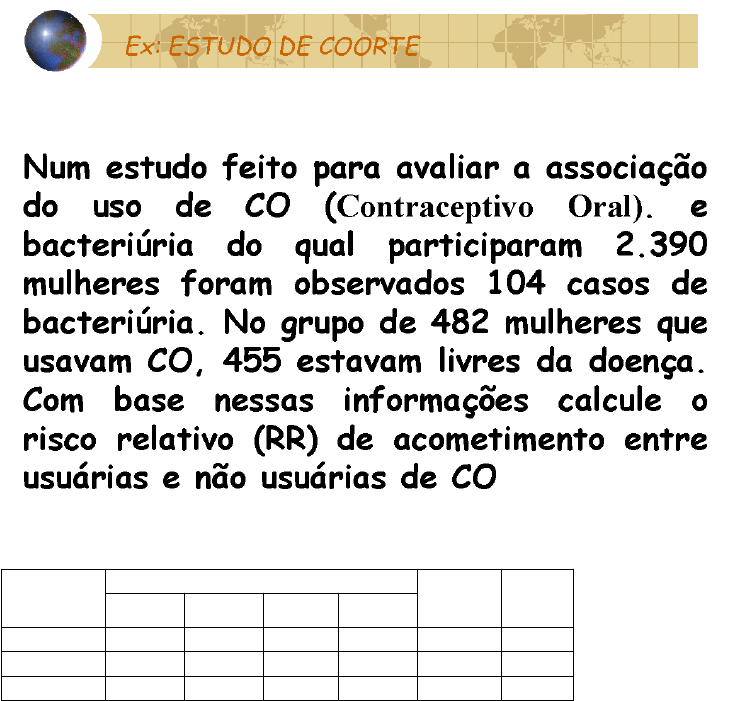 Avaliação final: 3 exercícios. Considerando o enunciado abaixo: 1 - Construir uma tabela 2 x 2 e comentar corretamente os resultados. Uso de CO Bacteriuria Total RR Sim % Não % Sim 27 5,6 455 94,4 482 1,38 Não 77 4,04 1831 95,96 1908 Total 104 4,35 2286 95,65 2390 Prevalência (Risk Ratio RR) Risco de usuárias de CO e não usuárias de terem bacteriúria. 5,6/4,04 = 1,38 Significa que a prevalência das mulheres que tomam CO em ter bacteriúria supera em 0,38% as mulheres que não tomam CO com relação a doença. Considerando o enunciado abaixo: 2 - Construir uma tabela 2 x 2 e explicar corretamente os resultados. Ex: Caso Controle (CC). Fumante Doença coronária Total OR Sim % Não % Sim 112 38,88 176 61,12 288 1,62 Não 88 28,2 224 71,8 312 Total 200 33,33 400 66,66 600 OR= 1,62 A Razão de chance maior que 1 indica que o maior acometimento de DC em pessoas fumantes neste caso a chance de a pessoa possuir DC em relação a condição de fumante é 62% maior que da pessoa não fumante. 3 - Paciente em tratamento com anticoagulantes orais recebeu anti-inflamatório não esteroide (daine) para controlar uma cefaleia. Apesar da melhora clínica inicial, começou a apresentar sangramento nasal e intestinal. · Você suspeita de algum Problema Relacionado ao Medicamento? Sim, neste caso o paciente já toma anticoagulantes e agora faz uso de anti-inflamatórios pode haver a interação farmacológica potencial que diz respeito à possibilidade de um fármaco alterar a intensidade dos efeitos farmacológicos de outro fármaco administrado concomitantemente. O resultado pode ser o aumento ou a diminuição dos efeitos de um ou ambos os fármacos, ou o aparecimento de um novo efeito que não é observado com cada um dos fármacos isoladamente. Neste caso o anti-inflamatório também inibe a coagulação sanguínea e potencializa a ação do anticoagulante. · Como você procederia, caso fosse o farmacêutico? Suspensão do medicamento antiinflamatorio, pois é o causador do sangramento, que se persistir pode agravar o quadro do paciente, e verificar a viabilidade de troca de medicação para o tratamento da cefaleia, que não interaja com o anticoagulante. Abrir uma notificação de interação de medicamentos, avaliando a troca de medicamentos e os resultados obtidos, informar ao paciente a respeito da medicação tomada e o que esta agravando o quadro clinico do mesmo. · Qual a classe desta RAM? RAM DEPENDENTE DO MEDICAMENTO POR INTERAÇÕES;