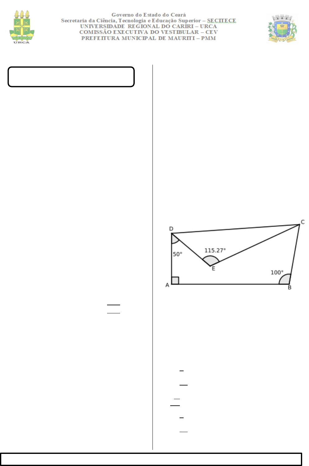 Considere o quadrilátero ABCD.