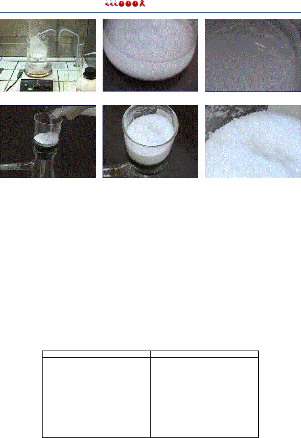 Síntese do ácido acetilsalicílico Objectivos Determinar o rendimento da reacção. Informação O ácido acetilsalicílico, vulgarmente conhecido por Aspirina, é um composto orgânico muito utilizado no alívio da dor de cabeça e da febre. Este composto é sintetizado a partir da mistura do ácido salicílico com o anidrido acético segundo a equação a seguir representada: C6H4COOHOH (l) + (CH3CO)2O (l) --> C6H4COOHOCOCH3 (s) + CH3COOH (l) O rendimento da reacção é o quociente entre a quantidade de produto obtido e a quantidade teorica- mente esperada (atendendo à estequiometria da reacção e ao reagente limitante). Rendimento = nr/nt nr= Quantidade de produto realmente obtido nt= Quantidade de produto teoricamente esperado Material Produtos/Reagentes - Balança analítica - Gobelés de 100 e 250 ml - Balão de Erlenmeyer 250 ml - Termómetro - Pipeta e pompete - Provetas 10 e 100 ml - Placa de aquecimento - Equipamento para filtração em vácuo - Kitasato - Funil de placa filtrante - Papel de filtro - Exsicador - Ácido salicílico, C6H4COOHOH - Anidrido acético, C4H6O3 - Ácido sulfúrico concentrado, H2SO4 - Água destilada Cristalização Filtração a vácuo CristalizaçãoCristalização Filtração a vácuo Cristais de ácido acetilsalicílico Procedimento experimental 1- Pesar 5,0 g de ácido salicílico para um balão de Erlenmeyer previamente tarado. 2- Adicionar 10 ml de anidrido acético ((CH3CO)2O). 3- Agitar vigorosamente até se formar uma mistura homogénea. 4- Introduzir o balão no banho-maria, a uma temperatura de 45ºC. 5- Adicionar 8 a 10 gotas de ácido sulfúrico concentrado. 6- Aquecer durante alguns minutos no banho-maria, com agitação manual, até que a reacção termine. 7- Adicionar, cuidadosamente, 10 ml de água destilada, agitando sempre até que não haja libertação de vapores de ácido acético. 8- Retirar o balão do banho-maria. 9- Adicionar 100 ml de água destilada e deixar arrefecer em repouso. 10- Ao fim de 30 minutos vê-se a formação de pequenos cristais de ácido salicílico no seio da solução. 11- Pesar o funil e papel filtrante 12- Filtrar a vácuo, retirando os cristais que se encontram na parede do balão de Erlenmeyer com peque- nas quantidades de água destilada. 12- Secar em estufa e deixar arrefecer num excicador. 13- Pesar o conjunto cristais de acetilsalicílico, papel de filtro e funil. Calcular o rendimento da reacção. Rendimento = Quantidade do produto obtido/ Quantidade de produto teoricamente esperado