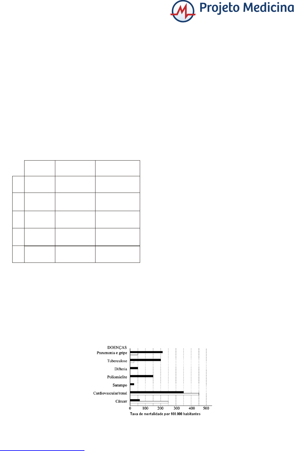 1 www.projetomedicina.com.br Biologia Programa de Saúde - Saúde e Doenças - Miscelânia de Doenças [Difícil] 01 - (UEPB) Determinados artrópodes são de interesse médico, por serem vetores em algumas doenças humanas. No quadro abaixo, estão corretamente relacionados (vetor x agente x doença) na alternativa: Artrópode Agente Doença causada Vetor Mosquito Vírus filariose Aedes Percevejo T dengue Triatoma rypanosoma cruzi Mosquito malária Anopheles Plamodium vivax Mosca tricomoníase Glossina tricomoníase Trypanosoma gambiensis Mosquito úlcera de Bauru Culex Wuchereria bancroftie. d. c. b. a. 02 - (UNIFESP SP) Observe o gráfico e assinale a alternativa que contém legendas que explicam corretamente as diferenças observadas. 2 www.projetomedicina.com.br a) b) c) d) e) 03 - (Mackenzie SP) A Embrapa desenvolveu um bioinseticida que tem em sua composição uma bactéria, o Bacillus sphaericus , capaz de controlar as larvas de pernilongos. Quando ingeridas pelas larvas, as bactérias liberam uma substância de natureza protéica que danifica o tubo digestório, causando a morte das larvas por inanição. Assim, larvas de Anopheles, de Culex e de Aedes têm sido eliminadas. Tal eliminação combate, respectivamente, as seguintes doenças: a) malária, febre amarela e dengue. b) malária, Chagas e leishmaniose. c) febre amarela, leishmaniose e dengue. d) malária, febre amarela e toxoplasmose. e) toxoplasmose, malária e dengue. 04 - (UFMS) “O Ministério da Saúde estuda incluir quatro novas vacinas no calendário oficial do país já a partir de 2005. As vacinas contra o rotavírus, varicela, pneumococo e meningococo poderão ser gratuitas e fazer parte do Plano Nacional de Imunização. Atualmente, fazem parte do calendário oficial: BCG (tuberculose), hepatite B, poliomielite, Hib (meningite), febre amarela (em áreas endêmicas), tríplice viral e tríplice bacteriana”. (Folha de São Paulo, p. C 4, 27 de agosto de 2004). 3 www.projetomedicina.com.br As vacinas tríplice viral e tríplice bacteriana são administradas para evitar, respectivamente, as seguintes doenças: a) rubéola, leptospirose e sífilis / gonorréia, sarampo e tétano. b) gripe, sarampo e coqueluche / botulismo, sífilis e rubéola. c) sarampo, difteria e cólera / tétano, rubéola e coqueluche. d) gripe, herpes e coqueluche / cólera, botulismo e sífilis. e) sarampo, caxumba e rubéola / difteria, coqueluche e tétano. 05 - (UEPB) A cidade de João Pessoa-PB, considerada umas das mais belas capitais nordestinas, atrai, no verão, turistas de várias partes do Brasil e de outros Países, principalmente por ser litorânea. Numa de suas praias, um grupo de turistas, tomando banho, sofreu um acidente provocado por animais marinhos. Alguns desses turistas apresentaram os seguintes sintomas: câimbras, náuseas, vômitos, desmaios, convulsões, arritmias cardíacas, problemas respiratórios, vergões avermelhados, necrose, ardor e dores intensas. Outros membros do grupo apresentaram dor, formigamento e inchaço. Já os demais apresentaram dilaceramento dos tecidos, causando forte infecção, com veneno no céu-da-boca, dor intensa e prolongada, durante até 24 horas. O texto acima refere-se a acidentes provocados por animais marinhos, respectivamente, pelos seguintes grupos: a) Sarcopterygii, Anfioxo e Lampreias b) Cnidários, Moluscos e Peixes c) Moluscos, Platelmintos e Peixes d) Moluscos, Peixes e Planaria e) Annelida e Cnidários e Moluscos 06 - (PUC RS) Considere os planos anatômicos do corpo humano, ilustrados abaixo. 4 www.projetomedicina.com.br Os dois pés de um homem são separados um do outro pelo plano _________, o qual corta o corpo humano definindo uma porção direita e outra esquerda. a) frontal b) sagital c) transversal d) horizontal e) coronal 07 - (UNIMONTES MG) Doença é o estado resultante da consciência da perda da homeostasia de um organismo vivo. Esse desequilíbrio pode ser total ou parcial, sendo provocado por infecções, modificações genéticas, disfunções orgânicas, etc. A figura a seguir ilustra indiretamente um meio de se prevenir contra algumas doenças. 5 www.projetomedicina.com.br De acordo com a figura e o assunto abordado, analise as alternativas a seguir e assinale a que REPRESENTA a doença que pode ser prevenida com a ação apresentada na figura. a) AIDS. b) Leishmaniose. c) Meningite. d) Cólera. 08 - (UNIMONTES MG) A tabela a seguir mostra características de dois métodos utilizados para diagnosticar determinadas doenças. Analise-a. elevado mais CustocustoMenor IV sensível Maissensível MenosIII complexa Maisrealizadaser de fácil MaisII DNA do cópias múltiplas de Criação parasita do ãoDemonstraçI )polimerase da cadeia em (reação PCR Espessa Gota De acordo com a tabela apresentada e o assunto abordado, analise as afirmativas abaixo e assinale a alternativa CORRETA. 6 www.projetomedicina.com.br a) A gota espessa tem menor probabilidade de erros porque, nesse exame, o diagnóstico é realizado pela visualização do parasita. b) Ambos os métodos são considerados como sendo biologia molecular. c) Se um determinado diagnóstico precisasse ser confirmado, a PCR seria o método mais indicado para esse fim, comparado com a gota espessa. d) A sensibilidade da PCR é o único fator que justifica o fato de ele ser o método com custo mais elevado. 09 - (UFAL) Infecções virais têm diferentes efeitos sobre o organismo humano de acordo com o acometimento dos órgãos alvo. Observe a figura abaixo mostrando possíveis destinos de células infectadas por vírus, e dos vírus em si, quando estes são liberados de células infectadas no corpo humano. Sobre esse assunto, é correto afirmar: a) Vírus que realizam ciclo lítico (1) inserem seu material genético na célula, geralmente levandoa à morte, como o Influenza H1N1, causador da gripe mundial. b) Vírus que possuem ciclo lisogênico (2) levam a célula à morte ao sair da mesma, mas somente após um
