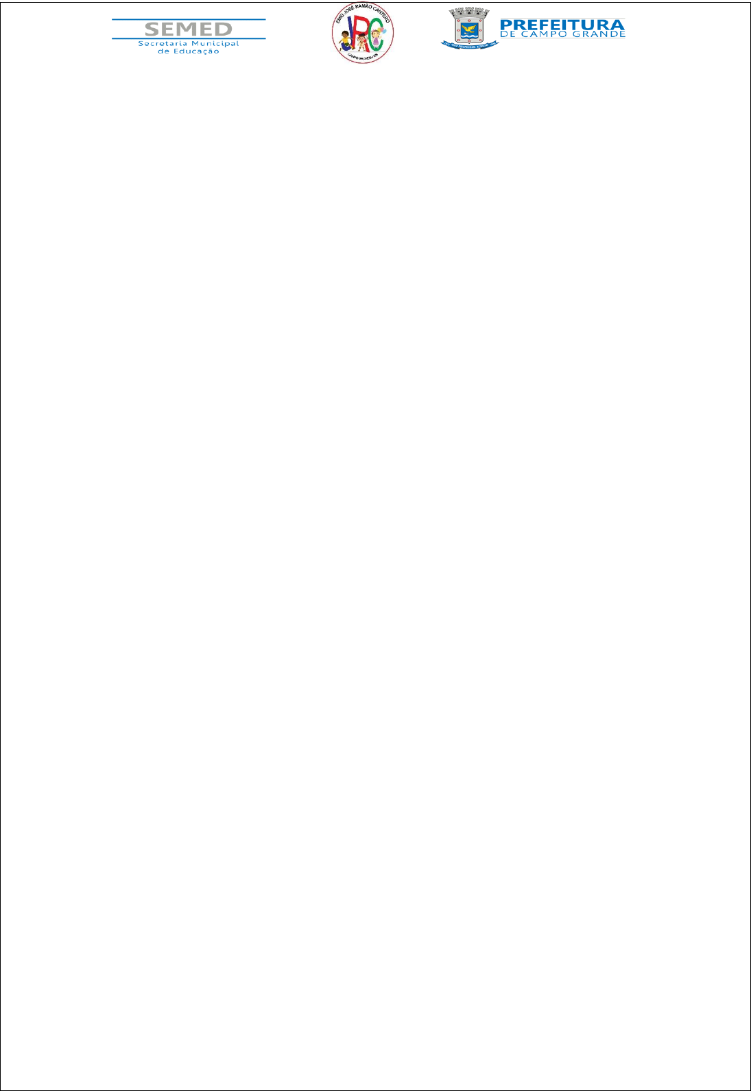 PREFEITURA MUNICIPAL DE CAMPO GRANDE SECRETARIA MUNICIPAL DE EDUCAÇÃO EMEI JOSÉ RAMÃO CANTERO ASSISTENTE: ____________________________________________________________ Formação continuada, sábados letivos: 03/10 e 10/10/2020 Considerando a CI CIRCULAR N. 365/GAB/SEMED, de 20 de agosto de 2020, a reposição dos 14 dias letivos não efetivados para a Educação Infantil deverá ser utilizada para formação de professores e assistentes educacionais que atuam nesta etapa educacional. Assim, encaminhamos o texto “Experiências sensoriais, expressivas, corporais e de movimento nos campos de experiências da Base Nacional Comum Curricular para educação infantil – Marcia Buss- Simão, que será material de estudo referente aos dias 03/10 e 10/10 (sábados letivos). Objetivos: Compreender a importância das experiências sensoriais, expressivas, corporais e de movimento para as crianças. Ampliar a compreensão a respeito do sentido das propostas que oferecemos às crianças. Compreender a necessidade de ampliar o repertório cultural que envolve o domínio dos gestos e movimento das crianças. A partir da leitura, estudo do texto e discussão em reunião de formação, reflita sobre as questões e escreva o que você destacou como mais relevantes na sua prática em sala de aula. 1) Em relação à constituição do corpo (biológico/cultural), como essas concepções se estabelecem nas ações pedagógicas na Educação infantil? 2) Quais a possibilidades a proposta dos campos de experiências traz para a ampliação e diversificação das experiências e conhecimentos das crianças na Educação Infantil? 3) Quais questões o texto problematizou que podem nos ajudar a enriquecer as experiências sensoriais, expressivas, corporais e de movimento que apresentamos às crianças?