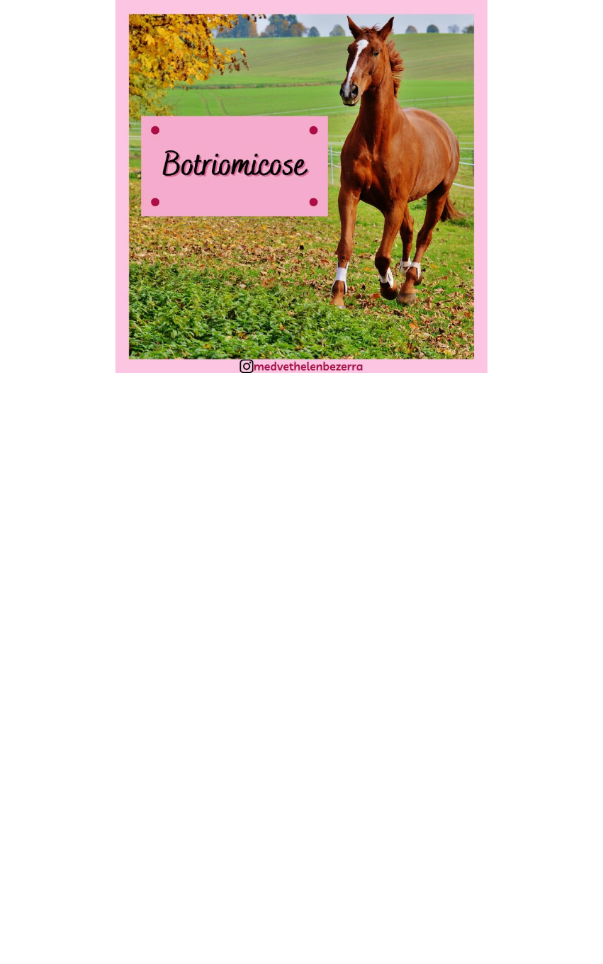 Botriomicose @medvethelenbezerra É uma enfermidade considerada infecciosa crônica, não contagiosa, produzida por Staphylococcus aureus. O nome botriomicose deve-se ao fato de, inicialmente, pensar-se tratar de um fungo e não de bactéria. As lesões botriomicóticas originam-se pela invasão do S. aureus de forma difusa por todo o corpo, agravando-se, com frequência, em regiões expostas a traumatismos. Desenvolve-se sob a forma de nódulos de tamanho que variam até 10cm de diâmetro com centro firme, ou flutuantes à palpação. Eventualmente, podem fistulizar dando saída a pus, de coloração esbranquiçada e aspecto granuloso, principalmente no tecido subcutâneo e no cordão espermático de cavalos recém-castrados e com funiculite de castração. Clinicamente o estado geral do animal permanece inalterado comendo e vivendo aparentemente sem grandes problemas. O diagnóstico baseia-se nas características das lesões e no pus com grânulos esbranquiçados que ao serem examinados em microscópico, após coloração específica, revelam zoogléias. O tratamento é realizado com penicilina benzatina na dose de 40.000 UI/kg a cada 3 a 5 dias, associada a uma dose diária matinal, pela via intravenosa, de terramicina a 10mg/kg que pode estar associada a DMSO (dimethylsulfóxido) na dose de 0,5 a 1,0mg/kg em solução a 20%, e à tarde 10mg/kg de terramicina pela via intramuscular. E conveniente, como em todo processo bacteriano, se possível, a realização de antibiograma para a verificação da sensibilidade do germe aos antibióticos, antes de se instituir o tratamento. As lesões cutâneas podem ser tratadas com limpeza com líquido de Dakin e nitrofurazona pomada. Referências: THOMASSIAN, Armen; Enfermidades dos Cavalos; 3ª edição; Editora Livraria.