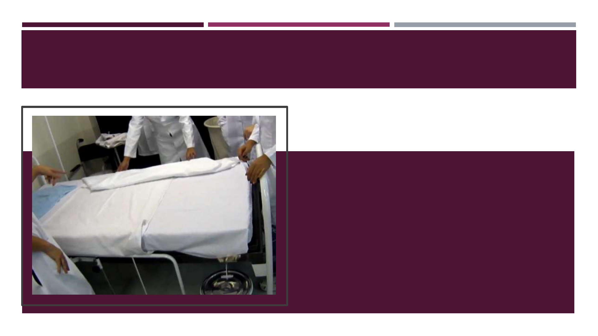 FUNDAMENTOS E TECNOLOGIAS DA SAÚDE PREPARO DA CAMA DO PACIENTE UNIDADE DO PACIENTE Após a limpeza da unidade, a arrumação da cama é fundamental para proporcionar conforto e bem estar ao paciente,. Sendo assim o preparo da cama consiste em arrumar o leito de acordo com as características e necessidades do cliente que irá ocupá-lo. OBJETIVOS: • Proporcionar repouso, conforto, segurança e bem estar ao paciente. • Economizar tempo e energia da equipe de enfermagem. • Manter a unidade com aspecto agradável TIPOS DE CAMA Cama Fechada Cama Aberta Cama com paciente acamado Cama com paciente operado MATERIAL • 02 lençóis • 01 impermeável • 01 forro móvel (travessa) • 01 colcha (optativo) • 01 cobertor • 01 fronha • 01hamper, • Luvas de procedimentos, • Álcool e panos para limpeza. CAMA FECHADA • Sem a ocupação do leito por paciente. •Permanece fechada até a admissão de um novo paciente. TÉCNICA • Certificar-se de que já foi realizada a limpeza terminal da unidade. • Lavar as mãos • Reunir o material necessário e levá-lo ao quarto; • Abrir as portas e janelas para arejar a unidade; • Afastar a mesa de cabeceira, colocando uma cadeira de preferência ao pé direito da mesma, com o espaldar voltado para a cabeceira, já limpa, próximo à cama; • Observar o estado de conservação do colchão e travesseiro (tomar as providências cabíveis em caso de mau estado); • Manter a cama com cabeceira abaixada, pois facilita a arrumação • Colocar sobre o assento da cadeira o travesseiro já com fronha; • Dispor a roupa no encosto ou espaldar da cadeira dobrada duas vezes no sentido longitudinal e uma vez no sentido do comprimento de acordo com a ordem de utilização (lençol de cima, forro móvel, impermeável, lençol de baixo) e com as aberturas para o lado esquerdo da cadeira; • Levar o lençol da cadeira para cama, tomando o cuidado de não encostar- se ao chão e jaleco; • Abrir a primeira dobra do lençol • Colocar o impermeável (abrir a primeira dobra) e, sobre este, o forro móvel, ambos na parte central da cama, fixando-os juntamente sobre o colchão; • Fazer o canto da cabeceira, com aproximadamente 40 cm de lençol para fixá-lo sob o colchão, após fazer o canto dos pés e lateral da cama • Fixar o lençol de baixo, fazendo o envelope no canto superior e inferior do colchão; • Estender o lençol de cima, fazendo à prega de conforto no sentido da largura, próximo a altura dos pés do paciente, impedindo a compressão dos mesmos, prender no canto dos pés da cama, deixando as laterais soltas • Dobrar o lençol de cima no sentido da largura da cama; • Do outro lado da cama, puxar lençol de baixo, impermeável e forro, prendendo o centro e após fixar o envelope nos cantos do colchão; • Puxar o lençol de cima, idem do outro lado; • Colocar o travesseiro em pé na cabeceira da cama com a abertura da fronha voltada para o lado oposto ao da porta de entrada do quarto; • Deixar a unidade em ordem, retornando os móveis aos seus lugares originais, • Lavar as mãos. CAMA ABERTA • Com ocupação do leito paciente, que pode ou não se locomover. TÉCNICA PARA PACIENTE QUE PODE SE LOCOMOVER • Certificar-se de que já foi realizada a limpeza concorrente da unidade • Lavar as mãos • Reunir o material necessário e levá-lo ao quarto; • Abrir as portas e janelas para arejar a unidade; • Afastar a mesa de cabeceira, colocando uma cadeira de preferência ao pé direito da mesma, com o espaldar voltado para a cabeceira, já limpa, próximo à cama; • Observar o estado de conservação do colchão e travesseiro (tomar as providências cabíveis em caso de mau estado); • Manter a cama com cabeceira abaixada, pois facilita a arrumação • Colocar sobre o assento da cadeira o travesseiro já com fronha; • Dispor a roupa no encosto ou espaldar da cadeira dobrada duas vezes no sentido longitudinal e uma vez no sentido do comprimento de acordo com a ordem de utilização (lençol de cima, forro móvel, impermeável, lençol de baixo) e com as aberturas para o lado esquerdo da cadeira; • Dobrar a ponta do lençol superior, do lado da entrada da porta e colocar o travesseiro deitado sobre a cabeceira da cama; • Deixar a unidade em ordem, retornando os móveis aos seus lugares originais, e colocar a companhia sobre a cama, em local de fácil acesso ao paciente; • Lavar as mãos TÉCNICA PARA DOENTE ACAMADO • Lavar as mãos • Reunir o material necessário e levá-lo ao quarto; • Explicar o procedimento ao paciente; • Dobrar todos os lençóis na sequência de uso sobre a cadeira limpa • Calçar as luvas de procedimento; • Soltar a roupa de cama; • Retirar o travesseiro e as cobertas, deixando o paciente coberto apenas com o lençol de cima; • Colocar a roupa suja de cama no hamper; • Solicitar a colaboração do paciente, se possível, lateralizando-o opostamente á cadeira com as roupas limpas; • Empurrar as roupas de cama usadas em forma de leque, em direção ao centro da cama deixando livre o colchão; • Realizar limpeza concorrente da metade do colchão: sentido lateral para o centro da cama • Dispor o lençol limpo, o impermeável e o forro móvel sobre a metade da cama, esticá-los e prende-los; • Lateralizar o paciente no lado oposto em que se encontrava, sobre a roupa de cama limpa, inclusive o lençol de cima; • Retirar a roupa de cama suja, colocando-a no hamper; • Realizar limpeza concorrente da outra metade do colchão: do centro para fora • Puxar, esticar e prender o lençol de baixo, impermeável e o forro móvel; • Prender o lençol de cima nos pés da cama, deixando as laterais soltas; • Colocar o travesseiro sob a cabeça do paciente; • Voltar o paciente para posição dorsal • Trocar o lençol de cima do paciente • Deixar o paciente confortável e recompor a unidade; • Recolher o material para o expurgo • Lavar as mãos. CAMA DE OPE