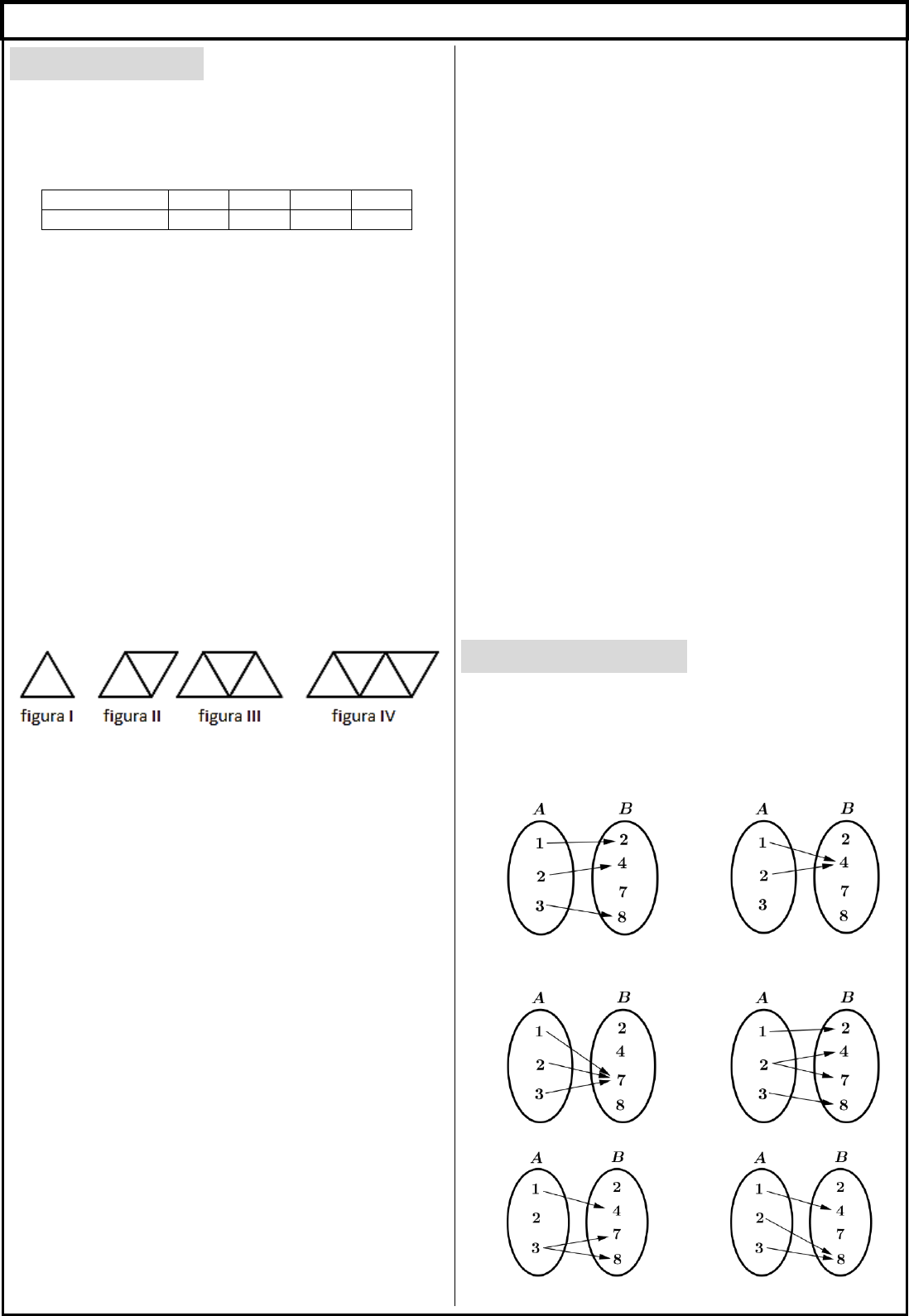 pcdamatematica Ex01: Em uma pista circular de testes, um automóvel desloca-se com velocidade constante. Com o auxílio de um cronômetro, marcam-se diferentes intervalos de tempo e, em cada intervalo de tempo, verificou-se a distância percorrida conforme tabela abaixo. Tempo (h) 1 1,4 1,6 2 Distância (km) 50 70 80 100 a) Qual a lei matemática que associa a distância percorrida com o tempo? b) Qual a distância percorrida quando o tempo é igual a 2,8h? c) Qual é o tempo gasto quando a distância percorrida é 300km? Ex02: Cada figura da sequência é formada por triângulos construídos com palitos. a) Escreva uma fórmula que permita calcular a quantidade de palitos em função da quantidade de triângulos. b) Quantos palitos são necessários para formar a figura dessa sequência composta de 6 triângulos? E a figura formada por 12 triângulos? c) A figura formada com 41 palitos é composta de quantos triângulos? Ex03: Uma empresa de telefonia fixa oferece a seus clientes dois planos de serviços: • Plano A: mensalidade de R$9,55 mais R$0,26 por minuto falado; • Plano B: mensalidade de R$26,30 mais R$0,10 por minuto falado. a) Para cada um dos planos, escreva uma expressão por meio da qual seja possível calcular o valor pago em função da quantidade x de minutos falados. b) Se um cliente utilizar, no mês, o telefone durante 356 minutos no plano A, quanto vai pagar? E se ele usar o plano B? c) Em relação ao valor da fatura, a partir de quantos minutos de ligação o plano B é mais vantajoso que o plano A? Definição: Considere dois conjuntos não vazios 𝐴 e 𝐵. Uma função de 𝐴 em 𝐵, denotada por 𝑓: 𝐴 → 𝐵, é uma relação em que cada elemento 𝑥 do conjunto 𝐴 está associado a um único elemento 𝑦 do conjunto B. Ex01: Verifique se as relações abaixo são funções 𝑓: 𝐴 → 𝐵. a) b) c) d) e) f) INTRODUÇÃO AO CONCEITO DE FUNÇÃO Aula 01: Noção Intuitiva Aula 02: Definição de função pcdamatematica Domínio, Contradomínio, Imagem e Lei de associação Ex01: Seja 𝐴 = {−1, 0, 1, 2} e 𝐵 = {−1, 0, 1, 2, 3, 4}, verifique, em cada caso, se a lei dada definine uma função 𝑓: 𝐴 → 𝐵. a) 𝑓(𝑥) = 𝑥2 b) 𝑓(𝑥) = 2𝑥 c) 𝑓(𝑥) = |𝑥| − 1 Ex02: Seja 𝑓:ℝ → ℝ definida por 𝑓(𝑥) = (𝑥 − 1)2. a) calcule 𝑓(0), 𝑓(1), 𝑓 ( 3 4 ) 𝑒 𝑓(√2). b) Determine os valores de x cuja imagem é 4. Ex03: Considere a função f, definida por 𝑓(𝑥) = 𝑎𝑥 + 𝑏, com a e b reais. Determine 𝑓(10) sabendo que 𝑓(2) = 3 e 𝑓(5) = 9. Ex04: Determine a imagem da função 𝑓: 𝐴 → ℝ dada por 𝑓(𝑥) = 𝑥 + 1 𝑥 e 𝐴 = { 1 3 , 1 2 , 2, 3}. Ex05: Uma função definida por 𝑓(𝑥) = 𝑥−1 2𝑥+1 tem imagem 𝐼𝑚 = {−3,−2, 1, 3}. Qual o domínio de 𝑓? Ex06: Estima-se que a população de certo município daqui a x anos, a contar de hoje, seja dada por 𝑝(𝑥) = 10 − 2 𝑥+1 milhares de pessoas. a) Qual é a população atual desse município? b) Qual será a população daqui a 3 anos? c) De quanto aumentará a população entre o 3º e 4º ano, a contar de hoje? d) Daqui a quantos anos a população será de 9.900 habitantes? 𝐷(𝑓) = 𝐴 = {−1, 0, 1, 2} 𝐶𝐷(𝑓) = 𝐵 = {−1, 1, 5, 7, 8} 𝐼𝑚(𝑓) = {−1, 1, 7} 𝑓(𝑥) = 2𝑥2 − 1 INTRODUÇÃO AO CONCEITO DE FUNÇÃO pcdamatematica Ex07: (EsPCEx-01) Se o domínio da função 𝑓(𝑥) = (𝑥2 − 9) ∙ (𝑥2 − 4) ∙ 𝑥2 e 𝐷(𝑓) = {−3,−2, 0, 2, 3} pode-se dizer que seu conjunto imagem possui a) exatamente 5 elementos b) exatamente 4 elementos c) um único elemento d) exatamente 2 elementos e) exatamente 3 elementos Ex08: (EsPCEx-02) Seja f uma função real, de variável real, definida por 𝑓(𝑥) = { 1, se 𝑥 for racional 0, se 𝑥 for irracional . Assim, pode-se afirmar que a) 𝑓(√2) = 𝑓(2) b) 𝑓(√3) − 𝑓(√2) = 𝑓(1) c) 𝑓(3,14) = 0 d) 𝑓(𝜋) é irracional e) √𝑓(𝑥) é racional para todo x real Ex09: (EsPCEx-97) Se a função f, dada por 𝑓(𝑥) = 𝑎𝑥 + 𝑏, satisfaz a condição 𝑓(5𝑥 + 2) = 5𝑓(𝑥) + 2, pode-se afirmar que: a) 𝑎 = 2𝑏 b) 𝑎 = 𝑏 + 2 c) 𝑎 = 2(𝑏 + 2) d) 𝑎 = 2(𝑏 + 1) e) 𝑎 = 2𝑏 + 1 Ex10: (EsPCEx-00) Se um retângulo tem base x e perímetro 100, então a área A do retângulo é dada em função de sua base por a) 𝐴(𝑥) = 𝑥2 − 50𝑥; 0 < 𝑥 < 50 b) 𝐴(𝑥) = −𝑥2 + 50𝑥; 0 < 𝑥 < 50 c) 𝐴(𝑥) = −𝑥2 + 100𝑥; 0 < 𝑥 < 100 d) 𝐴(𝑥) = 2𝑥(𝑥 − 50); 0 < 𝑥 < 50 e) 𝐴(𝑥) = 𝑥(𝑥 − 100); 0 < 𝑥 < 100 Ex01: Obtenha o domínio das funções: a) 𝑓(𝑥) = 9𝑥 + 3 b) 𝑓(𝑥) = 𝑥3+8𝑥 𝑥−3 c) 𝑓(𝑥) = √𝑥 − 8 d) 𝑓(𝑥) = 3 √2𝑥+1 4 e) 𝑓(𝑥) = √2𝑥 + 3 3 f) 𝑓(𝑥) = 𝑥 √𝑥−2 5 g) 𝑓(𝑥) = 1 𝑥 + 1 𝑥2−4 + √𝑥 − 1 Ex02: (EsPCEx-97) O domínio da função real 𝑦 = 1 √𝑥+3 − 1 √5−𝑥 é: a) ]−3, 5[ b) ]−3,+∞[ c) ]−5, 3[ d) ]−∞,−3[ ∪ ]5, +∞[ e) ]−∞, 5[ Aula 03: Determinação do domínio de uma função INTRODUÇÃO AO CONCEITO DE FUNÇÃO pcdamatematica Ex01: Represente no plano cartesiano os pontos 𝐴(2, 1), 𝐵(−3, 2), 𝐶(1, −4), 𝐷(−2,−3), 𝐸(4, 0), 𝐹(0, −3), 𝐺(2, 2) e 𝐻(−1, 1) Ex02: Determine as coordenadas dos pontos 𝐴,𝐵, 𝐶, 𝐷, 𝐸, 𝐹, 𝐺 e 𝐻. Ex03: Determine os valores de x e y para que os pares ordenados abaixo sejam iguais. a) (𝑥, 𝑦) e (−2, √3) b) (𝑥 + 𝑦, 1) e (3, 𝑥 − 𝑦) Ex04: Em cada caso determine o valor de 𝑚 para que o ponto 𝐴 satisfaça a condição dada. a) 𝐴(3,𝑚) pertence ao eixo das abscissas. b) 𝐴(𝑚 − 2, 4) pertence ao eixo das ordenadas. c) 𝐴(𝑚 + 1, 7) pertence ao eixo primeiro quadrante d) 𝐴(−2,𝑚 + 6) pertence ao segundo quadrante . Aula 04: Sistema Cartesiano Ortog