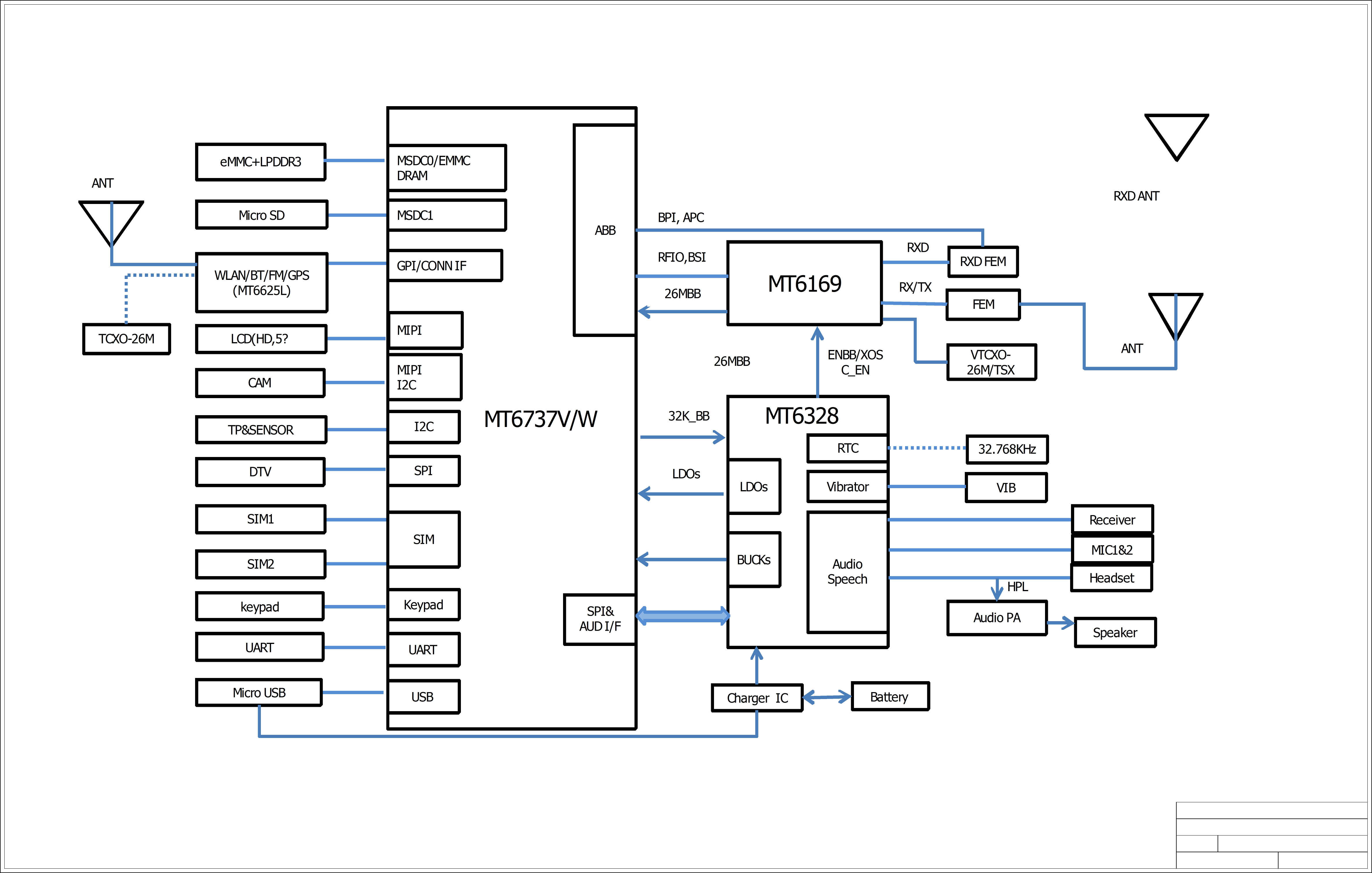 01_BLOCK_DIAGRAM 11 Yude Confidential Title Size D Data Sheet of 99 Sep 14,2016 02_I2C_ID_OVERVIEW 11 Yude Confidential Title Size D Data Sheet of 99 Sep 14,2016 Budget Timing I2C-0 I2C-2 I2C Spec. : Standard mode (100 kbps) and Fast mode (400 kbps), Fast mode Plus (1 Mbps) and High-speed mode (3.4 Mbps) Note : Function I2C Slave Address (7-bit mode) I2C I2C Spec. LM3642 / Flashlight Driver I2C address: 0X63 (Write:0xC6, Read:0xC7) Flashlight Driver 400 Kbps I2C-3 I2C-1 Front Camera Yes. Yes. 400 Kbps 400 Kbps Front camera (GC2355) I2C address: 0x3C (Write:0x78, Read:0x79) Rear Camera - 13M AF driver (DW9714A) I2C address: 0x0C (Write:0x18 , Read:0x19) Rear camera (IMX135) I2C address: 0X10 (Write:0x20, Read:0x21) 400 Kbps Yes. GT1151 / CTP I2C address: 0X5D (Write:0xBA, Read:0xBB) or 0x14 (Write:0x28, Read:0x29) CTP ITG1010 / Gyro I2C Address: 0x68 (Write:0xD0, Read:0xD1) Accelerometer Yes. Yes. MC3410 / Accelerometer I2C address: 0x4C (Write:0x98, Read:0x99) RGB / PS Sensor CM36652 / RGB+PS I2C address: 0X60 (Write:0xC0, Read:0xC1) Gyro Sensor 400 Kbps NFC MT6605 / NFC I2C address: 0X28 (Write:0x50, Read:0x51) M Sensor AK09911 / M-Sensor I2C Address: 0x0D (Write:0x1A, Read:0x1B) 2.5 Mbps 400 Kbps 400 Kbps 1.2 Mbps Sep 14,2016 Yude Confidential Title Size D Data Sheet of 99 10_BB_ POWER 10 Note: 10-1 Note: 10-1 Note: 10-1 C / 47 / uF / 0805 can be replaced by 2pcs C / 22 / uF / 0603 L1/4MIL L1/4MIL 4 mil GND trace with good shielding to PMIC (Differential) Schematic design notice of "10_BB_POWER" page. Note 10-1: Note 10-3: FSOURCE_P(EFUSE) (1)FSOURCE_P EFUSE power(VEFUSE) should be only for EFUSE usage(not share with other application) (2)W/I EFUSE program, VEFUSE need 1uF bypass cap (pls refer to ¡§LDO output voltage/current table¡¨) (3)W/O EFUSE program, VEFUSE bypass cap should be NC. 150mils 150mils C1051 close to AVDD18_MEMPLL(E1 ball) & DVDD18_MC1(F3 ball) and keep trace length < 150mils C1060 close to DVDD18_MC0 and keep trace length < 150mils C1052 close to DVDD28_MC1 and keep trace length < 150mils C1014 should be 47uF for MT6753 and MT6753T NC NC NC NC NC NC NC NC C1037 22uF C1030 22uF C1013 1uF C1053 1uF C1036 22uF C1038 22uF C1012 1uF C1042 1uF C1028 1uF C1022 1uF C 1 0 2 1 0 . 1 u F C 1 0 3 5 0 . 1 u F C 1 0 0 1 4 . 7 u F R 1 0 0 3 0 R C 1 0 4 8 0 . 1 u F C 1 0 0 6 0 . 1 u F C 1 0 3 2 0 . 1 u F C 1 0 4 0 0 . 1 u F C1008 1uF C1002 1uF C1003 1uF C1025 1uF C1033 1uF MT6737-SBS VOCRE VPROC VLTE GND VLTE_SRAM SRAM VDDQ K8 DVDD_CORE L7 DVDD_CORE L8 DVDD_CORE L9 DVDD_CORE L10 DVDD_CORE L11 DVDD_CORE L12 DVDD_CORE L15 DVDD_CORE L16 DVDD_CORE L19 DVDD_CORE L20 DVDD_CORE L21 DVDD_CORE L22 DVDD_CORE M8 DVDD_CORE M10 DVDD_CORE M22 DVDD_CORE N8 DVDD_CORE N10 DVDD_CORE N22 DVDD_CORE T8 DVDD_CORE T10 DVDD_CORE T22 DVDD_CORE U7 DVDD_CORE U8 DVDD_CORE U9 DVDD_CORE U10 DVDD_CORE U11 DVDD_CORE U22 DVDD_CORE U23 DVDD_CORE Y7 DVDD_CORE Y8 DVDD_CORE Y9 DVDD_CORE Y10 DVDD_CORE Y11 DVDD_CORE Y12 DVDD_CORE AA8 DVDD_CORE AA10 DVDD_CORE AA12 DVDD_CORE AB8 DVDD_CORE AB10 DVDD_CORE AB12 DVDD_CORE W16 DVDD_LTE W17 DVDD_LTE W18 DVDD_LTE W19 DVDD_LTE W20 DVDD_LTE W21 DVDD_LTE W22 DVDD_LTE W23 DVDD_LTE W24 DVDD_LTE Y16 DVDD_LTE Y17 DVDD_LTE Y18 DVDD_LTE Y19 DVDD_LTE Y20 DVDD_LTE Y21 DVDD_LTE Y22 DVDD_LTE Y23 DVDD_LTE Y24 DVDD_LTE AA16 DVDD_LTE AA18 DVDD_LTE AA20 DVDD_LTE AA22 DVDD_LTE AA24 DVDD_LTE AB16 DVDD_LTE AB18 DVDD_LTE AB20 DVDD_LTE AB22 DVDD_LTE AB24 DVDD_LTE AC16 VLTE_SRAM AC20 VLTE_SRAM AC24 VLTE_SRAM L14 DVDD_SRAM V19 DVDD_SRAM V20 DVDD_SRAM G9 DVDD12_EMI G12 DVDD12_EMI G14 DVDD12_EMI G16 DVDD12_EMI G18 DVDD12_EMI H9 DVDD12_EMI H12 DVDD12_EMI H14 DVDD12_EMI H16 DVDD12_EMI H18 DVDD12_EMI M12 DVDD_CPU M13 DVDD_CPU M15 DVDD_CPU M16 DVDD_CPU M17 DVDD_CPU M18 DVDD_CPU M19 DVDD_CPU M20 DVDD_CPU N12 DVDD_CPU N13 DVDD_CPU N14 DVDD_CPU N15 DVDD_CPU N16 DVDD_CPU N17 DVDD_CPU N18 DVDD_CPU N19 DVDD_CPU N20 DVDD_CPU T12 DVDD_CPU T13 DVDD_CPU T14 DVDD_CPU T15 DVDD_CPU T16 DVDD_CPU T17 DVDD_CPU T18 DVDD_CPU T19 DVDD_CPU T20 DVDD_CPU U12 DVDD_CPU U13 DVDD_CPU U14 DVDD_CPU U15 DVDD_CPU U16 DVDD_CPU U17 DVDD_CPU U18 DVDD_CPU U19 DVDD_CPU U20 DVDD_CPU V14 DVDD_CPU W14 DVDD_CPU Y14 DVDD_CPU AA14 DVDD_CPU AB14 DVDD_CPU AC14 DVDD_CPU A27 DVSS B5 DVSS B7 DVSS B9 DVSS B14 DVSS B18 DVSS B23 DVSS C6 DVSS C15 DVSS C22 DVSS C26 DVSS D3 DVSS D5 DVSS D8 DVSS D10 DVSS D11 DVSS D18 DVSS E24 DVSS G10 DVSS G13 DVSS G15 DVSS G17 DVSS H10 DVSS H13 DVSS H15 DVSS H17 DVSS K7 DVSS K9 DVSS L13 DVSS L17 DVSS L18 DVSS L23 DVSS M7 DVSS M9 DVSS M11 DVSS M21 DVSS M23 DVSS N7 DVSS N9 DVSS N11 DVSS N21 DVSS N23 DVSS P7 DVSS P8 DVSS P9 DVSS P10 DVSS P11 DVSS P12 DVSS P13 DVSS P14 DVSS P15 DVSS P16 DVSS P17 DVSS P18 DVSS P19 DVSS P20 DVSS P21 DVSS R7 DVSS R8 DVSS R9 DVSS R10 DVSS R11 DVSS R12 DVSS R13 DVSS R14 DVSS R15 DVSS R16 DVSS R17 DVSS R18 DVSS R19 DVSS R20 DVSS R21 DVSS T7 DVSS T9 DVSS U1001-E MT6737_12.6X12.6 MT6737V/W C1014 47uF NC C1056 22uF C1050 4.7uF C1045 4.7uF C1043 1uF C1031 1uF C1004 1uF C1023 1uF C1039 22uF C1055 4.7uF C1044 4.7uF C 1 0 2 9 0 . 1 u F C 1 0 4 7 2 . 2 u F C 1 0 1 6 2 . 2 u F C1027 1uF C1059 4.7uF C1011 4.7uF C1010 22uF C1007 47uF C1020 47uF C 1 0 1 9 1 u F C 1 0 4 6 0 . 1 u F C 1 0 5 7 0 . 1 u F C 1 0 5 1 0 . 1 u F C 1 0 0 9 0 . 1 u F C 1 0 1 7 0 . 1 u F C 1 0 1 8 0 . 1 u F C 1 0 3 4 0 . 1 u F C 1 0 5 8 0 . 1 u F C 1 0 5 2 4 . 7 u F C 1 0 5 4 0 . 1 u F C 1 0 1 5 0 . 1 u F C 1 0 6 0 0 . 1 u F C 1 0 2 6 1 u F C 1 0 0 5 0 . 1 u F MT6737-SBS GND AVDD & MD_A PLL PERI_D PERI_A GNDT11 DVSS T21 DVSS T23 DVSS U21 DVSS V7 DVSS V8 DVSS V9 DVSS V10 DVSS V11 DVSS V12 DVSS V13 DVSS V15 DVSS V16 DVSS V17 DVSS V18 DVSS V21 DVSS V22 DVSS V23 DVSS W7 DVSS W8 DVSS W9 DVSS W10 DVSS W11 DVSS W12 DVSS W13 DVSS W15 DVSS Y13 DVSS Y15 DVSS AA7 DVSS AA9 DVSS AA11 DVSS AA13 DVSS AA15 DVSS AA17 DVSS AA19 DVSS AA21 DVSS AA23 DVSS AB7 DVSS AB9 DVSS AB11 DVSS AB13 DVSS AB15 DVSS AB17 DVSS AB19 DVSS AB21 DVSS AB23 DVSS AC7 DVSS AC8 DVSS AC9 DVSS AC10 DVSS AC11 DVSS AC12 DVSS AC13 DVSS AC15 DVSS AC17 DVSS AC18 DVSS AC19 DVSS AC21 DVSS AC2