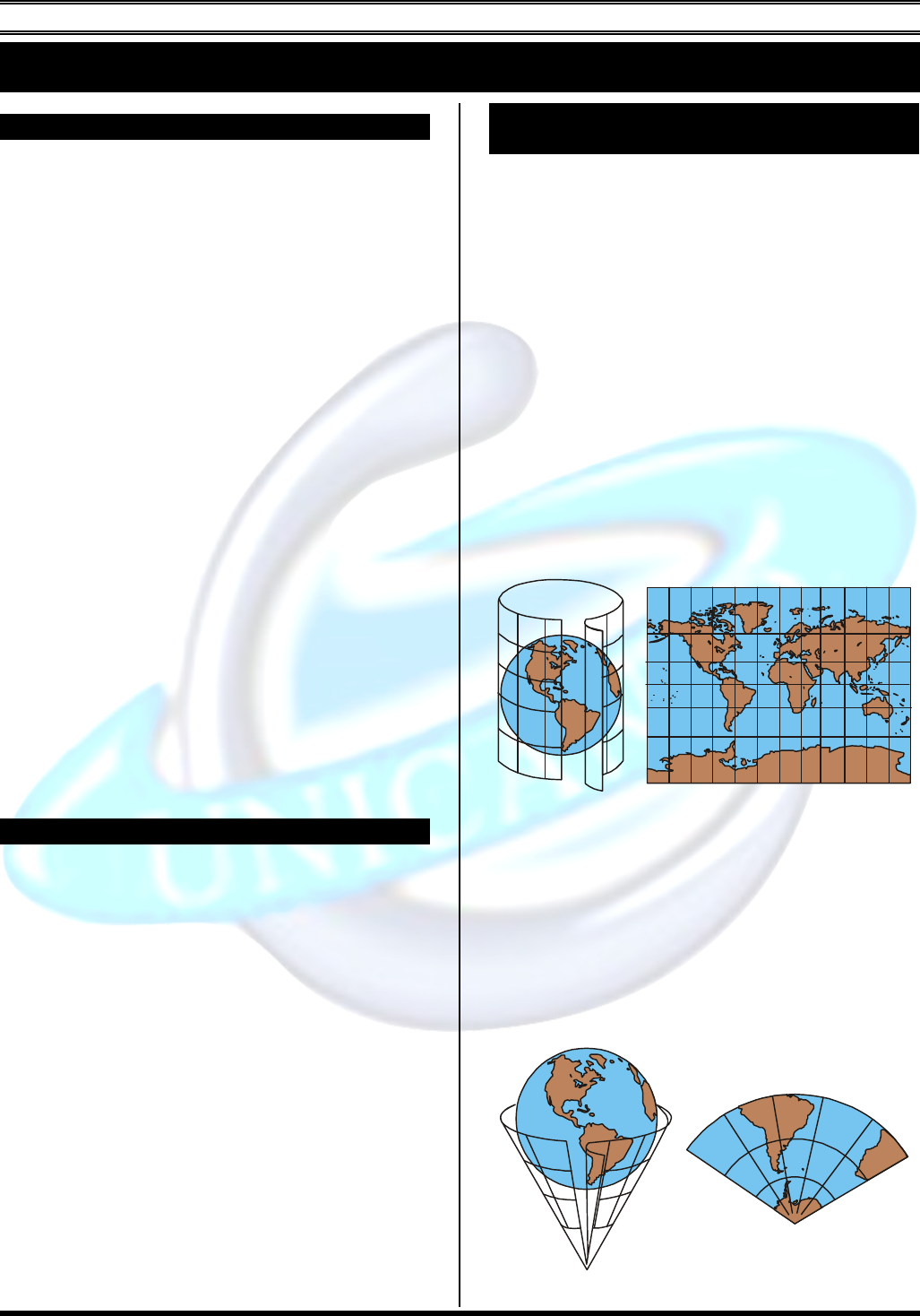 GEOGRAFIA Editora Exato 9 CARTOGRAFIA 1. CARACTERÍSTICAS GERAIS A Cartografia é uma ferramenta utilizada pela geografia para a confecção de mapas, a partir da ob- servação direta, ou de dados obtidos por fontes se- cundárias (fotos, imagens). O Homem retrata características do espaço desde a pré-história, essas observações foram retratadas em rochas, sobretudo em cavernas. A Cartografia foi evoluindo, tendo como áreas de grande desenvolvimento a babilônia (atual Ira- que), cerca de 200 a .C. Na Idade Média, houve um forte retrocesso na evolução do pensamento cartográfico, por influência da Igreja, que apoiava-se na idéia de que a terra era o centro do sistema, e Jerusalém era destacada como a área central em vários mapas do período. Com o desenvolvimento das navegações e a mudança de mentalidade, a cartografia novamente passou a adquirir status de importância, sendo que vários cartógrafos acompanhavam as expedições, descrevendo e relatando características peculiares das regiões visitadas, possibilitando, assim, um melhor conhecimento das áreas do globo. A cartografia é um instrumento essencial para os governos, pois serve para analisar, interpretar e in- terferir na realidade espacial, determinando uma me- lhor utilização do espaço. Esse instrumento também é utilizado como ramo de poder político, as informa- ções e os mapas atualizados e detalhados servem co- mo mecanismo estratégico de informação. 2. REPRESENTAÇÕES DA TERRA Globo terrestre: é a forma reduzida de repre- sentação da terra, que mais se aproxima da realidade. Essa forma possui algumas vantagens por apresentar a mesma forma da terra e conservar os continentes e oceanos em suas posições relativamente reais, embo- ra com pobreza de detalhes. Mapas: são representações da terra projetadas em uma superfície plana, a qual sempre determinará deformações. Esses tipos de representações são muito utilizadas em pesquisas científicas. Para confeccionar um mapa, é necessária uma grande quantidade de in- formações, que devem estar contidas no próprio ma- pa (escala, legenda, título, símbolos e data de confecção) para facilitar a compreensão e auxiliar na análise. 3. TIPOS GERAIS DE PROJEÇÃO CARTO- GRÁFICA Projeções cartográficas são representações de uma superfície esférica (o planeta) em uma superfície plana (mapa), essa representação acarreta distorções. Cilíndrica São projeções em que o globo é envolvido por um cilindro, posteriormente é determinado um mapa, essa projeção determina algumas características co- mo: � Paralelos e meridianos em linha retas e per- pendiculares; � Á medida que se aproxima dos pólos, ocor- re maior distorção da representação; � O único local que conserva as dimensões originais do paralelo do Equador (local de contato); � É muito utilizado como planisfério (repre- sentação total da terra). Cônica São projeções em que o globo terrestre é inse- rido em um cone. Características dessa projeção: � Os paralelos possuem linhas circulares e os meridianos linhas concêntricas (chegam ou saem de um determinado lugar); � Muito utilizado para representação de lati- tudes intermediárias (regiões próximas aos trópicos). Editora Exato 10 Azimutal ou Geopolítica São projeções da superfície da terra sobre um plano, a partir de um determinado ponto central. Ca- racterísticas dessa projeção: � Paralelos projetados em círculos concêntri- cos e meridianos projetados em linha reta e concêntrica; � Ocorre aumento de deformação na projeção à medida que se afasta do ponto central; � Possui uma utilidade muito importante em cartas náuticas e aeronáuticas; � Caracteriza-se por ser geopolítica, pois o centro da projeção (azimute) normalmente é o país ou região de destaque para o analista, possibilitando que essa área seja o centro da superfície (local de grande importância es- tratégica). � Também chamada de projeção eqüidistante (permite saber com precisão a distância em linha reta do centro a qualquer ponto da ter- ra). Robinson Sua função é essencialmente didática. Essa forma de projeção distorce menos as áreas, formas e distâncias. Os meridianos são elipses (linhas curvas) e os paralelos linhas retas. Possibilita, sem muitas distorções, a reprodu- ção de grandes áreas, muito útil para planisférios (mapas múndi). América Europa África Ásia Oceano Pacífico Antártida Oceano Atlântico Oceano índico Oceania Oceano pacífico 4. FORMAS ESPECÍFICAS DE PROJEÇÕES Mercator A projeção cilíndrica de Mercator surgiu no século XVI, em um momento em que boa parte do mundo já era conhecida. Essa projeção é muito utili- zada desde o período das navegações, tornando-se uma das mais conhecidas e inseridas em livros. Essa projeção é caracterizada como conforme (conserva os ângulos e as formas). Por ter um caráter expressa- mente eurocêntrico, recebeu forte crítica dos países subdesenvolvidos. Outro problema presente nessa projeção é a distorção nas altas latitudes, como no ca- so da Groenlândia (ilha dinamarquesa) que possui 2,2 Km2, contudo apresenta no mapa uma área superior ao Brasil que possui mais de 8,5 Km2. Peters Peters buscou determinar uma projeção cilín- drica que desenvolvesse tamanho real à posição dos países subdesenvolvidos. Essa projeção é equivalen- te, conserva o tamanho proporcional correto, contudo as formas se encontram esticadas. Essa projeção é também denominada de terceiro-mundista, por buscar quebrar a visão de superioridade das nações ricas do hemisfério norte. Aitolff Muito utilizado na produção de planisférios (mapas múndi). Essa projeção também é equivalente, contudo os meridianos e paralelos possuem forma e- líptica. A América constitui a região central. Editora Exato 11 Mollweide Muito utilizado também na produção de pla- nisférios (mapas múndi). Essa proje