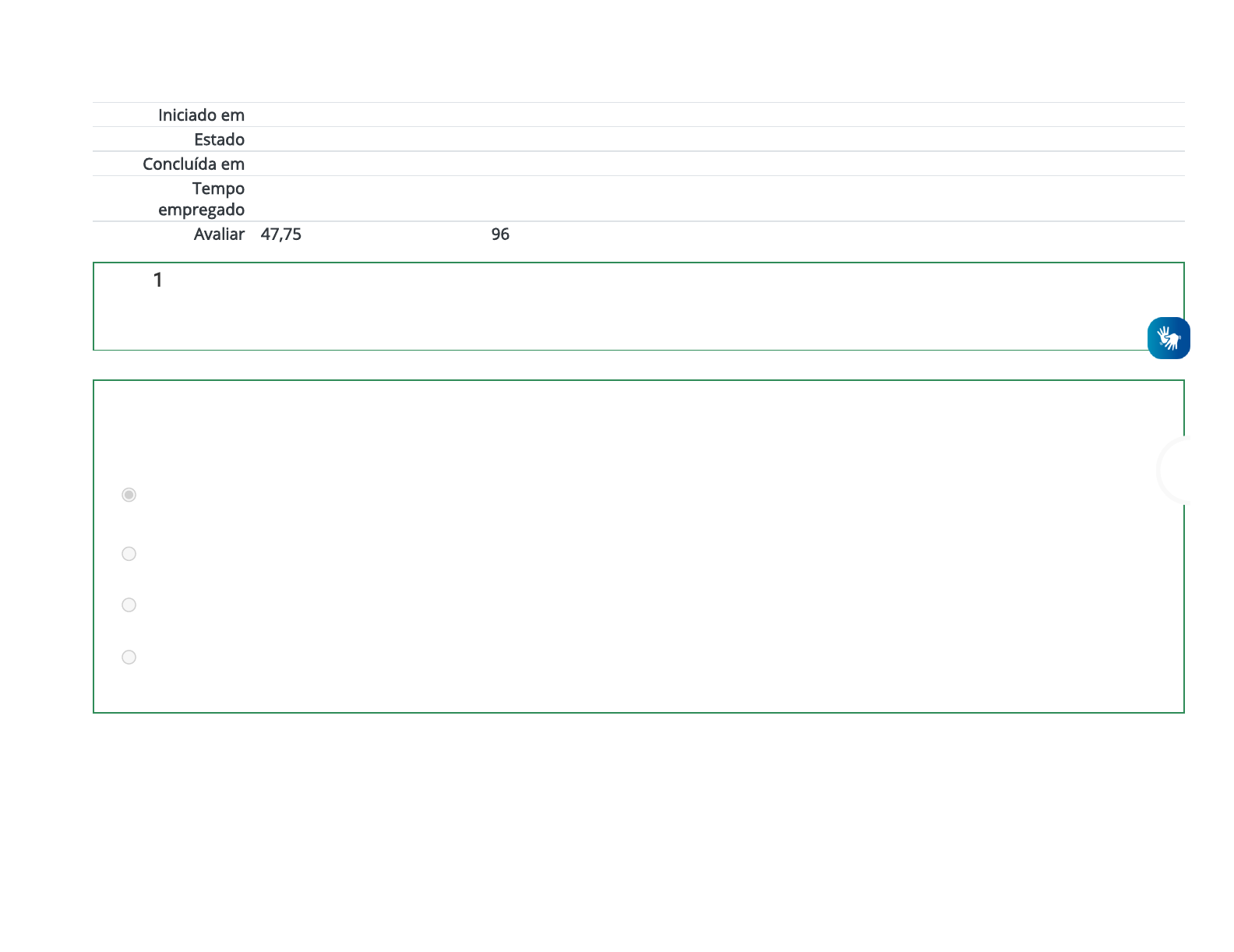 09/02/2021 Questionário Avaliativo: Revisão da tentativa https://novoscaminhos.ifsuldeminas.edu.br/mod/quiz/review.php?attempt=278144&cmid=22402#question-279442-13 1/17 Iniciado em terça, 9 fev 2021, 20:10 Estado Finalizada Concluída em terça, 9 fev 2021, 20:41 Tempo empregado 31 minutos 25 segundos Avaliar 47,75 de um máximo de 50,00(96%) Questão 1 Correto Atingiu 3,50 de 3,50 O relacionamento intrapessoal, o se conhecer será de grande valia. Sabendo quais serão as nossas reações, nossas prováveis ações, nos permitirá conduzir às adversidades que possam ser apresentadas. Diante do exposto, assinale a alternativa correta. Escolha uma: a. A interação faz parte do ser humano, isso signi�ca dizer, que somos um ser social, ou seja, que precisamos do outro, da comunicação e que aprendemos com a troca de experiências. b. O relacionamento intrapessoal é muito importante, no entanto, não apresenta benefícios para terceiros, podemos comparar com uma pessoa que faz terapia, os benefícios se reverte para ela mesma. c. A interação faz parte do ser humano, isso signi�ca dizer, que somos um ser social, precisamos um do outro, no entanto, a comunicação não faz parte desse processo. d. O relacionamento intrapessoal é de extrema importância para a gestão empresarial, portanto, é uma característica exigida exclusivamente para diretores e gerentes. 09/02/2021 Questionário Avaliativo: Revisão da tentativa https://novoscaminhos.ifsuldeminas.edu.br/mod/quiz/review.php?attempt=278144&cmid=22402#question-279442-13 2/17 Questão 2 Correto Atingiu 2,50 de 2,50 O relacionamento interpessoal no trabalho está pautado em ações dos colaboradores, nesse sentido, palavras como __________, __________, __________, paciência, trabalho em equipe, motivação e liderança positiva são essenciais que sejam implementadas na rotina de todo ambiente pro�ssional. Desta forma, preencha os espaços em branco de acordo com as alternativas. Escolha uma: a. consideração com o outro, respeito, colaboração b. simpatia , atenção , dedicação c. consideração com o outro , �exibilidade , autonomia d. empatia, colaboração, respeito 09/02/2021 Questionário Avaliativo: Revisão da tentativa https://novoscaminhos.ifsuldeminas.edu.br/mod/quiz/review.php?attempt=278144&cmid=22402#question-279442-13 3/17 Questão 3 Correto Atingiu 3,00 de 3,00 O conceito de relacionamento interpessoal no meio corporativo é entendido como a conduta dos colaboradores diante de crises, conflitos, superação de obstáculos e a forma de se lidar com os diferentes perfis. De acordo com as alternativas coloque V para as questões verdadeiras e F para as questões falsas. ( ) O colaborador é reconhecido pela sua capacidade de lidar com os conflitos , portanto, as competências e habilidades técnicas são deixadas em segundo plano. ( ) Assim, a valorização da equipe ao invés da competitividade entre os colaboradores é uma atitude assertiva. A competitividade tende a trazer insatisfação entre os colaboradores. ( ) A empresa que muitas vezes é a nossa segunda casa, pois passamos (em alguns casos) mais de 08 horas no ambiente corporativo e é a representação dos elementos que ali estão. ( ) O relacionamento interpessoal está relacionado à produtividade do colaborador , por isso a competitividade entre os membros da equipe é valorizada pela empresa. F V V F Sua resposta está correta. 09/02/2021 Questionário Avaliativo: Revisão da tentativa https://novoscaminhos.ifsuldeminas.edu.br/mod/quiz/review.php?attempt=278144&cmid=22402#question-279442-13 4/17 Questão 4 Parcialmente correto Atingiu 2,25 de 3,00 A importância da boa comunicação (verbal ou não verbal). Imagine você, colaborador de uma grande empresa que não sabe quem sãos os funcionários dos demais departamentos que compõem essa companhia e que a forma de comunicação é realizada exclusivamente por e-mail. Assim, analise as alternativas e coloque V para as questões verdadeiras e F para as questões Falsas. ( ) A comunicação empresarial nos dias atuais é realizada por meios tecnológicos, a empresa se comunica com seu público externo por meio das redes sociais e com o público. ( ) A comunicação empresarial é a forma que os colaboradores se articulam dentro do ambiente , portanto, a comunicação aceita é exclusivamente por email , principalmente nas empresas modernas. ( ) A comunicação é uma característica pessoal solicitada somente aos profissionais que tenham o cargo de gerência e diretoria , pois eles desempenham função que necessitam dessa prática. ( ) A comunicação também diz respeito a saber ouvir e ser ouvido, a propiciar um ambiente onde as pessoas se respeitam e são capazes de trocar ideias, conhecimentos e experiências de forma recíproca. V F F V Sua resposta está parcialmente correta. Você selecionou corretamente 3. 09/02/2021 Questionário Avaliativo: Revisão da tentativa https://novoscaminhos.ifsuldeminas.edu.br/mod/quiz/review.php?attempt=278144&cmid=22402#question-279442-13 5/17 Questão 5 Correto Atingiu 2,50 de 2,50 A perspectiva de trabalho em grupo, nos leva a tomada de decisões que não partem das ________________ dos componentes e, sim, do conjunto total, por isso, a __________, a aceitação e a ___________ por partes dos elementos que compõem o grupo será fundamental no resultado final. Escolha uma: a. individualidades, superação, tolerância b. tolerância, individualidades, superação c. equipes, negociação, tolerância d. individualidades, adequação, tolerância 09/02/2021 Questionário Avaliativo: Revisão da tentativa https://novoscaminhos.ifsuldeminas.edu.br/mod/quiz/review.php?attempt=278144&cmid=22402#question-279442-13 6/17 Questão 6 Parcialmente correto Atingiu 2,25 de 3,00 Entendemos o grupo como a soma dos elementos, ou seja, cada indivíduo dentro do grupo tem sua participação no resultado desse conjunto. De acordo com as alternativas coloque V para as que