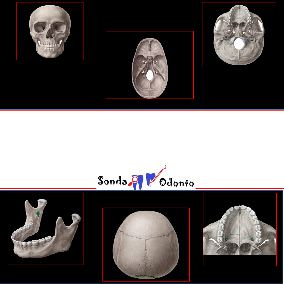 ANATOMIA Principais forames do crânio Vista anterior Forame supra orbital Forame infra orbitalForame mentual/mentoniano Forame cego Forame espinhoso Forame oval Forame redondo Forame magno Forame lacerado Forame jugular Vista superior da base do crânio Vista inferior da base do crânio Forame incisivo Forame palatino menor Forame palatino maior Forame oval Forame espinhoso Forame Estilomastóide Forame lacerado Forame jugular Forame mastoideo Forame magno Forame parietal Vista superior da calota craniana Forame mandibular Forame mentual/mentoniano Forames da Mandibula Forame cego Veias emissárias Forame espinhoso Artéria meníngea média Forame redondo Divisão maxilar do nervo trigêmeo (V2) Forame oval Divisão mandibular do nervo trigêmeo (V3), nervo petroso menor Forame lacerado Nervo petroso maior Forame jugular Nervo glossofaríngeo (IX), nervo vago (X), porção descendente do nervo espinhal acessório (XI), veia jugular interna Forame Estilomastóideo Nervo Facial (VII) Forame magno Artérias vertebrais e as raízes espinhais dos nervos espinhais acessórios ( XI). Forames do Crânio Parte 1 Forame O que passa? Forame mentual Nervo Incisivo e Nervo Mentual. Forame mandibular Nervo Alveolar Inferior (ramo terminal do Nervo Mandibular). Forame incisivo Vasos palatinos, nervo nasopalatino e artéria esfenopalatina Forame supra orbital Nervos e vasos supra-orbitais (filetes sensitivos) que irão se distribuir pela região do tegumento e parte da fronte. Forame infra orbital Nervo Maxilar, Artéria e Veia Infra orbital. Forame mastoideo Veia emissária: veia do seio mastoide e ramo da artéria occipital para a dura-máter. Forame palatino maior Nervo palatino maior Forame palatino menor Nervos palatinos menores Forame parietal Veias emissárias Forames do Crânio Parte 2 Forame O que passa?