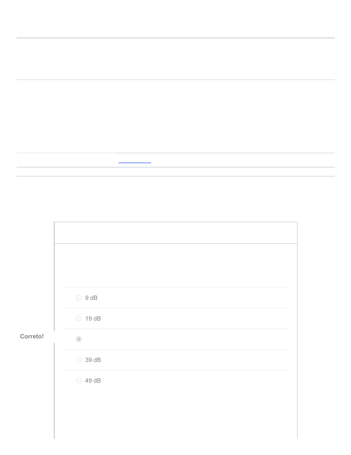 24/02/2021 AS Geral: FUNDAMENTOS DO CONTROLE DO RUÍDO INDUSTRIAL https://cruzeirodosul.instructure.com/courses/8075/quizzes/31737 1/23 AS Geral Entrega Sem prazo Pontos 10 Perguntas 25 Disponível 20 de set de 2020 em 0:00 - 30 de set de 2020 em 23:59 11 dias Limite de tempo Nenhum Tentativas permitidas 3 Este teste foi travado 30 de set de 2020 em 23:59. Histórico de tentativas Tentativa Tempo Pontuação MAIS RECENTE Tentativa 1 87 minutos 8,8 de 10 Pontuação desta tentativa: 8,8 de 10 Enviado 20 de set de 2020 em 18:00 Esta tentativa levou 87 minutos. 0,4 / 0,4 ptsPergunta 1 Qual o valor do nível de intensidade sonora para uma intensidade acústica de 8x10- W/m²?10 9 dB 19 dB 29 dB Correto!Correto! 39 dB 49 dB https://cruzeirodosul.instructure.com/courses/8075/quizzes/31737/history?version=1 24/02/2021 AS Geral: FUNDAMENTOS DO CONTROLE DO RUÍDO INDUSTRIAL https://cruzeirodosul.instructure.com/courses/8075/quizzes/31737 2/23 0,4 / 0,4 ptsPergunta 2 A perda auditiva pode ocorrer em diferentes frequências. Qual a faixa de frequência da perda auditiva temporária? 1.000 Hz 2.000 Hz 3.000 a 6.000 Hz 4.000 Hz 4.000 a 6.000 Hz Correto!Correto! O primeiro efeito fisiológico da exposição a altos níveis de ruído é a perda temporária de audição na banda das frequências de 4.000 a 6.000 Hz, sendo possível ao ouvido se recuperar. A recuperação ocorre através de um período estimado entre 11 a 14 horas de repouso acústico. 0,4 / 0,4 ptsPergunta 3 Qual o valor do nível de potência sonora para uma potência acústica de 5 W? 24/02/2021 AS Geral: FUNDAMENTOS DO CONTROLE DO RUÍDO INDUSTRIAL https://cruzeirodosul.instructure.com/courses/8075/quizzes/31737 3/23 124 dB 127 dB Correto!Correto! 130 dB 133 dB 137 dB Considerando NWS = 10 log W + 120, e W a potência de referência de 10 W, NWS = 126,9 = 127 dB 0 -12 0,4 / 0,4 ptsPergunta 4 Em qual faixa de frequência a perda auditiva apresenta prejuízos sociais evidentes? 1.000 Hz Correto!Correto! 2.000 Hz 3.000 a 6.000 Hz 4.000 Hz 4.000 a 6.000 Hz 24/02/2021 AS Geral: FUNDAMENTOS DO CONTROLE DO RUÍDO INDUSTRIAL https://cruzeirodosul.instructure.com/courses/8075/quizzes/31737 4/23 A perda auditiva permanente por exposição ao ruído se inicia geralmente na faixa de 3.000 a 6.000 Hz, principalmente na frequência de 4.000 Hz. Enquanto situada nesta faixa, o indivíduo pode não perceber esta perda, pois ela não influencia a faixa de frequência da conversação humana (500 a 2.000 Hz). Ou seja, não há prejuízo da fala, escuta ou entendimento da conversação ou audição de músicas ou TV. Daí a importância de se detectar e interromper a PAIR nos estágios iniciais, visto que ainda não ocorreu prejuízo da comunicação, que pode impactar na qualidade de vida do trabalhador (SALIBA, 2018). Quando a frequência de 3.000 Hz é comprometida, surgem as primeiras dificuldades na comunicação. Geralmente, quando há presença de ruído de fundo, conversas paralelas etc. Se a faixa de 2.000 Hz é comprometida, é comum que o indivíduo tente compensar a perda auditiva fixando o olhar nos lábios de quem fala, ou falando mais alto. Se a faixa de 1.000 Hz ou menos é comprometida, os prejuízos sociais são evidentes e o indivíduo tende a apresentar desdobramentos psíquicos. Ainda que irreversível, é muito raro que a PAIR cause incapacidade parcial ou total para o trabalho (SALIBA, 2018). 0,4 / 0,4 ptsPergunta 5 O trabalhador com perda auditiva pode ter sua capacidade laboral reconhecida através dos seguintes procedimentos, exceto: O histórico clínico e ocupacional do trabalhador. Os resultados dos exames médicos audiológicos. A demanda auditiva da atividade. A exposição a outros agentes insalubres ou perigosos. Correto!Correto! 24/02/2021 AS Geral: FUNDAMENTOS DO CONTROLE DO RUÍDO INDUSTRIAL https://cruzeirodosul.instructure.com/courses/8075/quizzes/31737 5/23 A exposição a agentes ototóxicos. O trabalhador portador de PAIR não deve ser excluído do trabalho em função de seu quadro audiométrico. Sua capacidade laboral poderá ser reconhecida, desde que considerando outros fatores, tais como: - A idade do trabalhador; - O histórico clínico e ocupacional do trabalhador; - Os resultados dos exames médicos audiológicos; - O tempo de exposição pregressa e atual do trabalhador a níveis de pressão sonora elevados; - A demanda auditiva da atividade; - A exposição não ocupacional a níveis de pressão sonora elevados; - A exposição a agentes ototóxicos (substâncias químicas que podem causar dano no sistema auditivo); - A capacitação do trabalhador; - Os programas de segurança que o trabalhador estará incluído. 0,4 / 0,4 ptsPergunta 6 Quais os parâmetros de avaliação do ruído de impacto? Circuito de resposta lenta com limite de tolerância de 130 dB(A) ou circuito de resposta rápida com limite de tolerância de 120 dB(C). 24/02/2021 AS Geral: FUNDAMENTOS DO CONTROLE DO RUÍDO INDUSTRIAL https://cruzeirodosul.instructure.com/courses/8075/quizzes/31737 6/23 Circuito linear com limite de tolerância de 120 dB(linear) ou circuito de resposta lenta com limite de tolerância de 130 dB(A). Circuito linear com limite de tolerância de 130 dB(linear) ou circuito de resposta lenta com limite de tolerância de 120 dB(A). Circuito linear com limite de tolerância de 120 dB(linear) ou circuito de resposta rápida com limite de tolerância de 130 dB(C). Circuito linear com limite de tolerância de 130 dB(linear) ou circuito de resposta rápida com limite de tolerância de 120 dB(C). Correto!Correto! Conforme Anexo 2 da NR-15: “Os níveis de impacto deverão ser avaliados em decibéis (dB), com medidor de nível de pressão sonora operando no circuito linear de resposta para impacto. As leituras devem ser feitas próximas ao ouvido do trabalhador. O limite de tolerância para ruído de impacto será 130 dB (linear). Nos intervalos entre os picos, o ruído existente deverá ser avaliado como ruído contínuo