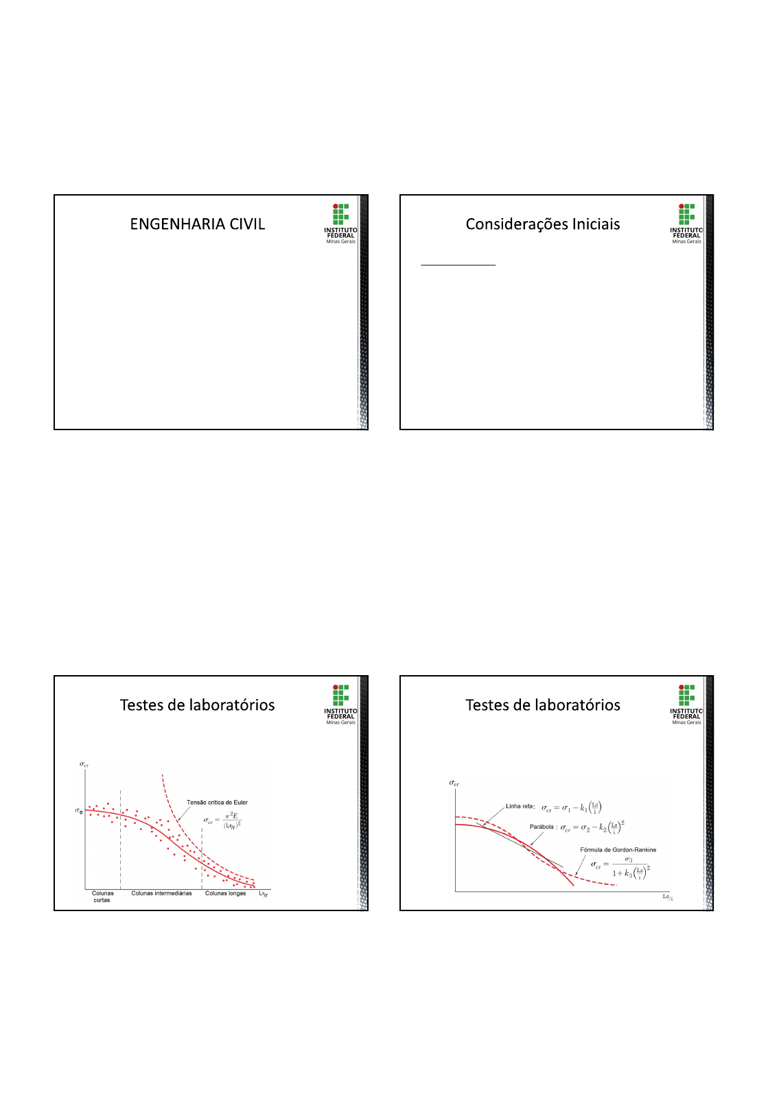 05/12/2019 1 RESISTÊNCIA DOS MATERIAIS Projeto de colunas submetidas a uma força centrada Anteriormente Determinação da força crítica Fórmula de Euler. Tensões abaixo do limite de proporcionalidade. Coluna era inicialmente prisma reto e homogêneo. Poucas colunas possuem as características acima, sendo utilizados fórmulas empíricas obtidas por testes de laboratório. 2 Foram realizados vários testes em colunas de aço submetidas a força axial centrada, com incremento da carga até a ruptura. 3 σe: Tensão de escoamento Lfl/r: Índice de esbeltez Fórmulas empíricas para as tensões admissíveis ou tensões críticas relacionadas ao índice de esbeltez foram apresentadas há um século, e desde então passaram por um contínuo processo de refinamento e melhoria. 4 1 2 3 4 05/12/2019 2 American Institute of Steel Construction (AISC). Aluminum Association. American Forest & Paper Association. 5 AISC: Método da tensão admissível, submetidas a carga centrada. 6 𝜎 = [0,658 ⁄ ]. 𝜎 𝜎 = 𝜋 𝐸 𝐿 𝑖 𝜎 = 0,877. 𝜎 𝜎 = 𝜎 1,67 *1,67: Coef. de segurança (AISC) 1) Determine o maior comprimento L para o qual o elemento de compressão AB, que é um perfil de aço laminado I100x11,5, possa suportar com segurança a força centrada mostrada na Figura abaixo. Considere: σE=250 MPa, E=200 GPa, A=1.460 mm², ix=41,6 mm e iy=14,8 mm. 7 Existência de diversos tipos de ligas de alumínio. Ligas muito utilizadas: Liga 6061-T6, Liga 2014-T6. 8 5 6 7 8 05/12/2019 3 Liga 6061-T6 Liga 2014-T6. 9 𝐿 𝑖 < 66 → 𝜎 = 139 − 0,868 𝐿 𝑖 𝐿 𝑖 ≥ 66 → 𝜎 = 351 × 10³ 𝐿 𝑖 𝐿 𝑖 < 55 → 𝜎 = 212 − 1,585 𝐿 𝑖 𝐿 𝑖 ≥ 55 → 𝜎 = 372 × 10³ 𝐿 𝑖 **Obs.: Resultados em MPa. American Forest & Paper Association fornece uma equação geral para determinação da tensão admissível para colunas curtas, intermediárias e longas submetidas a carregamento centrado. Para colunas retangulares (b x d) com b > d, a variação da tensão admissível com L/d é mostrada na Figura ao lado. 10 Colunas de seção cheia 11 𝜎 = 𝜎 𝐶 𝜎 : tensão admissível à compressão paralela às fibras 𝐶 : coeficiente de estabilidade 𝐶 = 1 + 𝜎 𝜎⁄ 2𝑐 − 1 + 𝜎 𝜎⁄ 2𝑐 − 𝜎 𝜎⁄ 𝑐 𝑐 = 0,80: 𝑚𝑎𝑑𝑒𝑖𝑟𝑎 𝑠𝑒𝑟𝑟𝑎𝑑𝑎 0,90: 𝑙𝑎𝑚𝑖𝑛𝑎𝑑𝑎 𝑠𝑒𝑟𝑟𝑎𝑑𝑎𝜎 = 0,822𝐸 ( 𝐿 𝑑 )² Obs.: Colunas com L/d>50 não são permitidas pela National Design Specification for Wood Construction. 2) Sabendo que a coluna AB tem um comprimento de flambagem de 4,2 m e que ela deve suportar com segurança uma força de 142 kN, projete uma coluna usando seção transversal quadrada composta de laminados colados. O módulo de elasticidade é E= 5,52 GPa, e a tensão admissível à compressão paralela às fibras da madeira é 𝜎 =7,3 MPa. 12 9 10 11 12 05/12/2019 4 Sobre projetos: Consideração de outros fatores para dimensionamento 13 13