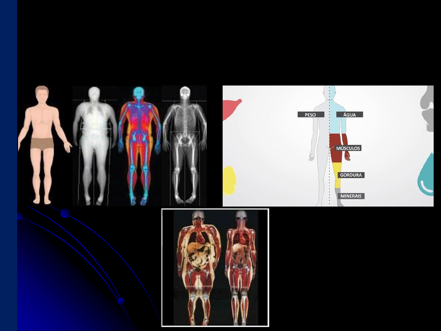 COMPOSIÇÃO CORPORAL R A M O N O V A N D O – C R E F 2 3 9 5 - G / M S COMPOSIÇÃO CORPORAL É o estudo dos componentes do corpo e de suas proporções relativas. Podemos subdividir ou fracionar a massa corporal total em massa de gordura e massa magra. Massa Gorda: gordura essencial e gordura armazenada. Massa Magra: (músculos, órgãos, água, proteínas, minerais e massa óssea). R A M O N O V A N D O – C R E F 2 3 9 5 - G / M S PORQUE MEDIR A COMPOSIÇÃO CORPORAL? Implicações na saúde: Excesso de gordura: Obesidade se relaciona com DAC, HAS, DM2, SM, CA e Dislipidemia. Falta de gordura: funções básicas da célula, distúrbios alimentares, anorexia nervosa, vício ao exercício. Implicações funcionais: No envelhecimento: osteoporose, sarcopenia e consequente redução de força. R A M O N O V A N D O – C R E F 2 3 9 5 - G / M S OBJETIVOS BÁSICOS Monitorar a saúde; Estado de condicionamento físico relacionado à saúde e ao rendimento; Auxiliar no planejamento de programas de exercícios físicos. MÉTODOS DE AVALIAÇÃO DA COMPOSIÇÃO CORPORAL Técnicas de Medida da Composição Corporal MÉTODO DIRETO MÉTODO INDIRETO MÉTODO DUPLAMENTE INDIRETO •Dissecação Macroscópica •Interactância de raios infravermelho •Bioimpedância elétrica •Extração lipídica •Densitometria • Antropometria •Hidrometria • Dobras cutâneas •Espectrometria •Absortometria radiológica de dupla energia (DEXA) •Ultra- sonografia •Tomografia computadorizada •Ressonância magnética •Condutividade eletrica total •Absorção de fótons R A M O N O V A N D O – C R E F 2 3 9 5 - G / M S COMPOSIÇÃO CORPORAL Diretos Indiretos II Indiretos Dissecação de cadáveres Pes. Hidrostática DEXA RMN Antropometria Bio-impedância Dobras Cutâneas R A M O N O V A N D O – C R E F 2 3 9 5 - G / M S Método Direto Dissecação de cadáveres Método Indiretos Pesagem Hidrostática DEXA Magnetic Resonance Imaging (MRI) Measurement of Total and Regional Adipose Tissue and Skeletal Muscle Image 1 Image 45 Métodos Duplamente Indiretos Bio-Impedância Dobras Cutâneas Antropometria ANTROPOMETRIA É a mensuração do corpo humano. É ciência que estuda e avalia o tamanho, o peso e as proporções do corpo humano, através de medidas rápidas e fácil realização, não necessitando equipamentos sofisticados e de alto custo financeiro. As medidas devem ser feitas de forma correta, seguindo uma metodologia definida, a fim de que os resultado sejam claramente entendidos e possam ser igualmente utilizados por outros autores. R A M O N O V A N D O – C R E F 2 3 9 5 - G / M S ANTROPOMETRIA Apresenta informações valiosas para: Predição e a estimação de vários componentes corporais: sedentários, atletas, desenvolvimento e envelhecimento. Seleção esportiva através do perfil antropométrico. R A M O N O V A N D O – C R E F 2 3 9 5 - G / M S Técnica Antropométrica •Altura/peso - Índice de Massa Corporal (IMC). •Circunferências de cintura, abdomên e quadril (RCQ). •Perímetros. R A M O N O V A N D O – C R E F 2 3 9 5 - G / M S MATERIAIS UTILIZADOS PARA MEDIDAS ANTROPOMÉTRICAS MASSA CORPORAL R A M O N O V A N D O – C R E F 2 3 9 5 - G / M S PRECAUÇÕES NA MEDIDA DE MASSA CORPORAL R A M O N O V A N D O – C R E F 2 3 9 5 - G / M S O avaliado a ser pesado deverá R A M O N O V A N D O – C R E F 2 3 9 5 - G / M S ESTATURA R A M O N O V A N D O – C R E F 2 3 9 5 - G / M S PRECAUÇÕES NA ESTATURA O avaliador deve se posicionar à direita do avaliado Deve-se registrar a hora em que foi feita a medida, sendo que em trabalhos longitudinais deve-se procurar efetuar medidas em um mesmo horário ou período do dia Evitar que o avaliado se encolha quando o cursor tocar a cabeça R A M O N O V A N D O – C R E F 2 3 9 5 - G / M S IMC - Índice de Massa Corporal ou Íncice de QUETELET ( 1833 ) É um índice utilizado como indicador de excesso de peso e de desnutrição O IMC é a medida de diagnóstico populacional mais utilizada para estudos epidemiológicos. O IMC em crianças e adolescentes, há muita variação devido as constantes alterações morfológicas e funcionais. IMC= __Peso (Kg)__ Estatura²(m) R A M O N O V A N D O – C R E F 2 3 9 5 - G / M S IMC Classificação < 18,5 Baixo peso 18,5 à 24,9 Peso normal 25,0 à 29,9 Sobrepeso 30,0 à 34,9 Obesidade grau I 35,0 à 39,9 Obesidade grau II > 40 Obesidade grau III ou Obesidade mórbida De acordo com a Organização Mundial de Saúde, a classifição do índice de Massa Corporal é a seguinte Mancini (2006) R A M O N O V A N D O – C R E F 2 3 9 5 - G / M S Classificação IMC Risco de comorbidades Baixo peso < 18,50 Baixo Normalidade 18,50 – 24,99 Peso saudável Sobrepeso 25,00 – 29,99 Aumentado Obesidade de grau I 30,00 – 34,99 Moderado Obesidade de grau II 35,00 – 39,99 Severo Obesidade de grau III ≥ 40,00 Muito severo Fonte: WORLD HEALTH ORGANIZATION (2000). CLASSIFICAÇÃO DE ADULTOS DE ACORDO COM O IMC (≥ 18 ANOS) R A M O N O V A N D O – C R E F 2 3 9 5 - G / M S IMC e PADRÃO DE SAÚDE R A M O N O V A N D O – C R E F 2 3 9 5 - G / M S CONCEITUAÇÃO Sobrepeso: É a massa corporal que ultrapassa a média para estatura (McArdle, 2003). Obesidade: Acúmulo excessivo de gordura no tecido adiposo, regionalizado ou em todo corpo, desencadeado por uma série de fatores associados aos aspectos ambientais e/ou endócrino (Guedes, 1998). R A M O N O V A N D O – C R E F 2 3 9 5 - G / M S