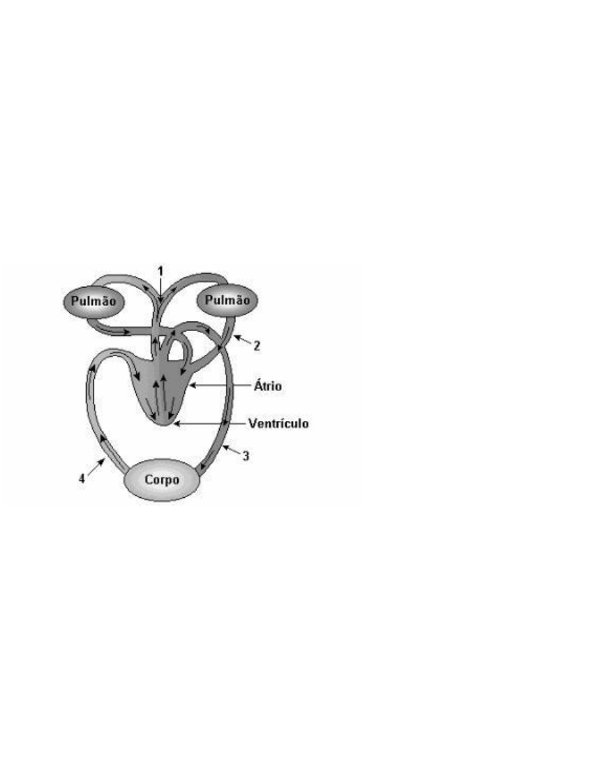 UNIVERSIDADE PAULISTA CURSO DE FISIOTERAPIA Disciplina: ANATOMIA DOS SISTEMAS Professora: MONIQUE PERES Lista de exercícios Anatomia -Sistema Cardiovascular, Sistema respiratório, Sistema Digestório 1- O sistema cardiovascular é formado pelo coração e uma grande quantidade de vasos sanguíneos. Esses vasos podem ser classificados em três tipos distintos: artérias, veias e capilares. Sobre as artérias, marque a alternativa correta: a. Atuam transportando exclusivamente sangue oxigenado. b. Atuam transportando exclusivamente sangue rico em gás carbônico. c. Atuam transportando sangue do coração para outras partes do corpo. d. Atuam transportando sangue de diversas partes do corpo em direção ao coração. 2-(UFPE) Com relação à função de artérias e veias na circulação humana, analise a figura e as proposições a seguir: Esquema da circulação do sangue no corpo humano 1. Artérias pulmonares (1) levam aos pulmões o sangue vindo do corpo. 2. Veias pulmonares (2) trazem para o coração o sangue oxigenado nos pulmões. 3. Artéria aorta (3) leva o sangue oxigenado a todas as partes do corpo. 4. Veias cavas (4) trazem o sangue rico em gás carbônico do corpo ao coração. Estão corretas: a. 1, 2, 3 e 4. b. 1, 2 e 3 apenas. c. 1 e 3 apenas. d. 2 e 4 apenas. e. 2, 3 e 4 apenas. 3-( Faap-SP) Em relação à circulação humana, é incorreto afirmar: a) Todo vaso que sai do coração é artéria. b) Todo vaso que chega ao coração é veia. c) Todo sangue que chega ao coração é sangue venoso. d) O sangue rico em oxigênio é o arterial. e) O sangue venoso passa do átrio direito para o ventrículo direito. 4- A valva mitral fica localizada entre o ____________ e o ______________ evitando o refluxo de sangue para o ______________ durante a sístole _____________ e é também chamada de __________________. a) Ventrículo direito – átrio esquerdo – átrio esquerdo – ventricular – bicúspide b) Ventrículo esquerdo – átrio direito – átrio esquerdo – ventricular – bicúspide c) Átrio esquerdo – ventrículo esquerdo – átrio esquerdo – atrial – bicúspide d) Átrio esquerdo – ventrículo esquerdo – átrio esquerdo – ventricular – bicúspide e) Átrio esquerdo – ventrículo esquerdo – átrio esquerdo – ventricular – tricúspide 5- A figura abaixo mostra uma estrutura muito importante do sistema respiratório. Observe a figura e marque a alternativa que indica corretamente o nome dessa parte do sistema respiratório e os processos que nela ocorrem. a) A figura representa os brônquios, estruturas responsáveis por captar o ar atmosférico e transferi-lo para o sangue. b) A figura ilustra os bronquíolos, estruturas responsáveis por fazer a filtração e o aquecimento do ar inspirado. c) A figura representa os alvéolos pulmonares, local onde ocorre o processo de hematose, ou seja, a passagem de gás oxigênio para o sangue e de gás carbônico do sangue para os pulmões. d) A figura representa os pulmões, estruturas responsáveis por absorver o gás carbônico do ar atmosférico e transferi-lo para o sangue através do processo de hematose. 6- Os pulmões são órgãos esponjosos, formados por milhões de alvéolos pulmonares, que são os locais onde ocorre o processo de hematose. Esse órgão é revestido por uma membrana que recebe o nome de: a) diafragma. b) pericárdio. c) peritôneo. d) pleura. 7-(PUC – RJ-2007) – Durante a respiração sistêmica no homem, ocorre: a) eliminação de O2 e eliminação de CO2 nos tecidos. b) absorção de CO2 e O2 nos tecidos. c) eliminação de CO2 e absorção de O2 nos tecidos. d) eliminação de CO2 e O2 nos tecidos. e) eliminação de O2 e absorção de CO2 nos pulmões. 8- A BIFURCAÇÃO inferior da TRAQUÉIA que dá origem aos brônquios principais é chamada ______________ a. Carina b. Marina c. Katrina d. angela 9- O Sistema Digestório é dividido em duas partes, sendo uma delas o tubo digestório e a outra o órgãos anexos. O tubo digestório por sua vez é dividido em três partes: alto, médio e baixo. Assinale a alternativa que indica quais são os órgãos que formam o tubo digestório. a)Faringe, laringe, pulmão, pâncreas e fígado. b)Boca, laringe, faringe, vesícula biliar e apêndice. c)Estômago, intestino delgado, fígado e rim. d)Laringe, estômago, pulmão, rim e fígado. e) Boca, faringe, esôfago, estômago, intestino delgado e grosso. http://www.puc-rio.br/ 10- O esôfago é um dos órgãos que atuam no sistema digestório fazendo a ligação da faringe até o estômago. Considerando seu papel no processo de digestão, assinale a alternativa que indica como o esôfago atua. a) Através da liberação de ácidos. b) Através de movimentos peristálticos. c) Através do esfíncter que se mantém aberto. d) Através da ação de enzimas diluidoras do alimento. e) Através da liberação parcial do espaço para passagem do alimento.