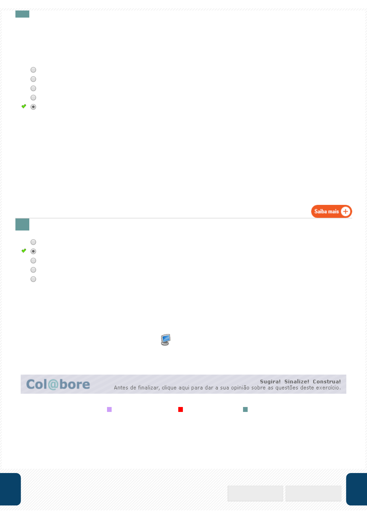 Legenda: Questão não respondida Questão não gravada Questão gravada