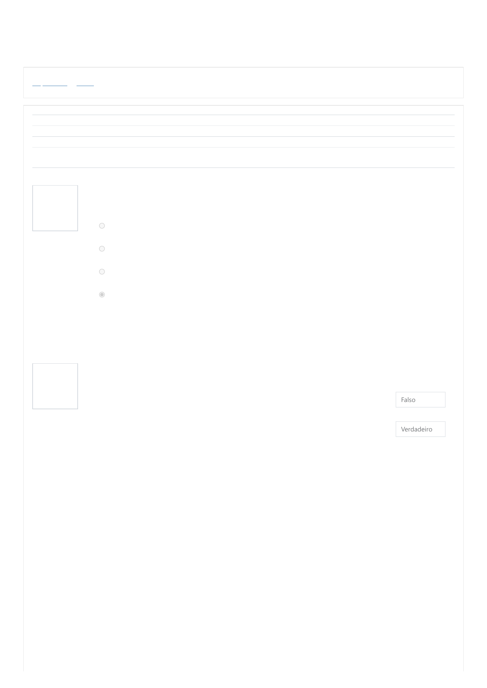05/03/2021 Teste 1 https://ava.unisanta.br/mod/quiz/review.php?attempt=1194392&cmid=131292 1/4 Página inicial / Teste 1 Questão 1 Correto Atingiu 1,00 de 1,00 Questão 2 Correto Atingiu 1,00 de 1,00 Iniciado em sexta, 5 mar 2021, 16:59 Estado Finalizada Concluída em sexta, 5 mar 2021, 17:27 Tempo empregado 27 minutos 53 segundos Avaliar 9,00 de um máximo de 10,00(90%) Sobre os Referenciais para Formação de Professores, assinale a alternativa incorreta: Escolha uma opção: A análise crítica da situação apontou para a necessidade de que fosse inserido um movimento de profissionalização do professor, pautado na concepção de competência profissional. O MEC procurou contribuir com o debate sobre a formação de docentes e, ao mesmo tempo, reafirmar a relevância da implementação de políticas públicas para o desenvolvimento profissional de professores. O documento foi fruto da discussão de muitos profissionais sobre a importância de se discutir sobre a capacitação e educação dos professores brasileiros. O documento indica que não são necessárias mudanças nas práticas de formação de professores. Sua resposta está correta. A resposta correta é: O documento indica que não são necessárias mudanças nas práticas de formação de professores.. Selecione “Verdadeiro” ou “Falso” para as afirmativas a seguir: Os professores devem ler apenas os livros técnicos da área educativa, evitando ler livros que falem sobre os costumes de uma época, que contextualizem as situações dentro de realidades políticas, de costumes de uma geração. O professor, assim como a grande maioria dos profissionais, precisa ter seu universo cultural continuamente ampliado. Falso Verdadeiro Sua resposta está correta. A resposta correta é: Os professores devem ler apenas os livros técnicos da área educativa, evitando ler livros que falem sobre os costumes de uma época, que contextualizem as situações dentro de realidades políticas, de costumes de uma geração. → Falso, O professor, assim como a grande maioria dos profissionais, precisa ter seu universo cultural continuamente ampliado. → Verdadeiro. https://ava.unisanta.br/ https://ava.unisanta.br/mod/quiz/view.php?id=131292 05/03/2021 Teste 1 https://ava.unisanta.br/mod/quiz/review.php?attempt=1194392&cmid=131292 2/4 Questão 3 Incorreto Atingiu 0,00 de 1,00 Questão 4 Correto Atingiu 1,00 de 1,00 Questão 5 Correto Atingiu 1,00 de 1,00 Leia as afirmativas a seguir: I. A formação profissional é um processo pedagógico, intencional e organizado, de preparação teórico-científica e técnica do professor para dirigir competentemente o processo de ensino. II. Os professores devem ter uma formação acadêmica que englobe disciplinas que formem sua base pedagógica, que contribuam para a compreensão do fenômeno educativo no contexto histórico-social. Assinale a alternativa correta: Escolha uma opção: Apenas a afirmativa II é correta. As afirmativas I e II são corretas. As afirmativas I e II são incorretas. Apenas a afirmativa I é correta. Sua resposta está incorreta. A resposta correta é: As afirmativas I e II são corretas.. Selecione “Verdadeiro” ou “Falso” para as afirmativas a seguir: Na vida dos alunos tanto da Educação Infantil, Ensino Fundamental, Ensino Médio ou Educação de Jovens e Adultos estão presentes particularidades que devem ser conhecidas pelo professor, pois ele precisa dominar tais aspectos para poder atuar profissionalmente. A formação profissional de professores deve assegurar, portanto, a aquisição de conhecimentos sobre o desenvolvimento humano e a forma como cada cultura caracteriza as diferentes faixas etárias. Verdadeiro Verdadeiro Sua resposta está correta. A resposta correta é: Na vida dos alunos tanto da Educação Infantil, Ensino Fundamental, Ensino Médio ou Educação de Jovens e Adultos estão presentes particularidades que devem ser conhecidas pelo professor, pois ele precisa dominar tais aspectos para poder atuar profissionalmente. → Verdadeiro, A formação profissional de professores deve assegurar, portanto, a aquisição de conhecimentos sobre o desenvolvimento humano e a forma como cada cultura caracteriza as diferentes faixas etárias. → Verdadeiro. Assinale a alternativa incorreta. “O processo de construção de conhecimento profissional do professor é contínuo devido ...” Escolha uma opção: ao incremento acelerado e as mudanças rápidas no conhecimento científico, na cultura, nas artes, nas tecnologias da comunicação, elementos básicos para a construção do currículo escolar. ao retrocesso das investigações relacionadas ao desenvolvimento profissional do professor. ao processo de desenvolvimento pessoal do professor, que o leva a transformar seus valores, crenças, hábitos, atitudes e formas de se relacionar com a vida e, consequentemente, com a sua profissão. a inevitável transformação das formas de pensar, sentir e atuar das novas gerações em função da evolução da sociedade em suas estruturas materiais e institucionais, nas formas de organização da convivência e na produção dos modelos econômicos, políticos e sociais. Sua resposta está correta. A resposta correta é: ao retrocesso das investigações relacionadas ao desenvolvimento profissional do professor.. 05/03/2021 Teste 1 https://ava.unisanta.br/mod/quiz/review.php?attempt=1194392&cmid=131292 3/4 Questão 6 Correto Atingiu 1,00 de 1,00 Questão 7 Correto Atingiu 1,00 de 1,00 Questão 8 Correto Atingiu 1,00 de 1,00 Leia as afirmativas a seguir sobre as diversas situações vivenciadas pelo profissional em início de carreira: I. O docente iniciante passa de aluno a professor e torna-se responsável por instigar, mediar, incluir e avaliar os educandos. II. O docente iniciante tem a necessidade de romper com os paradigmas tradicionais no ensino ainda vigentes em muitas instituições. Assinale a alternativa correta: Escolha uma opção: Apenas a 