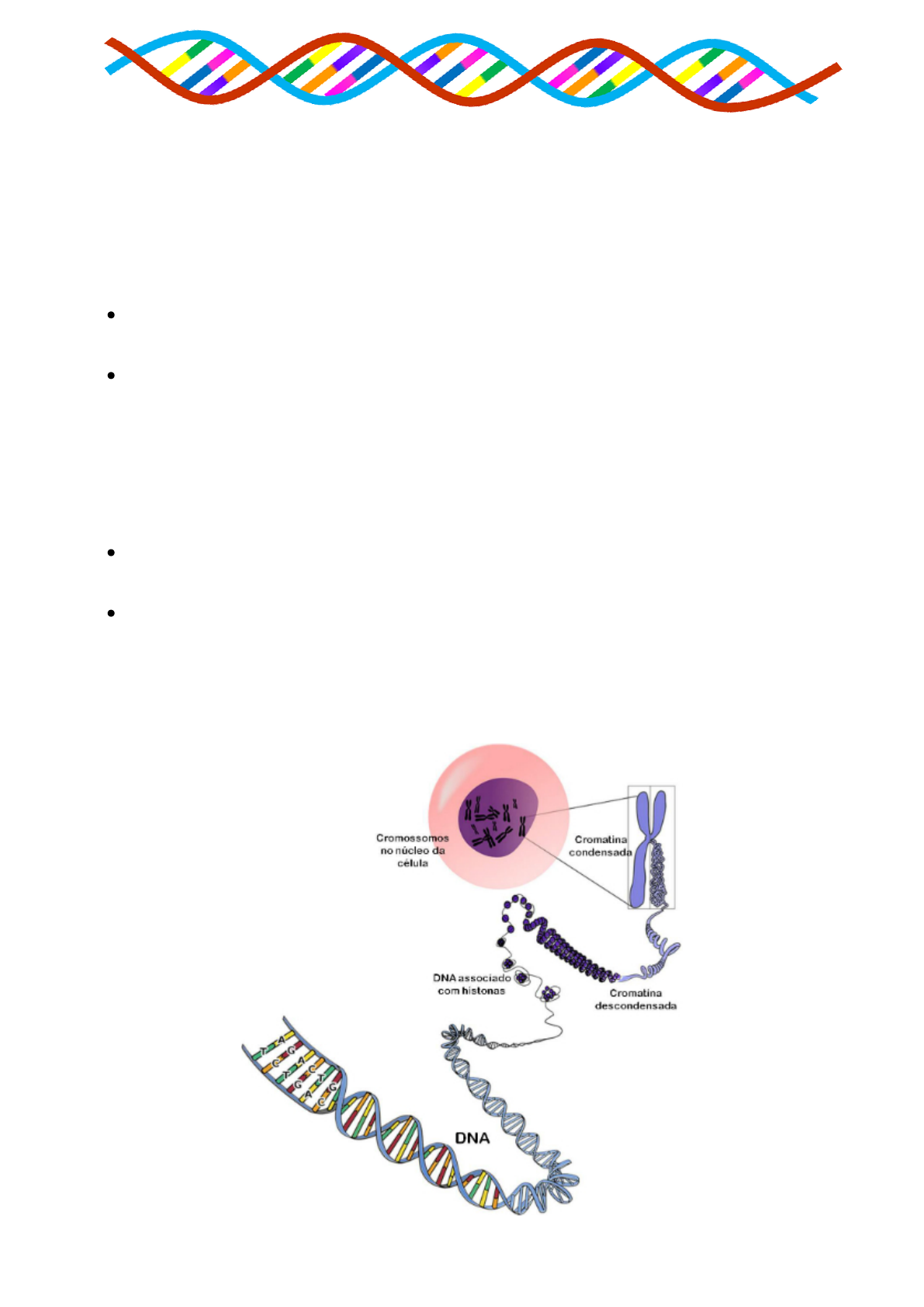 Os Cromossomos Introdução: A cromatina é formada por moléculas de DNA associadas com proteínas de duas classes, as histonas e cromossômicas não-histonas. A cromatina pode se apresentar sob a forma de eucromatina ou heterocromatina: Eucromatina: Consiste em DNA ativo que pode realizar a transcrição. Heterocromatina: Consiste em DNA bastante condensado, inativo que não pode transcrever os genes. Os cromossomos são filamentos de cromatina espiralados, presentes no núcleo de todas as células. 1. 2. Qual é a diferença entre cromossomo e cromatina? A cromatina corresponde a um longo e fino filamento de DNA, encontrado durante a interfase, fase em que a célula não encontra-se em divisão. Cada filamento de cromatina constitui um cromossomo. O cromossomo é a cromatina "enrolada" sobre si mesma, tomando a forma espiralizada e condensada, quando a célula entra em divisão. Portanto, o cromossomo corresponde a cromatina condensada. Para se ter ideia do grau de condensação, o cromossomo é a única estrutura visível durante a divisão celular. As duas estruturas são compostas por DNA, a diferença entre eles é o estado em que se encontram. Um cromossomo pode ser demarcado ao longo de seu comprimento em milhares de regiões chamadas de genes. A função dos cromossomos é controlar as funções das células. Além disso, eles carregam as informações genéticas de um indivíduo, através dos genes. Cromômeros: São engrossamentos bastante irregulares com aspecto de granulações, presentes em toda a extensão da cromatina; Cromatídeos: São o resultado da divisão longitudinal do cromossomo durante a divisão celular; Centrômero: Constrição primária que divide o cromossomo em 2 braços e influencia o movimento durante a divisão celular. Satélite: Parte terminal de material cromossômico separado do cromossomo por uma constrição secundária; Zona SAT: Porção do cromossomo relacionada com a formação do nucléolo durante a telófase; Telômeros: Extremidades finais dos cromossomos que o protegem da degradação. As partes do cromossomo são: Em geral há um único centrômero por cromossomo, embora haja organismos dicêntricos ou policêntricos; A associação entre DNA e as proteínas histonas é outro aspecto importante na estrutura dos cromossomos. Eles formam um complexo, uma vez que as histonas são carregadas positivamente e os grupos fosfatados do DNA têm cargas negativas. Existem 5 diferentes tipos de histonas (H1, 2 H2A, 2 H2B e 2 H3), que são distinguidas em função da proporção lisina/arginina. As histonas aumentam o diâmetro do DNA e alteram também as suas propriedades físicas. Por exemplo, a temperatura de fusão, na qual os fios de DNA mudam da forma de dupla hélice regular para a forma de fio simples, é bastante aumentada devido às histonas. Estrutura dos cromossomos O cromossomo apresenta uma unidade estrutural filamentosa de DNA em forma de espiral, sendo envolvido por uma substância proteica denominada matriz. Partes do cromossomo Na metáfase e anáfase da divisão celular, os filamentos dos cromossomos estão mais compactos e condensados, sendo mais fácil o seu estudo. DNA e Histonas Metacêntrico: Centrômero em posição mediana. Os dois braços possuem o mesmo tamanho. Acrocêntrico: Centrômero próximo de um dos extremos do cromossomo. Um dos braços fica grande e o outro menor. Telocêntrico: Centrômero em uma das extremidades. O cromossomo apresenta um único braço. Submetacêntrico: Centrômero pouco deslocado da região mediana. Os braços ficam em tamanhos desiguais. A classificação dos cromossomos ocorre conforme a posição dos centrômeros. Denomina-se cariótipo o conjunto de cromossomos de uma espécie. Dessa forma, o cariótipo humano possui 23 pares de cromossomos. Em organismos diploides, as células somáticas apresentam 2n cromossomos, porque 23 cromossomos tiveram origem materna e os outros 23 de origem paterna. Assim, totaliza-se 46 cromossomos recebidos. Destes, 44 são cromossomos autossomos, encontrados em todas as células somáticas. Enquanto, 2 deles são cromossomos sexuais, sendo "X" o cromossomo feminino e "Y" o cromossomo masculino. Entenda como ocorre a Herança ligada ao sexo. As mulheres apresentam os pares "XX" e os homens "XY". Tipos de Cromossomos Cromossomos Humanos Qualquer tipo de alteração no número e estrutura dos cromossomos, origina a mutação. Um exemplo de mutação é a Síndrome de Down, causada pela presença de um cromossomo extra no par 21, daí ser também conhecida como Trissomia 21. Cromossomos Humanos Cromossomos Homólogos Os cromossomos homólogos possuem o mesmo tamanho e mantêm a mesma posição relativa dos centrômeros. Os cromossomos homólogos estão relacionados com os Genes Alelos. Esses genes ocupam o mesmo lócus gênico em cromossomos homólogos e estão envolvidos na determinação de um mesmo caráter. Números de Cromossomos Humanos: 46 Cavalo: 66 Gambá: 22 Pepino: 14 Mamão: 18 Aveia: 42 Cão: 78 Batata: 48 Saiba o número de cromossomos existentes em algumas espécies. Note que o número de cromossomos não tem nenhuma relação com a complexidade do indivíduo.