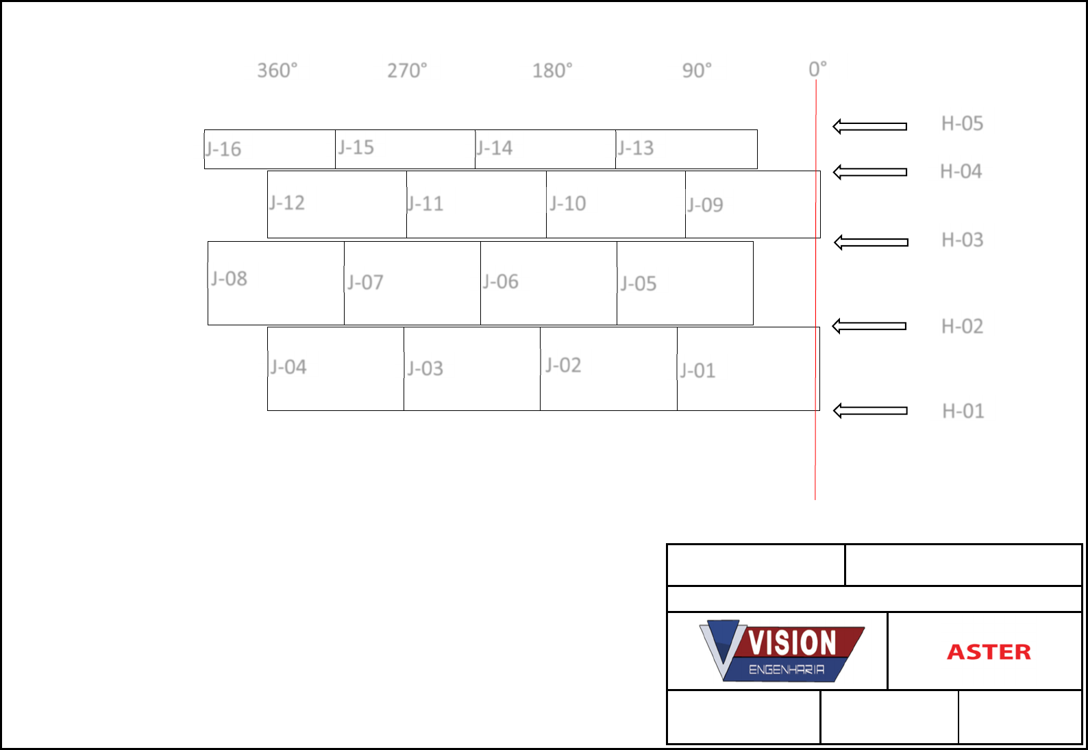 MAPA DE JUNTAS VIS-MAP-003 – R0 COSTADO TANQUE-04 ASTER PETRÓLEO LTDA - AMPLIAÇÃO ELABORADO POR: JOSINALDO C. SANTOS VERIFICADO POR: ALAN CÂNDIDO APROVADO POR: ALAN CÂNDIDO H-01 H-03 H-02 H-05 H-04 0° 270° 180° 90° 360° J-16 J-15 J-14 J-10 J-09 J-12 J-11 J-07 J-06 J-05 J-08 J-01J-02 J-03 J-04 J-13