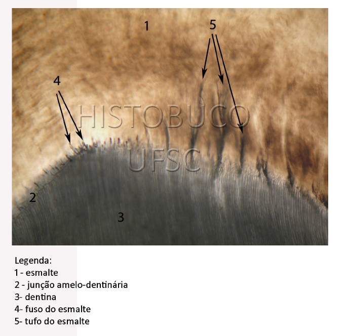 Estruturas Histologicas do Esmalte Nome: Maria Eduarda Gomes Campos Profº: Filipe Mendes Bandas de Hunter-Schreger: são camadas de prismas com alternância regular de direções. Elas resistem a 400°c e podem ser usadas para identificação humana (assim como a digital, são únicos para cada pessoa). Esmalte Nodoso: é a região do esmalte com aspecto ondulado e escuro, na região dos vértice das cúspides, que reflete um caminho sinuoso devido ao entrecruzamento de prismas. Estrias de Retzius: são linhas incrementais que refletem a alternância dos períodos de formação e repouso da amelogênese, durante os quais hã uma mudança na direção dos ameloblastos enquanto estes formam os prismas. Lamela: também são aras hipomineralizadas em forma de fita, porém mais cumpridas, frequentemente alcançando a superfície externa do dente, partindo da junção amelodentinária. Periquimáceas: pequenas cavidades lineares na superfície do esmalte ocasionadas pelas Estrias de Retzius. Tufos: são curtas e finas fitas onduladas que se originam na junção amelodentinária. Representam regiões de prismas hipomineralizados por aprisionamento de matriz orgânica na fase de maturação. Fusos: extensão dos túbulos dentinários no esmalte decorrente da penetração dos prolongamentos odontoblásticos entre os pré-ameloblastos após a degradação da lâmina basal, no inicio da dentinogênese, Quando os ameloblastos secretam matrriz orgânica do esmalte, ocorre a mineralização em orno destes prolongamentos formando os fusos que são mais visíveis na região do vértice das cúspides, com orientação perpendicular á junção amelodentinária. também são áreas hipomineralizadas em forma de fita, porém mais longas, frequentemente alcançando a superfície externa do dente, partindo da junção amelodentinária cúspides, que reflete um trajeto sinuoso devido ao entrecruzamento de primas. região de esmalte com aspecto ondulado e escuro, na região do vértice das cúspides, que reflete um trajeto sinuoso devido ao entrecruzamento de primas. região de esmalte com aspecto ondulado e escuro, na região do vértice das cúspides, que reflete um trajeto sinuoso devido ao entrecruzamento de primas