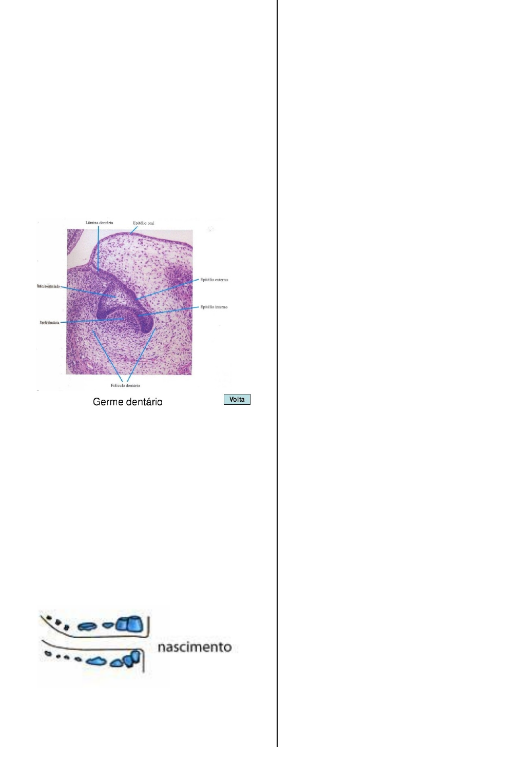 Oclusão Decídua AULA 02 – 31/08/2020 Graziella Oliveira Pontes Proibido a reprodução do conteúdo desta página em qualquer meio de comunicação, eletrônico ou impresso, sem autorização CONCEITOS Difiodontes: aquele que possui duas dentições ao longo da vida (decídua e permanente). Dentadura Mista: quando há a presença das duas dentições. PERÍODO PRÉ-NATAL · Os dentes começam a se desenvolver a partir da 6º semana de vida intra-uterina; · Odontogênese: processo que compreende o desenvolvimento dos dentes. PERÍODO PÓS-NATAL – PRÉ DENTÁRIO Intervalo entre o nascimento do bebê e o surgimento dos primeiros dentes. · O bebê nasce sem dentes, apresenta apenas uma mucosa rosada e bem aderida; · Há a presença de alguns abaulamentos na mucosa – roletes gengivais; · Os germes dentários se desenvolvem até os 6 a 8 meses de vida. · A criança nasce sem oclusão. Arco superior Apresenta maior projeção vestibular sob o arco inferior, dando o aspecto de retração mandibular em decorrência da hipofunção do desenvolvimento da mandíbula. · Formato de ferradura, arredondada ou semi-elíptica · Abóboda palatina profunda; · Na fusão das abóbodas encontra-se a sutura palatina mediana; · Estende-se mais vestibular e lateral ao arco inferior; · A maxila é mais projetada que a mandíbula. Arco inferior · Formato em U · Porção anterior inclinada para a vestibular; · Sincondrose sinfisiana se fecha até os 6 meses; · A mandíbula é mais distal +-5 a 6 mm, mas desenvolve-se até aos 21 meses; Como não existem dentes nos primeiros meses de vida, as articulações e músculos controlam TOTALMENTE os movimentos mandibulares. · Movimentos de lateralidade são de pequena intensidade. Espaço mesial anterior Corresponde ao espaço entre o arco superior e inferior, em decorrência do não encostamento dos rebordos alveolares (abóbodas). DENTES DECÍDUOS · Nascem entre 4 e 6 meses de vida; · Mantém o espaço no arco para os dentes permanentes; · Estimulam o desenvolvimento em altura da mandíbula e maxila; · Participam do desenvolvimento da fonação: T, F, V, S, Z. CRONOLOGIA DE IRRUPÇÃO 1º RELAÇÃO OCLUSAL Ocorre quando os primeiros molares decíduos se erupcionam. · A força aplicada na mastigação é informada ao cérebro e assim fortalece os músculos da mastigação. 1 º LEVANTE DE MORDIDA Após a erupção dos primeiros molares onde a criança conseguirá mastigar alimentos mais duros e firmes. 2º LEVANTE DE MORDIDA Após a erupção dos 2º molares, ocasionando estabilidade da oclusão, do plano terminal e da dimensão vertical. Dá orientação para a erupção dos primeiros molares permanentes. CARACTERÍSTICAS DA DENTIÇÃO DECÍDUA · 10 dentes em cada arcada – Incisivos centrais, laterais, caninos, primeiros molares e segundo molares; · Não possui pré-molares; · Primeiro levante de mordida: após a erupção dos primeiros molares; · Completa-se por volta dos 24 a 30 meses (2 anos e 6 meses); · A ATM é bem próxima do plano oclusal, pois o ramo mandibular ainda não se desenvolveu totalmente, sendo este desenvolvimento regido pelo côndilo. Inclinação Axial Refere-se ao grau de inclinação dentária, não existente nos decíduos. · São implantados verticalmente e ficam paralelos na raiz; · Formam um ângulo de 90° com o plano oclusal. Curva de Spee – Não possui na decídua: · É uma linha projetada no sentido ântero-posterior sobre os dentes superiores e inferiores; · Não existe na dentição decídua porque os dentes estão retos, sem curvatura. CARACTERÍSTICAS ESPECÍFICAS DOS DENTES DECÍDUOS Canino: · Estabelecimento inicial da guia canino; · Movimento de lateralidade orientado; Primeiro molar decíduo: · Primeiro senso de oclusão; · Primeiro levante de mordida/ aumento da dimensão vertical (altura da face); · Diminuição da sobremordida; · Movimento de lateralidade: lado de trabalho x lado de balanceio; · Início dos movimentos mastigatórios; · Mudança na deglutição; Segundo molar decíduo: · Estabelecimento inicial da guia canino; · Movimento de lateralidade orientado; · Chave de molar; CLASSIFICAÇÃO DE BAUME Considera a presença ou não de diastemas (Espaços interdentais) na região ântero superior e inferior. TIPO I: Arcos com espaços interdentais na região anterior, possui diastemas. · Sendo favorável a um bom posicionamento futuro dos dentes permanentes). TIPO II: Arcos sem espaços interdentais na região anterior, não possui diastemas · Possui maior tendência a apinhamento na dentição permanente. ESPAÇOS PRIMATAS São diastemas que chamam a atenção na dentição decídua, aparece após a erupção do caninos e estabelecimento dos guias caninos. RELAÇÃO DISTAL A chave de oclusão na dentição decídua pode ter: · Um plano terminal reto; · Um degrau distal na mandíbula; · Um degrau mesial na mandibula. Quando há um degrau distal na mandíbula: se o maxilar tiver o crescimento mais rápido que o mandibular, poderá a maxila ir mais para a frente; Quando há um degrau mesial na mandíbula: se o mandibular obter crescimento mais rápido que a maxila, poderá a mandíbula ir mais para a frente; Plano terminal reto: mais prevalente e mais favorável. Ponto de referência: · Os pontos mais distais dos segundos molares decíduos superiores e inferiores. ESTÁGIOS DE NOLLA – Dentes permanentes Objetivo: avaliar o estágio de desenvolvimento dos dentes permanentes em radiografias. · A medida de maturação é baseada no estágio médio de calcificação. São dez estágios propostos por Nolla: 0: ausência de cripta 1: cripta formada 2: mineralização inicial 3: 1/3 de coroa formada 4: 2/3 de mineralização da coroa 5: coroa quase completa 6: coroa totalmente mineralizada 7: 1/3 de raiz formada 8: 2/3 de raiz formada 9: raiz quase formada, ápice aberto 10: raiz formada e ápice fechado Erupção dentária: tem inicio no estágio 6. TÉRMINO DA DENTIÇÃO DEC