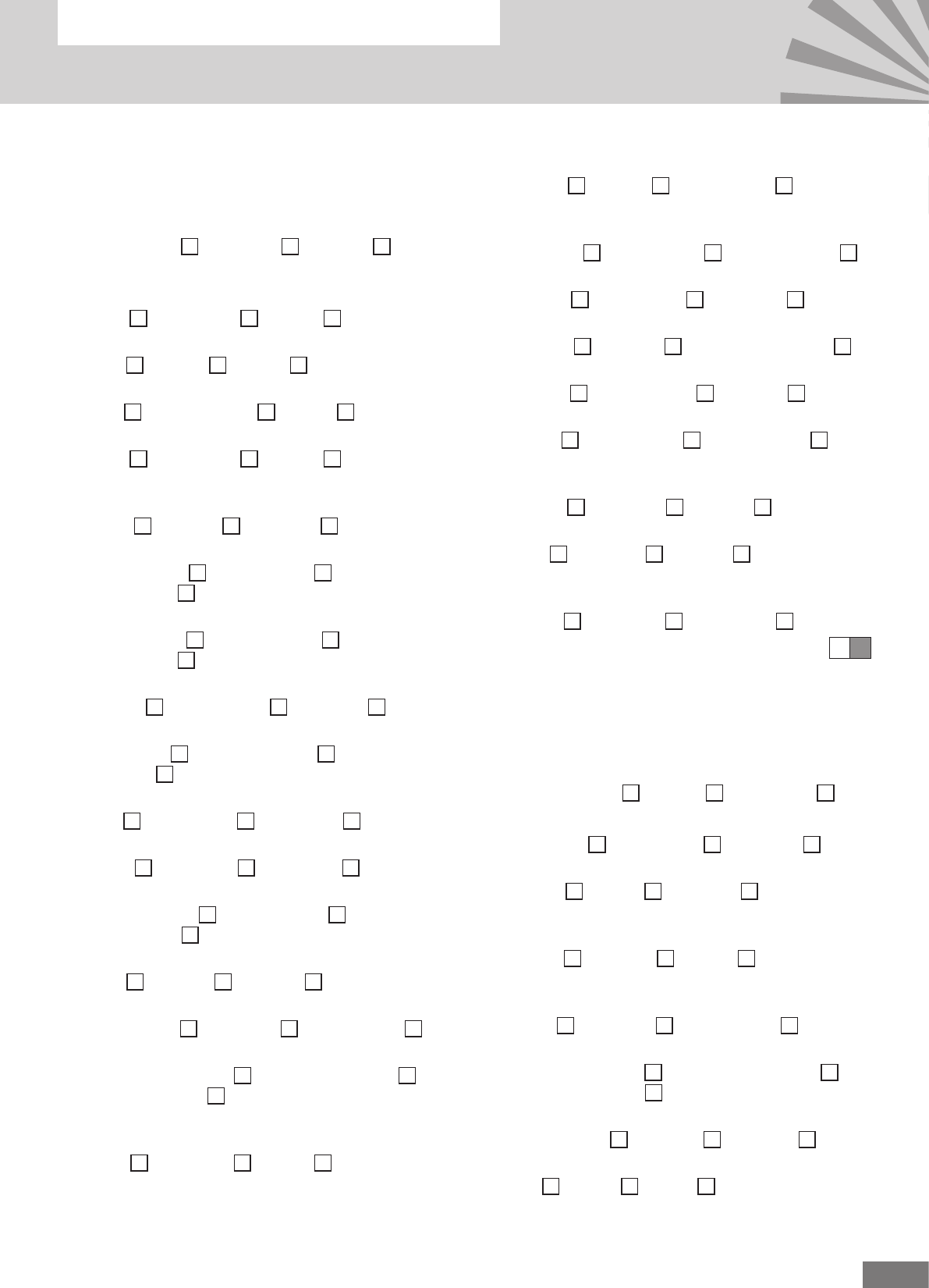 1English File Intermediate Photocopiable © Oxford University Press 2013 NAME CLASS Entry Test ENGLISH FILE Intermediate 17 He ________ invite them to dinner if he didn’t want them to come. A won’t ■ B not ■ C wouldn’t ■ 18 Let’s order a pizza. We don’t have ________ to cook for dinner. A nothing ■ B anything ■ C something ■ 19 I need some advice. What ________ do? A I must ■ B should I ■ C could ■ 20 That case is too heavy for you. I ________ you. A ’ll help ■ B help ■ C ’m going to help ■ 21 I think this is the ________ song on my MP3 player. A better ■ B most best ■ C best ■ 22 This castle ________ in 1600. A built ■ B was built ■ C was build ■ 23 I don’t have ________ money left, because I bought a new jacket. A much ■ B many ■ C lots ■ 24 We’ve lived in the same house ________ 20 years. A for ■ B since ■ C ago ■ 25 If I can borrow Tim’s car, I ________ come and see you tonight. A must ■ B might ■ C have to ■ 25 VOCABULARY Tick (✓) A, B, or C to complete the sentences. Example: My sister is really ________. She always gets top marks. A clever ■✓ B shy ■ C unkind ■ 1 The train was so ________. We couldn’t move. A crowded ■ B modern ■ C noisy ■ 2 I’m going to ________ a cake for Mark’s birthday. A make ■ B do ■ C cook ■ 3 My new iPad doesn’t work. I think I’ll take it ________ to the shop. A away ■ B back ■ C on ■ 4 Tony’s so ________. He pays for everything when we go out. A lazy ■ B mean ■ C generous ■ 5 I have ________ and blue eyes. A long straight hair ■ B straight long hair ■ C hair straight long ■ 6 ________ have yellow and black stripes on their bodies. A Mosquitoes ■ B Bees ■ C Flies ■ 7 The meeting is ________ 16 June at 2.00 p.m. A at ■ B on ■ C in ■ GRAMMAR Tick (✓) A, B, or C to complete the sentences. Example: They ________ from New York. They’re from Seattle. A not ■ B aren’t ■✓ C isn’t ■ 1 Hello! Come in. I’ve ________ made some coffee. Would you like some? A just ■ B already ■ C yet ■ 2 What ________ you do last weekend? A are ■ B did ■ C do ■ 3 I ________ in the park when it started raining. A sat ■ B was sitting ■ C sit ■ 4 ‘Have you finished that report?’ ‘No, not ________.’ A just ■ B already ■ C yet ■ 5 ‘________ you been to the museum before?’ ‘No, this is the first time.’ A Had ■ B Has ■ C Have ■ 6 I ________ the swimming pool on Monday evenings. A go usually to ■ B always go ■ C often go to ■ 7 She couldn’t remember where she ________ her car. A was parking ■ B had parked ■ C has parked ■ 8 I put ________ sugar in my coffee. A a little ■ B too many ■ C a few ■ 9 We ________ work tomorrow. A haven’t to ■ B don’t have to ■ C must to ■ 10 ‘I don’t want to go the party.’ ‘________ do I.’ A So ■ B Neither ■ C Either ■ 11 A key is a thing ________ you use to open doors. A who ■ B where ■ C which ■ 12 ________ to the football match on Saturday? A Are you going ■ B Do you go ■ C Will you be ■ 13 He ________ me not to tell anyone. A say ■ B told ■ C said ■ 14 ________ in the sea makes you really strong. A Swimming ■ B Swim ■ C Swiming ■ 15 It’s snowing. ________. A Putting your hat on ■ B Your hat put on ■ C Put your hat on ■ 16 What ________ you do if she doesn’t reply to your email? A will ■ B would ■ C do ■ 2English File Intermediate Photocopiable © Oxford University Press 2013 NAME CLASS Entry Test ENGLISH FILE Intermediate 8 It’s really sunny. Let’s ________ for a walk. A get ■ B go ■ C have ■ 9 I ________ a lot more money in my new job. A had ■ B win ■ C earn ■ 10 Can you turn ________ the radio? I want to listen to the weather forecast. A off ■ B on ■ C down ■ 11 My brother’s really frightened ________ spiders. A to ■ B about ■ C of ■ 12 Westminster Bridge goes ________ the River Thames. A over ■ B under ■ C through ■ 13 It’s ________ to run when the floor is wet. A safe ■ B dangerous ■ C clean ■ 14 Don’t be so ________! You’ll have to wait. A impatient ■ B untidy ■ C mean ■ 15 This street is ________ at night – you can’t hear any traffic. A safe ■ B quiet ■ C clean ■ 16 Did you ________ sightseeing in Madrid? A do ■ B make ■ C go ■ 17 I’m sorry I’m late. I ________ the bus. A missed ■ B left ■ C lost ■ 18 A ________ has a very long neck. A bear ■ B giraffe ■ B kangaroo ■ 19 She won’t be very happy if she ________ her driving test again. A misses ■ B passes ■ C fails ■ 20 I look ________ my mother. We have the same eyes and nose. A as ■ B to ■ C like ■ 21 He ________ me if I could tell him the way. A said ■ B told ■ C asked ■ 22 I’ve bought a new ________ for the athletics competition. A trainers ■ B tracksuit ■ C boots ■ 23 He fell ________ the steps and broke his leg. A along ■ B into ■ C down ■ 24 Andy asked me if I could ________ him some money. A lend ■ B borrow ■ C take ■ 25 Say ‘thank you’. You have to be more ______. A rude ■ B polite ■ B noisy ■ 25 Grammar and Vocabulary total 50
