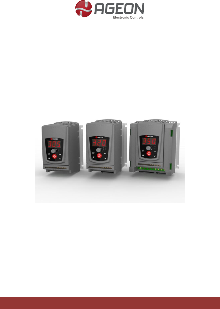Inversor de Frequência Série YF Standard Manual de Instruções Software: vx.x.14 Rev. 2 AGEON Electronic Controls +55 [48] 3028-8878 |www.ageon.com.br | ageon@ageon.com.br 2 3 ATENÇÃO - Utilize terminais adequados para conectar os fios/cabos do inversor, isto deixa a conexão mais firme e evita com que haja pedaços de condutores na placa, que poderiam ocasionar curtos-circuitos. - Cuidado para não conectar a rede elétrica nos bornes de conexão do motor, pois irá ocasionar a queima do inversor. - A conexão do inversor com o motor deve ser direta, ou seja, não utilize contator. - Caso o relé auxiliar seja utilizado para acionar uma carga indutiva, utilize supressor de ruído em paralelo com os terminais da carga (o mais próximo possível). - Recomenda-se a utilização de dispositivos de proteção para ligar o motor e o inversor. - Recomenda-se a instalação do inversor em um ambiente ventilado para esfriar o dissipador. - Cada periférico possui seu terminal de conexão, não efetue emendas de dois cabos no mesmo conector, pois isto poderá ocasionar um curto-circuito. - Jamais faça qualquer tipo de alteração no produto. O descumprimento das recomendações acima e no guia de instalação do inversor poderá gerar riscos ao usuário e/ou perda de garantia do produto. Em caso de dúvidas na instalação ou configuração do produto, contate o departamento de aplicação. (48) 3028-8878 – suporte@ageon.com.br mailto:suporte@ageon.com.br SUMÁRIO 1. REFERÊNCIA RÁPIDA ...................................................................................................... 5 1.1 Parâmetros............................................................................................................... 5 2. SIMBOLOGIA .................................................................................................................. 7 3. VISÃO GERAL DO INVERSOR ........................................................................................... 7 4. RECOMENDAÇÕES PRELIMINARES ................................................................................. 8 5. FIXAÇÃO ........................................................................................................................ 8 6. CONEXÕES ELÉTRICAS .................................................................................................... 9 6.1 Ligação elétrica modelo monofásico ......................................................................... 9 6.2 Ligação elétrica modelo trifásico ............................................................................. 10 7. INTERFACE HOMEM-MÁQUINA (IHM) .......................................................................... 11 7.1 Sinalizações ............................................................................................................ 12 7.2 Mensagens de erro ................................................................................................. 12 7.3 Outras mensagens .................................................................................................. 12 7.4 IHM destacável ....................................................................................................... 12 8. ACIONAMENTO ATRAVÉS DA IHM ................................................................................ 13 9. ACIONAMENTO ATRAVÉS DOS BORNES DE CONTROLE ................................................. 14 10. ENERGIZADO O INVERSOR ........................................................................................... 19 11. FUNÇÕES PARA ATIVAR A SAÍDA DO RELÉ AUXILIAR ..................................................... 20 11.1 Funções de frequência ............................................................................................ 20 11.2 Função corrente ..................................................................................................... 20 11.3 Modo RUN ............................................................................................................. 20 11.4 Rampa de desaceleração ........................................................................................ 20 11.5 Condição de erro .................................................................................................... 20 12. DESCRIÇÃO DOS PARÂMETROS .................................................................................... 20 13. DESCRIÇÃO DOS ERROS ................................................................................................ 23 14. CARACTERÍSTICAS TÉCNICAS ........................................................................................ 24 15. DIMENSÕES ................................................................................................................. 25 16. TERMOS DE GARANTIA ................................................................................................ 26 5 1. REFERÊNCIA RÁPIDA 1.1 Parâmetros Tabela 1.1 - Lista de parâmetros FUNÇÃO FAIXA DE VALORES V.F. P01 Frequência de saída (motor) (0 a 300) Hz - P02 Tensão circuito intermediário (link CC) (0 a 410) V - P03 Corrente de saída (motor) (0 a iMáx) A - P04 Tensão de saída (motor) (0 a 410) V - P05 Temperatura nos IGBT´s ** (0 a TMÁX) °C - P06 Último erro ocorrido E02 a E11 - P07 Código de acesso (Use P07 = 28 para bloquear/desbloquear) 0 a 999 0 P10 Tipo de parada 0 = rampa de desaceleração 1 = parada livre 0 P11* Tempo de aceleração (0.1 a 245) segundos 5 P12* Tempo de desaceleração (0.1 a 245) segundos 10 P13* Tempo 2ª rampa de aceleração (0.1 a 245) segundos 5 P14* Tempo 2ª rampa de desaceleração (0.1 a 245) segundos 10 P15* Função auxiliar (Tecla “A” ou entrada digital “D2”) 0 = Inversão do sentido de giro 1 = Alternar entre 1ª e 2ª rampa 2 = Avanço 1ª rampa e retorno 2ª rampa 0 P21 Backup da referência digital 0 = Não 1 = Sim 2 = Definido pelo valor de P22 1 P22 Valor inicial para referência digit