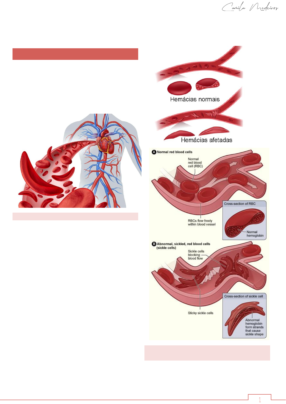 O dia 27 de outubro é marcado como o Dia Nacional de Luta pelos Direitos das Pessoas com Doenças Falciformes. No brasil, a cada ano nascem aproximadamente 3,5 mil crianças com doença falciforme, sendo uma das doenças hereditárias mais comum no país e que apresenta, já nos primeiros anos de vida, manifestações clínicas importantes. ETIOPATOGENIA É uma doença genética recessiva representada pela substituição de uma única base no códon 6 do gene da beta globina. Caráter qualitativo; Substituição de adenina por uma timina – glutamato (sexto resíduo de aminoácido e é polar na HbA1 GTC no código genético/ na AF no sexto resíduo de aminoácido teremos a valina apolar – hidrocarboneto); As hemácias em foice são mais rígidas e tendem a ficar estagnadas em órgãos em que a circulação é lenta; Há anóxia relativa, facilitando a falcização de novas hemácias. Formação de trombos, que levam a enfarte do tecido adjacente. esse enfarte é seguido de fibrose e até de calcificação. Manifestação de sintomas logo após o nascimento, mas possui uma expectativa de vida relativamente alta (40 a 50 anos). GENÉTICA DA ANEMIA FALCIFORME Ocorre uma substituição das duas bases nitrogenadas na estrutura do DNA responsável pela síntese da hemoglobina. anemia falciforme AULA 11 – HEMATOLOGIA BÁSICA anemia falciforme DNA sem mutação: a sequência de bases é na seguinte ordem Citosina, Timina e Citosina. Transcrição: Guanina, Adenina e Guanina. Indivíduos portadores de anemia falciforme: a Timina presente no segmento de DNA é substituída pela Adenina. Citosina, Adenina e Citosina. Transcrição: Guanina, Uracila e Guanina. Então, a alteração de um único nucleotídeo no DNA gera um códon para um aminoácido diferente que altera toda a estrutura da hemoglobina e, consequentemente, da hemácia. QUADRO CLÍNICO Tromboses são geralmente desencadeadas por infecções, estresse, frio, desidratação e são devidas à falcização de grande número de eritrócitos; Crises dolorosas (musculares, dores abdominais, dores no peito, priapismo); Úlceras das pernas; Crises de hemólise aguda (anemia e icterícia); Crises de aplasia medular: é uma patologia rara da medula óssea em que há diminuição da produção das células sanguíneas, que são normais na sua forma e funcionamento; Crise de insuficiência renal; CAUSAS Aumento da viscosidade sanguínea; Estase venosa; é uma inflamação da pele, geralmente nas pernas, causada quando o sangue venoso não retorna ao coração. Fenômenos vaso-oclusivos; é um episódio de dor muito frequente em pacientes com doença falciforme, sendo a principal causa de atendimento e internação. o primeiro episódio pode ocorrer logo aos 6 meses de idade e recorrer durante toda a vida. DIAGNÓSTICO HEMOGRAMA Anemia grave do tipo normocítica – normocrômica até macrocítica com elevado grau de anisocitose e poiquilocitose. Valores: Hb: 6 a 9g/dL; VCM: varíavel; RDW: elevado, > 19,5% Leucócitos elevados; Plaquetas aumentadas; Esfregaço: drepanócitos, policromasia, eritroblastos e reticulócitos. Anemia falciforme Hipóxia Esplenomegalia Infarto esplênico Infecções TESTE DE FALCIZAÇÃO O diagnóstico diferencial entre as hemoglobinopatias com teste de falcização positivo (síndromes falcêmicas ou falciformes) não é fácil. Baseia-se na morfologia dos eritrócitos circulantes e, principalmente, no estudo eletroforética da hemoglobina. ELETROFORESE DE HEMOGLOBINA A eletroforese de hemoglobina, feita rotineiramente em pH alcalino, mostra a variante HbS, com mobilidade diferente da hemoglobina A. Outras hemoglobinas anormais podem ter migração eletroforética semelhante à da HbS, sendo necessária a realização do teste em condições técnicas diferentes, para se obter a diferenciação.