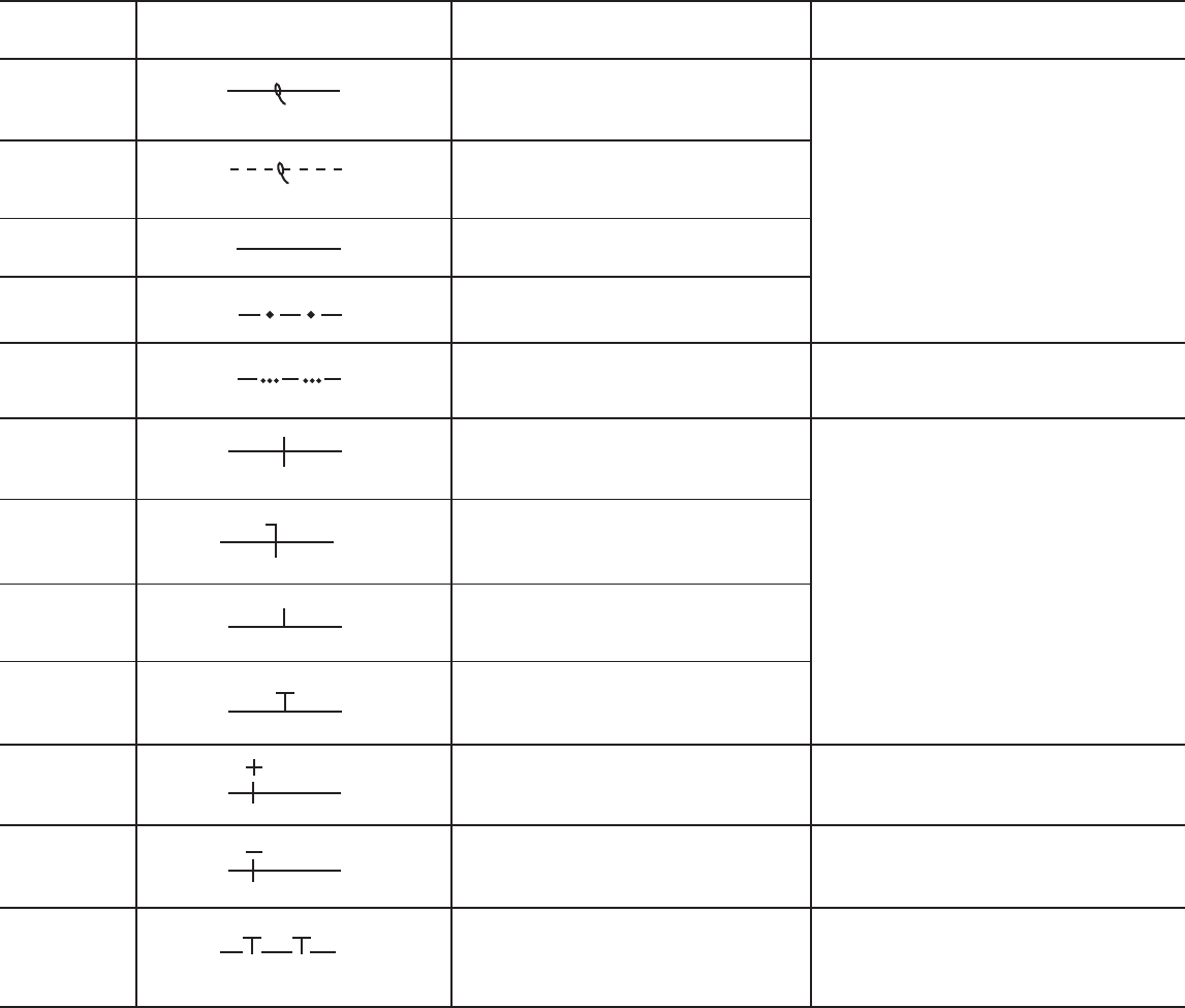 Tabela 2 - Dutos e distribuição Nº Símbolo 5.1 Eletroduto embutido no teto ou paredeØ 25 Ø 25 Eletroduto embutido no piso Telefone no teto Telefone no piso Tubulação para campainha, som, anunciador ou outro sistema Indicador na legenda o sistema passante Para todas as dimensões em mm indicar a seção, se esta não for de 15 mm Cada traço representa um condutor. Indicar a seção, nº de condutores, nº do circuito e a seção dos condutores, exceto se forem de 1,5 mm2 Condutor de fase no interior do eletroduto Condutor neutro no interior do eletroduto Condutor de retorno no interior do eletroduto Condutor terra no interior do eletroduto Condutor positivo no interior do eletroduto Condutor negativo no interior do eletroduto Indicar a seção utilizada; em 50• significa 50 mm2 /continua Cordoalha de terra 5.2 5.3 5.4 5.5 5.6 5.7 5.8 5.9 5.10 5.11 5.12 Significado Observações 50 • /continuação Nº Símbolo Significado Observações 5.13 5.14 5.15 5.16 5.17 5.18 5.19 5.20 5.21 5.22 5.21.1 5.21.2 Leito de cabos com um circuito passante composto de: três fases, cada um por dois cabos de 25 mm2 mais dois cabos de neutro de seção 10 mm2 Caixa de passagem no piso Dimensões em mm Dimensões em mm Indicar a altura e se necessário fazer detalhe (dimensões em mm) No desenho aparecem quatro sistemas que são habitualmente: I - Luz e força II - Telefone (TELEBRÁS) III - Telefone (P(A)BX, KS, ramais) IV - Especiais (COMUNICAÇÕES) 25 • significa 25 mm 2 Caixa de passagem no teto Caixa de passagem na parede Eletroduto que sobe Cx. pass (200 x 200 x 100) Cx. pass (200 x 200 x 100) Cx. pass (200 x 200 x 100) 3(2 x 25•) + 2 x 10• Eletroduto que desce Eletroduto que passa descendo Eletroduto que passa subindo Sistema de calha de piso Condutor seção 1,0 mm2, fase para campainha Condutor seção 1,0 mm2, neutro para campainha Condutor seção 1,0 mm2, retorno para campainha Se for de seção maior, indicá-la 10 • significa 10 mm 2 P P P Caixas de pass. Tomadas I, II, III, IV Tabela 3 - Quadros de distribuição Nº Símbolo Significado Observações 6.1 6.2 6.3 6.4 6.5 6.6 Indicar as cargas de luz em watts e de força em W ou kW Quadro parcial de luz e força aparente Quadro parcial de luz e força embutido Quadro geral de luz e força aparente Quadro geral de luz e força embutido Caixa de telefones Caixa para medidorMED Tabela 4 - Interruptores Nº Símbolo a a b Significado Observações 7.1 7.2 7.3 7.4 7.5 7.6 7.7 7.8 7.9 7.10 7.11 7.12 7.13 7.14 7.15 7.16 A letra minúscula indica o ponto comandado Interruptor de uma seção Interruptor de duas seções Interruptor de três seções Interruptor paralelo ou Three-Way Botão de minutaria Botão de campainha na parede (ou comando à distância) Botão de campainha no piso (ou comando à distância) Chave seccionadora com fusíveis, abertura sem carga Chave seccionadora com fusíveis, abertura em carga Chave seccionadora abertura sem carga Chave seccionadora abertura em carga Disjuntor a óleo Disjuntor a seco Chave reversora Fusível Interruptor intermediário ou Four-Way As letras minúsculas indicam os pontos comandados As letras minúsculas indicam os pontos comandados A letra minúscula indica o ponto comandado A letra minúscula indica o ponto comandado Indicar a tensão, correntes nominais Ex.: chave tripolar Indicar a tensão, correntes nominais Ex.: chave bipolar Indicar a tensão, correntes nominais Ex.: chave monopolar Indicar a tensão, correntes nominais Indicar a tensão, correntes nominais Indicar a tensão, correntes potência, capacidade nominal de interrupção e polaridade Indicar a tensão, correntes potência, capacidade nominal de interrupção e polaridade através de traços Nota: Os símbolos de 7.1 a 7.8 são para plantas e 7.9 a 7.16 para diagramas a b c a a M Tabela 5 - Luminárias, refletores, lâmpadas Nº Símbolo Significado Observações 8.1 8.2 8.3 8.4 8.5 8.6 8.7 8.8 8.9 8.10 8.11 8.12 8.13 8.14 8.15 8.16 8.17 A letra minúscula indica o ponto de comando e o número entre dois traços o circuito correspondente Ponto de luz incandescente no teto. Indicar o nº de lâmpadas e a potência em watts Ponto de luz incandescente na parede (arandela) Ponto de luz incandescente no teto (embutido) A letra minúscula indica o ponto de comando e o número entre dois traços o circuito correspondente Ponto de luz fluorescente no teto (indicar o nº de lâmpadas e na legenda o tipo de partida e reator) Ponto de luz fluorescente na parede Ponto de luz fluorescente no teto (embutido) Ponto de luz incandescente no teto em circuito vigia (emergência) Ponto de luz fluorescente no teto em circuito vigia (emergência) Sinalização de tráfego (rampas, entradas, etc.) Lâmpadas de sinalização Refletor Lâmpada obstáculo MinuteriaM Exaustor Deve-se indicar a altura da arandela Deve-se indicar a altura da luminária Indicar potência, tensão e tipo de lâmpadas Indicar as potência, tipo de lâmpadas Pote com duas luminárias para iluminação externa Ponto de luz de emergência na parede com alimentação independente Motobomba para bombeamento da reserva técnica de água para combate a incêndio Diâmetro igual ao do interruptor a -4- 2x100W a a a -4- -4- -4- 2x60W 2x100W 4x20W a a -4- -4- -4- -4- 4x20W 4x20W Tabela 6 - Tomadas Nº Símbolo Significado Observações 9.1 9.2 9.3 9.4 9.5 9.6 9.7 9.8 9.9 9.10 9.11 9.12 A potência deverá ser indicada ao lado em VA (exceto se for de 100 VA), como também o nº do circuito correspondente e a altura da tomada, se for diferente da normalizada; se a tomada for de força, indicar o nº de W ou kW Tomada de luz na parede, baixo (300 mm do piso acabado) Tomada de luz a meio a altura (1.300 mm do piso acabado) Tomada de luz alta (2.000 mm do piso acabado) Saída para telefone externo na parede (rede Telebrás) Saída para telefone externo na parede a uma altura “h” Saída para telefone interno na parede Saída para telefone externo no piso Saída para telefon