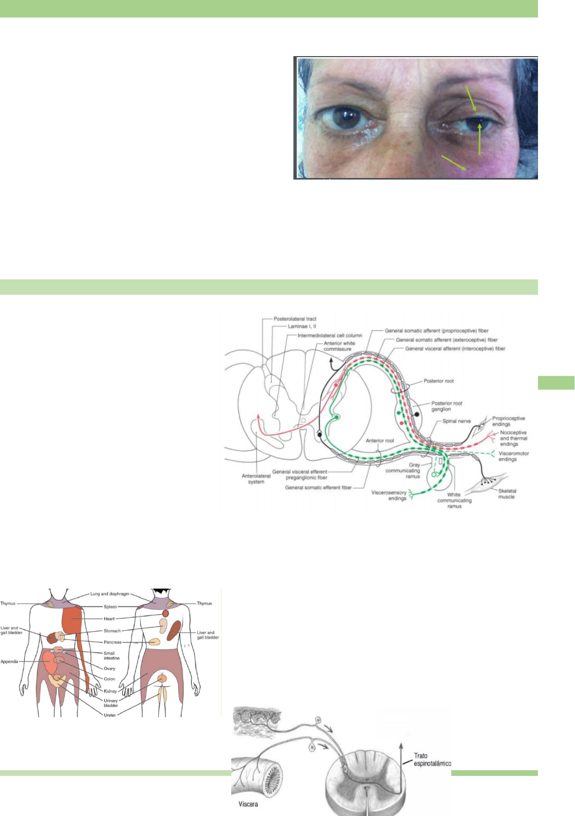 BBPM III – Anatomia – Prof. Dr. André Valério 2 Anatomia do Sistema Nervoso Autônomo Contextualização... Caso clinico: MGS 62 anos, hipertensa, etilista e tabagista inveterada, foi admitida no Hospital Reginal de Juiz de Fora, em novembro de 2015, com quadro de emagrecimento, prostração, disfagia, odinofagia (deglutição com dor) há 4 meses e disfonia (distúrbio da voz) há 2 meses. Ao exame físico foi notado: ptose palpebral à esquerda, miose (diminuição do diâmetro da pupila), anidrose ausência ou diminuição de suor) e rubor malar ipsilateral, fechando diagnóstico de Síndrome de Horner, sem qualquer anormalidade dos movimentos oculares. Realizou-se endoscopia digestiva alta (EDA) com biópsia, que evidenciou tumoração em esôfago proximal com laudo de carcinoma epidermóide invasor bem diferenciado. Sistema nervoso autônomo É subdividido em aferente, que recebe as informações periféricas, e a divisão eferente, que se projeta para viscesas, glândulas e outros com a função efetuadora da função motora. A parte eferente, por sua vez, é subdividido em simpático e parassimpático. Abaixo, a imagem a seguir tem como intuito exemplificar a organização do sistema nervoso autônomo na porção medular: um neurônio aferente pseudo-unipolar tem uma terminação proprioceptiva nas porções periféricas, segue até o gânglio medular posterior e por meio da terminação que vai até a medula. Essa terminação faz sinapse com um neurônio eferente que segue até um gânglio comunicante (tronco simpático), realizando sinapse com o neurônio visceromotor, que de fato executa a ação determinada. Dor referida: geralmente, quando se tem algum tipo de dor em órgãos internos, a dor não se apresenta necessariamente de acordo com a anatomia do corpo. Isso se dá devido ao fato de que as informações da porção aferente do SNA seguem o mesmo caminho aferente que as informações da pele na medula, por isso, as informações acabam ficando difusas quando acendem pelo trato espinotalâmico e chegam ao córtex primário, que não interpreta exatamente o local da dor (info: a região cortical que interpreta as informações viscerais é muito pequeno e não aparece na representação cortical, por exemplo, o córtex da ínsula), por isso, a dor ocorre de modo referido, sem exatidão da fonte de dor. Componente eferente Tem uma quantidade muito maior de estruturas. Relembrando, tem 2 divisões: simpático e parassimpático. Todavia é importente lembrar que todas as víceras recebem inervações de ambas as vias eferentes, a diferença se dá na sobreposição de influência” de cada via, haja visto que trabalham como antagonistas ou cinergistas. Há exceções, por exemplo: as glândulas sudorípera e suprarrenal só tem inveração simpática. Anatomia do simpático, parassimpático e dos plexos viscerais Sistema nervoso simpático 1. Tronco simpático: é uma cadeia de ganglios paravertebrais que possuem corpos neuronais que, por sua vez, fazem sinapses com o neurônio pré ganglionar ( corpo localizado na coluna intermédio-lateral da medula, com o axônio seguindo até o ganglio citado). Esse axõnio faz sinapses com o neurônio ganglioar, com seus axônios seguindo até os órgãos. 2. Ramos comunicantes: unindo o tronco simpático aos nervos espinais existem filetes nervosos de dois tipos: Brancos (mielinizados), ligam a medula ao tronco simpático; são fibras pré-ganglionares e fibras aferentes viscerais; de T1 até L2. Cinzentos (amielinizados), que são fibras pós-ganglionares. 3. Nervos esplâncnicos e gânglios pré-vertebrais: Os ganglios pré-vertebrais são ganglios que ficam localizados próximo a grades vasos9anteriormente a coluna vertebral e posterior a aorta abdominal) // (na imagem estão posterior ao tronco simpático). Esses ganglios recebem neurônios pré-ganglionários, que não fazem sinapse no tronco simpático e que são, portanto, chamados de nervos esplâncnicos. OBS: É importante lembrar que os ganglios pré-vertebrias ficam localizadas apenas na cavidade toráxica e, por isso, fazem as “anastomoses” com os grandes vasos, estes, levando as fibras pós-ganglionar para que chegem então nas suas respectivas inervações dentro da cavidade abdominal.*** Os nervos esplâncnicos são divididos em três grupos: maior, menor e imo. Os nervos esplâncnicos maior e menos se vão até o ganglio celíaco (no tronco celíaco, região de vasos que irrigam o estômago, baço e fígado) e ao ganglios aórticos-renais ( adjacente as arterias renais); já o nervo esplâcnico imo vai em direção ao ganglio mesentérico superior e inferior (ambos possuem relação com as artérias mesen. sup. e inf.) Localização dos neurônios pré-ganglionares e destino das fibras pré-ganglionares + Neurônios pré-ganglionares: coluna lateral da medula espinal (lembrando que apenas de T1-L2) + Fibras pré-ganglionares: ganham o tronco do nervo espinal e seu ramo ventral, dai passam para o tronco simpático pelo ramo comunicante branco. A partir desse ponto, tem-se algumas opções: 1. Ficar no gânglio paravertebral do mesmo nível; 2. Ir para os gânglios paravertebrais em níveis acima ou abaixo por meio dos ramos interganglionários; 3. Ir para os gânglios pré-vertebrais, configurando-se assim, por definição, como nervos esplâncnicos. *usar imagem como flashcard para relembrar conformação* Localização dos neurônios pós-ganglionares e destino das fibras pós-ganglionares + Neurônios pós-ganglionares: na cadeia de gânglios paravertebrais (tronco simpático) e nos gânglios pré vertebrais. Saem fibras (axônios) seguindo o trajeto de: 1. Por intermédio de nervos espinais (ATENÇÃO: as fibras voltam ao nervo, mas por intermédio dos axônios que saem da dos gânglios paravertebrais por meio do ramo cinzento e seguindo o mesmo trajeto que o nervo espinal, citado anteriormente); 2. Um nervo independe: ligando diretamente as fibras ganglio