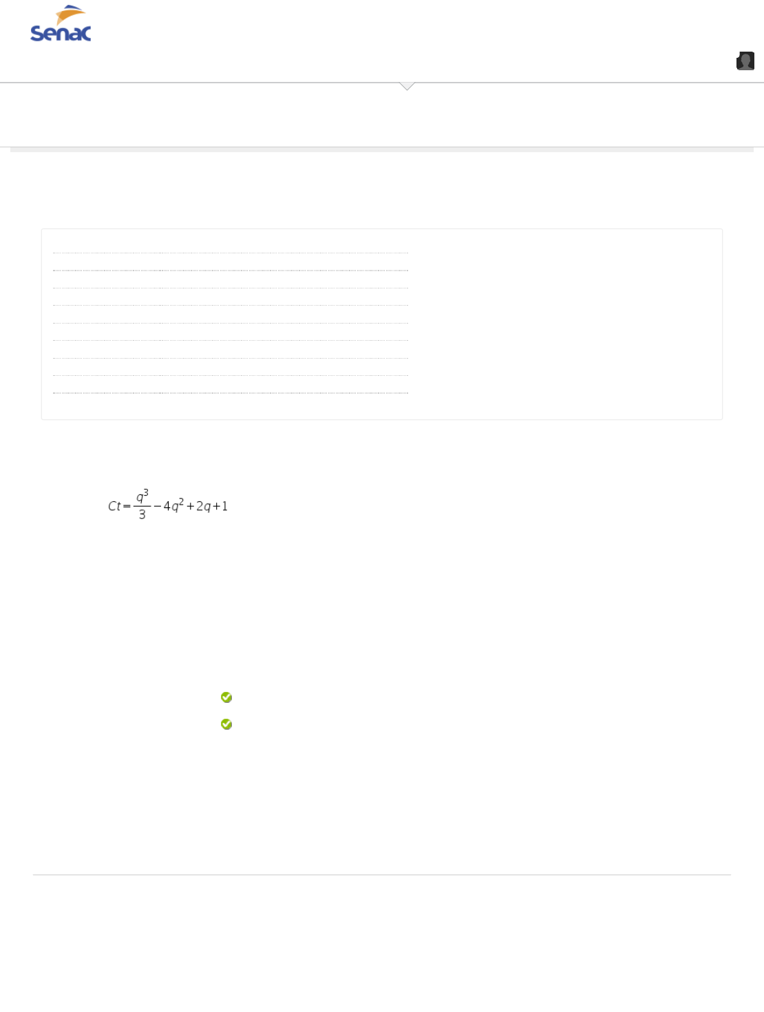 A tendência à variação é: Ct =12q2 – 2q – 20