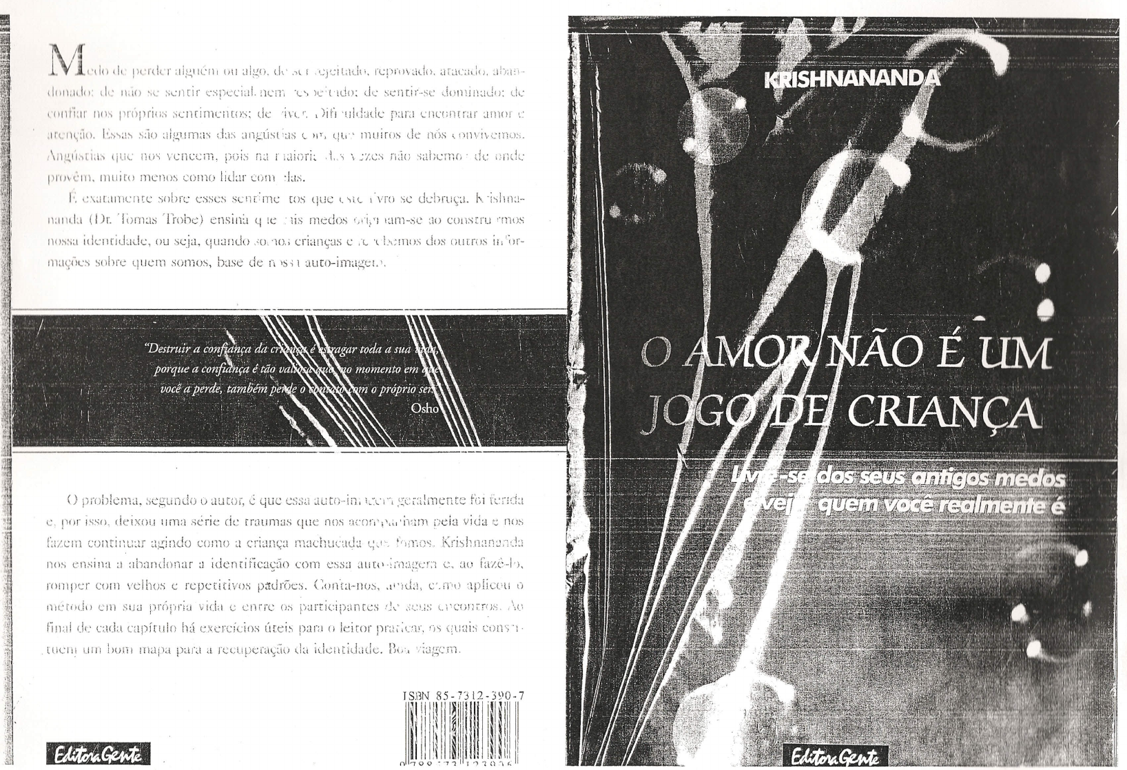 "do d, p,'r,k r :d,t~lll'll, 011 :dgo, ll' "I r "':j';il:ldl" I'Crli'\I\,~ldi>, dr~IGIo:<!,.lh:I',I' <11111:11111:IIt- 11.i,O ~c x..nrir c-;p.,~ci;d, ~ll..·IL 'V" )I,:';('[I.Jo: de' SClicir ..sc JomiI1;IL!'J: t!<: '111111:11 nos l'I'f)IHiw; :-;CIl ri rní,'ino:,; c.1t: '1\.'(1', ,)jfl '!,,,,Lide p.ir.: CIH:(;!Hrar amor ',: ,II( 11~':i(), I',,~~:~~:-,;io ~ligl!rn:,l:)(Li,\ :li1).::ll:iI;:I:>l '1', 'Iv' i11uiros ele niis ,pllvi\,crno:i, \n,l!/1. ri~l:'\que l)(i~ VCIlCCiT!~ P(JiS n~l r i~!i()n~ .1,,") \ ':'/.C:-i n.io ~~(lhl.:!TiO· i.."k: íH1dc Plll\ l'lll, muito 11'1C110:-' ,~f)1I10lidar com lias, I,: : :.ILlIrH,:IHC;)O[)fC esses xcntmc [():; que i, '11" ,\,'\'O se debruça. h. 'isllil:!- Il:III1LI (1)1'. '!;Jrnas Trohe) ensiui, li te 'Iis medos '-,i'i}"1 .urn-se ao conxrru ,",nus 11()~:i:1 irlcntidudc. ou seja, qUJIH..!O ,'(li "10.; criançus c .i, " h:!1'\\l'i dos ()IIUOS 11,'01" 111ali)l',~ suhre quem somos, base de n 'S) I auto-imazcr. " ,I ", 1 ,\ L~: 'I, t .~ ,&~ no,,>en,:iil:l :1 :!ll:HHiDn:H :1 idcnuficaçáo com e:i:iU aU(I,' ';;'Iug,;r;'! c, ~IU í:l'l.t>--h, romper C()1I1 ve lhus e rcpcr itivos pttdr(!t;~, Conla-Il(;s, ,l",cb, C''!"h) aplicou tJ !lI\..' I:í,d" em SU:i prr)i')j'i:1 v Id,l c cn r rc (l;-; purtici I);" n rcs ;!e' ':',:'.,::; 1..\'('1 JI: ;T<JS, ,\(l !'ill:.li (k <.;;l<.b cupirulo há exercícios úteis par:1 (J kiwr pr:ti ;',','F, I) mwi:; Cllt1',-j, ,lIlCIlI tlllI l.orn mapa para a rccuper,l',;:lu di! idcutidude. lii)', "i:igcrll, o AMOR NÃO É UM JOGO DE CRIANÇA Livre-se dos seus antigos medos e veja quem você realmente é KRISHNANAl DA buduçãn: VEIV\ CAPUTO I. , I· Copyright © 1999 by hornus Trobe TItulo original: Steppiag our ofleal' Erlltorn Rosely M. Dose/tini i\HHltllllllluuclilodnl nosúngelcl Barbosa Capa Marcelo Souza Almeida 1'11111111111',\1101' u dlngmrnucão Marcelo Souza Almeida Revisão Maria Alayde Carvalho IlIqllllilNnll1l ucnbnrnenro Poutus Giáficu . 111 I 11 CDD-'152.4G A Osho, meu amado mestre. A Kaveesha, minha mestra e companheira querida. \)11<108 Intnrnacionais de Catalogação na Publicação (CIP) (Câmara Brasileira do Livro. SP. Brasil) f 1IIIIIIIIIIIIIIhl 1111111111'""U ó um jogo de criança: livre-se dos seus antigos medos o veja quem você 1111.111111111111I rltlhllnl1l1ndll (Thornns Trobe); [tradução Vera Caputc]. -- São Paulo: Editora Gente, '11111 11111111111111111111:Stcpping out of fear. IIII~I 1\ 'lJ 12-364-2 I I\l1to ennhoctrncntc T~~r!:1::!. E=Gç5~:~!!:!crianças 3. Espiritualidade 1. '!'-.4edc - 1"" 111MpNltll16jllcou I. Título. Índices para catálogo sistemático: I. Modo: uperação da criança emocional interior: Psicologia 152.46 Todos Os Li ira i tos desta ud i\:iio s50 rosorvados <\ Editora Gente. l<uII Pcdro Soares de Almeida. 114. São Paulo, SI' CEt' 05029-0:JO. Tolofux: (11) 3675-2505 Sitn: hup.z/wwwudttoragente.com.br E-mllil: gontc@cditoragcnte.com.br SUlllário Prefácio Introdução PARTE 1: UMA VlSÃO GERAL Capítulo 1- O estado mental da criança emocional Capítulo 2 - A bolha Capítulo 3 - O espelho PARTE 2: A CRrANçA EMOCrONAL EM AÇÃO Capítulo 4 - Reações e controle Capítulo 5- Expectativas e direitos Capítulo 6 - Concessão Capítulo 7 - Dependência Capítulo 8 - Pensamento mágico PARTE 3: A EXPERIÊNCIA INTERIOR DA CRIANÇA EMOcrONAL Capítulo 9 - Vazio e carência Capítulo 10- Medos Capítulo 11- A infecção Capítulo 12 - Vergonha e culpa Capítulo 13 - O cobrador Capítulo 14 - Choque Capítulo 15 - Abandono e privação 9 11 19 27 35 I I ,I I I I I' I I, I j I i I I I 43 51 61 69 75 81 89 95 103 113 121 129 ~I Hino!"não é lllll jogo ele criança , ,'/1//"/" /t, ::,!locnnl nto , "/'''"/11 I I lIlH(;( nfiança e raiva 139 147 , ,'/I//II/U 1/1 I ,,/I//I//U 11I , "/1//"/11 11 I , '11/1 li li) ' I , ",/I//fI/I):J:J I II/lflll/II ':/ r ,'UI" I"/11 ' 11 I 11111 111/ I) PARTE 4: AUTODOMÍNIO - SAIA DO COMPORTAMENTO AUTOMÁTICO Prefácio 1,:1 o por repetição compulsiva ()H limites Roprossão, expressão e controle ) s xo e a criança emocional s fossos Rolacione-se com consciência ualidades 157 167 177 189 197 207 217 f I 223 Ates de chegar a mestre Osho, procuramos vertentes do autoconhecimento na busca de nós mesmos. Após encontrar Osho demoramos alguns anos para descobrir Krishnananda. Osho criou uma comunidade terapêutica e atraiu para Poona, na Índia, os melhores terapeutas do mundo e lhes ensinou meditação. Debateu cada método, falou sobre todas as religiões, contou os segredos sagrados e os perigos da espiritualidade e da iluminação. Nesse privilegiado contexto Krishnananda criou o trabalho que trata e cura a raiz das estruturas de relacionamentos. Perante uma comunidade terapêutica crítica apresentou um dos trabalhos mais eficientes e procura- dos, desde então, por pesquisadores de todo o mundo. Para nós, que formamos um casal e também somos terapeutas, foi como se nos contassem um segredo: como nos relacionar sem sobrecarregar o ou- tro, como nos responsabilizar e curar as próprias feridas emocionais e como amadurecer e continuar com a espontaneidade de uma criança feliz. Poucos dos muitos trabalhos que fizemos chegaram tão ao ponto de cura e de transformação quanto este, por isso merece atenção especial. Podemos dizer isso baseados em nossa história, nossas dificuldades de nos relacionar e no desespero de não saber o que fazer para o relacionamen- to dar certo. ,tJ "ID I I il'r (j :I, , I ';I; I I I \; :m ! I~ , 'II~ I , I,. () ,111101' u.io é um jogo de criança 111111111111111111I 1'1,hnunanda e Amana enquanto estávamos numa fase de .11111 1111111111,1111111'111111 scolhernos procurar nossa cura, Sabíamos que por 11 1111111111111111/11nn que nos machucava, que chamávamos de companheiro, 11111111111111111111\1\1 ti acertar com seus vícios de relacionamento que cau- I /1111rlur 1111'\1111rllçl ,Tínhamos duas opções: procurar outras pessoas e I 111111111111111111\ goos e nossa opinião conosco ou aproveitar a oportunida- dll 1111111
