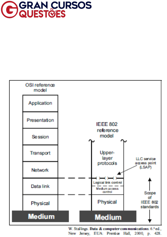 Simulado Criado em: 02/03/2021 às 23:19:34 A figura acima relaciona protocolos de uma LAN (local area network), no escopo do padrão de referência IEEE 802, à pilha de protocolos OSI (open systems interconnection). A partir dessa figura, julgue os itens subseqüentes. 1. [Q591590] A codificação e a decodificação de sinais transmitidos e recebidos em uma LAN são realizadas por funcionalidades implementadas pela camada física e pela camada denominada MAC (medium access control). Esse compartilhamento de funcionalidades constitui uma inovação do padrão IEEE 802 em relação ao padrão OSI, constituindo-se um exemplo do que se denomina atualmente de otimização cross-layer. c) Certo e) Errado Disciplinas/Assuntos vinculados: Tecnologia da Informação > OSI. Fonte: CESPE/CEBRASPE 2007 / Instituto Nacional de Metrologia, Normalização e Qualidade Industrial INMETRO - BR / Tecnologista em Metrologia - Área Engenharia de Telecomunicações / Questão: 115 Acerca do modelo OSI, julgue os itens que se seguem. 2. [Q257425] A comunicação confiável de fim-a-fim é provida pela camada de rede. c) Certo e) Errado Disciplinas/Assuntos vinculados: Tecnologia da Informação > Arquitetura de redes. Fonte: CESPE/CEBRASPE 2007 / Petrobras - BR / Auxiliar Técnico - Área Telecomunicações / Questão: 114 Acerca da implementação e da administração do Windows Server 2003, julgue os itens a seguir. 3. [Q256569] O endereço IP e a máscara de um servidor Windows Server 2003 podem ser estáticos e configurados manualmente. Se a rede não for segmentada, a máscara 0.0.0.0 deverá ser usada na configuração. c) Certo e) Errado Disciplinas/Assuntos vinculados: Tecnologia da Informação > Arquitetura de redes. Fonte: CESPE/CEBRASPE 2007 / Secretaria Municipal de Administração de Vitória SEMAD - ES / Analista em Tecnologia da Informação - Área Suporte / Questão: 76 4. [Q256570] Em uma rede, podem existir vários servidores Windows Server 2003 configurados como servidores DHCP. Em cada servidor, deve ser configurado o mesmo escopo para os clientes do serviço. c) Certo e) Errado Disciplinas/Assuntos vinculados: Tecnologia da Informação > Arquitetura de redes. Fonte: CESPE/CEBRASPE 2007 / Secretaria Municipal de Administração de Vitória SEMAD - ES / Analista em Tecnologia da Informação - Área Suporte / Questão: 77 5. [Q256571] Para um servidor DHCP ser usado em um domínio, ele deve ser autorizado no active directory. A autorização informa que o servidor DHCP está apto a fornecer endereçamento dinâmico no domínio. c) Certo e) Errado Disciplinas/Assuntos vinculados: Tecnologia da Informação > Arquitetura de redes. Fonte: CESPE/CEBRASPE 2007 / Secretaria Municipal de Administração de Vitória SEMAD - ES / Analista em Tecnologia da Informação - Área Suporte / Questão: 78 O diagrama e a tabela acima apresentam informações acerca de uma rede TCP/IP. Com relação a essa rede, julgue os itens que se seguem. 6. [Q256556] Para o correto funcionamento da rede, os endereços IP dos elementos de E1 a E13 devem ser todos da rede 10.0.0.0. c) Certo e) Errado Disciplinas/Assuntos vinculados: Tecnologia da Informação > Arquitetura de redes. Fonte: CESPE/CEBRASPE 2007 / Secretaria Municipal de Administração de Vitória SEMAD - ES / Analista em Tecnologia da Informação - Área Suporte / Questão: 63 7. [Q256557] É correto atribuir os seguintes endereços IP aos elementos E2, E6 e E8. c) Certo e) Errado Disciplinas/Assuntos vinculados: Tecnologia da Informação > Arquitetura de redes. Fonte: CESPE/CEBRASPE 2007 / Secretaria Municipal de Administração de Vitória SEMAD - ES / Analista em Tecnologia da Informação - Área Suporte / Questão: 64 8. [Q256558] A seguinte tabela de roteamento é correta para o roteador 1. c) Certo e) Errado Disciplinas/Assuntos vinculados: Tecnologia da Informação > Arquitetura de redes. Fonte: CESPE/CEBRASPE 2007 / Secretaria Municipal de Administração de Vitória SEMAD - ES / Analista em Tecnologia da Informação - Área Suporte / Questão: 65 9. [Q256559] A seguinte tabela de roteamento é correta para o roteador 2. c) Certo e) Errado Disciplinas/Assuntos vinculados: Tecnologia da Informação > Arquitetura de redes. Fonte: CESPE/CEBRASPE 2007 / Secretaria Municipal de Administração de Vitória SEMAD - ES / Analista em Tecnologia da Informação - Área Suporte / Questão: 66 10. [Q256560] A máscara 255.0.0.0 pode ser corretamente usada para segmentar a rede. c) Certo e) Errado Disciplinas/Assuntos vinculados: Tecnologia da Informação > Arquitetura de redes. Fonte: CESPE/CEBRASPE 2007 / Secretaria Municipal de Administração de Vitória SEMAD - ES / Analista em Tecnologia da Informação - Área Suporte / Questão: 67 11. [Q256561] O serviço de transferência de arquivos FTP será bloqueado se for definido, no firewall, filtro que descarte datagramas UDP destinados à porta número 25. c) Certo e) Errado Disciplinas/Assuntos vinculados: Tecnologia da Informação > Arquitetura de redes. Fonte: CESPE/CEBRASPE 2007 / Secretaria Municipal de Administração de Vitória SEMAD - ES / Analista em Tecnologia da Informação - Área Suporte / Questão: 68 No que se refere aos endereços IPv4, julgue os próximos itens. 12. [Q256553] Os endereços IP são compostos por 32 bits e organizados em classes. Em cada classe, há bits usados para identificar as redes, e outros usados para identificar as máquinas na rede. c) Certo e) Errado Disciplinas/Assuntos vinculados: Tecnologia da Informação > Arquitetura de redes. Fonte: CESPE/CEBRASPE 2007 / Secretaria Municipal de Administração de Vitória SEMAD - ES / Analista em Tecnologia da Informação - Área Suporte / Questão: 60 13. [Q256554] O endereço de multicast é usado quando é necessário enviar um datagrama para todas as máquinas em uma rede. O endereço de multicast portanto identifica todas as máquinas em uma rede. c) Certo e) Errado Disciplinas/Assuntos vinculados: Tecnolo