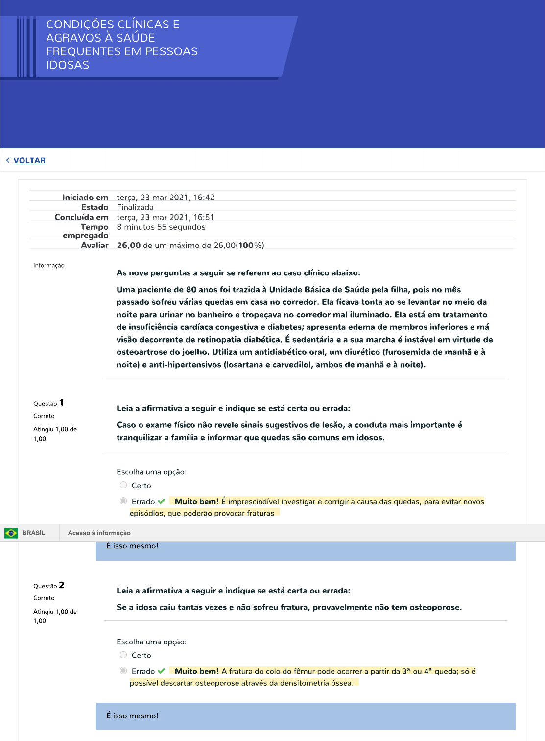Condições clínicas e agravos à saúde frequentes em pessoas idosas - Considerando a temática apresentada, assinale abaixo os itens que podem impacta...