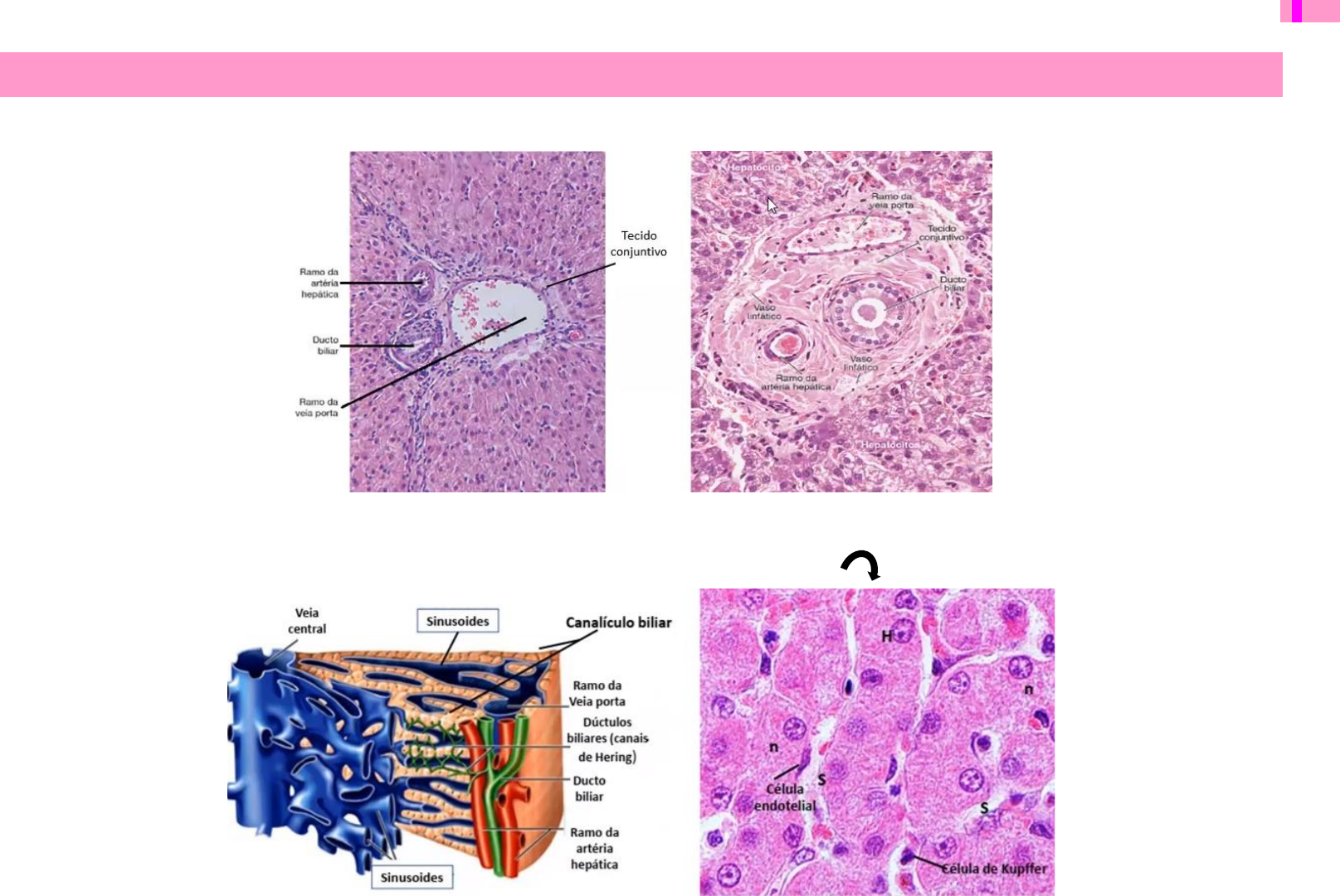 1 Gabrielle Nogueira Histologia – Fígado • Tríade Portal • Sinusoides. Cordões de Hepatócitos. 2 Gabrielle Nogueira • Veia Central • Hepatócito Célula endotelial Núcleo Nucléolo Mitocôndria Espaço de Disse 3 Gabrielle Nogueira • Ducto Biliares Intra-Hepáticos • Ductos Biliares extra-hepáticos Caminho da Bile. Hepatócitos centrais Hepatócitos periféricos Canalículos Biliares Dúctulos Biliares (Canais de Hering) Ducto Biliar Ducto Hepático Direito e Esquerdo Ducto Hepático Comum Ducto Cístico Bile 4 Gabrielle Nogueira • Suprimento Sanguíneo • Ácino hepático Maior concentração de Oxigênio e nutrientes. Maior concentração de digestos metabólicos. 5 Gabrielle Nogueira