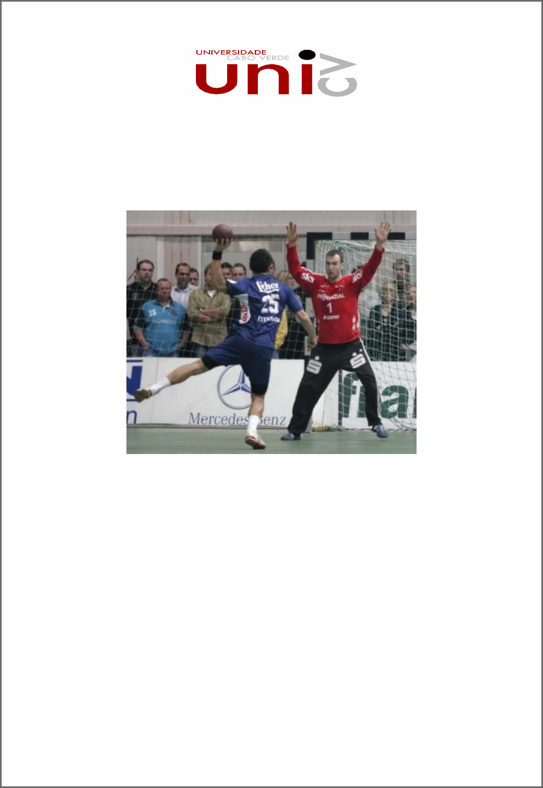 1 Titulo: História do Andebol em Cabo Verde Trabalho Científico apresentado na Universidade de Cabo Verde para obtenção do grau de Bacharelato em Educação Física, sob Orientação da Pós Graduada Swailla Ribeiro Emerson Jorge Lima Miranda 2 Trabalho científico subordinado ao tema História do Andebol em Cabo Verde Aprovado pelos membros do júri: Presidente __________________________________ Arguente ___________________________________ Orientador ___________________________________ Cidade da Praia, _____ de ______________________ de 2010 3 Dedicatória A todos os meus familiares em especial ao meu filho recém-nascido Kauã Guilherme Ribeiro Lima Miranda 4 Agradecimentos Para a concretização deste trabalho houve contributo de inúmeras pessoas. Agradeço a minha esposa e Orientadora Swailla Ribeiro, pelo apoio a este trabalho porque sem o seu apoio não seria possível o término do trabalho. Á minha Professora Filomena Fortes que ajudou-me na escolha do tema, aos Professores Jean Pierre, José Luís Gomes (Tchipo), Maria da Luz, Anita da Federação Caboverdiana de Andebol, Dona Béty, e aos meus colegas de Curso um enorme obrigado. Um especial obrigado a minha querida mãe que proporcionou-me todo o apoio para que eu pudesse terminar o Curso. 5 Índice Dedicatória…………………………………………………………………………………..…3 Agradecimentos……………………………………………………………………………..…4 Índice de figuras………………………………………………………………………….….…7 Índice de anexos………………………………………………………………………….…….7 Introdução…………………………………………………………………………….…….….8 Justificação do tema…………………………………………………………………..…….….9 CAPITULO I – HISTÓRIA DO ANDEBOL……………………………………………….10 1.1. História do Andebol Mundial………………………………………………………...….10 1.2. História do Andebol em Cabo Verde……………………………………………………13 CAPITULO II – CARACTERIZAÇÃO DO JOGO DE ANDEBOL……………………...16 2.1. Características dos jogadores de Andebol…………………………………………….…16 2.2. Tácticas do Andebol…………………………………………………………………..…20 2.3. Acções Técnicas Individuais…………………………………………………………….25 CAPITULO III – EQUIPAMENTOS DO ANDEBOL…………………………………….28 3.1. O campo………………………………………………………………………………….28 3.2. A bola…………………………………………………………………………………….30 3.3. Qualidade do calçado do Andebol……………………………………………………….31 3.4. Regras do Jogo………………………………………………………………………..….33 CAPITULO IV – BENEFÍCIOS DA PRATICA DO ANDEBOL………………………....35 CAPITULO V – ENQUADRAMENTO METODOLÓGICO…………………………...…37 5.1. Definição da problemática…………………………………………………………….…37 6 CAPITULO VI – CONCLUSÕES E RECOMENDAÇÕES …………………………...…38 Bibliografia ……………………………………………………………………………..……39 Anexos……………………………………………………………………………………..…40 7 Índice de Figuras Figura 1 – Campo de Andebol………………………………………………………..………29 Figura 2 – Baliza………………………………………………………………...……………30 Figura 3 – Bola de Andebol nº3…………………………………….……….………………..31 Figura 4 – Sapatilha de Andebol……………………………………………….……………..33 Índice de Anexo Entrevista a Presidente da federação Caboverdiana de Andebol……………………………..40 Entrevista ao Sr. José Luís Gomes (Tchipo)……………………………………………….…42 Entrevista ao Professor de Educação Física Sr. Jean Pierre………………………………..…44 8 Introdução O andebol sendo uma modalidade desportiva colectiva e inserido no grupo dos exercícios aeróbicos, caracteriza-se pela velocidade, potência e resistência, além de apresentar o contacto directo entre os jogadores. O mundo tem assistido a um aumento significativo das doenças cardiovasculares, cancro, diabetes e doenças respiratórias crónicas. Este aumento global, epidémico, está estritamente relacionado com alterações dos estilos de vida, nomeadamente o tabagismo, sedentarismo e uma alimentação não saudável. A prática regular de actividade física sempre esteve ligada à imagem de pessoas saudáveis. A prática regular de exercícios físicos juntamente com a prática do Andebol acompanha-se de benefícios que se manifestam sob todos os aspectos do organismo, apresentando-se muitas vantagens ao músculo-esquelético, auxiliando na melhoria da força e do tónus muscular, melhorias de flexibilidade e fortalecimento dos ossos e das articulações. Sintetizando a prática do andebol traz melhorias a saúde em termos mental e físico. O andebol é uma das modalidades com mais praticantes e adeptos em Cabo Verde é que tem desenvolvido muito nos últimos anos, fazendo com que haja uma crescente de procura de pessoas pela prática. Essa crescente vem desde da última eleição em que a Professora de Educação Física Filomena Fortes foi eleita. Não se sabe quem foram os precursores do andebol em Cabo Verde, vis