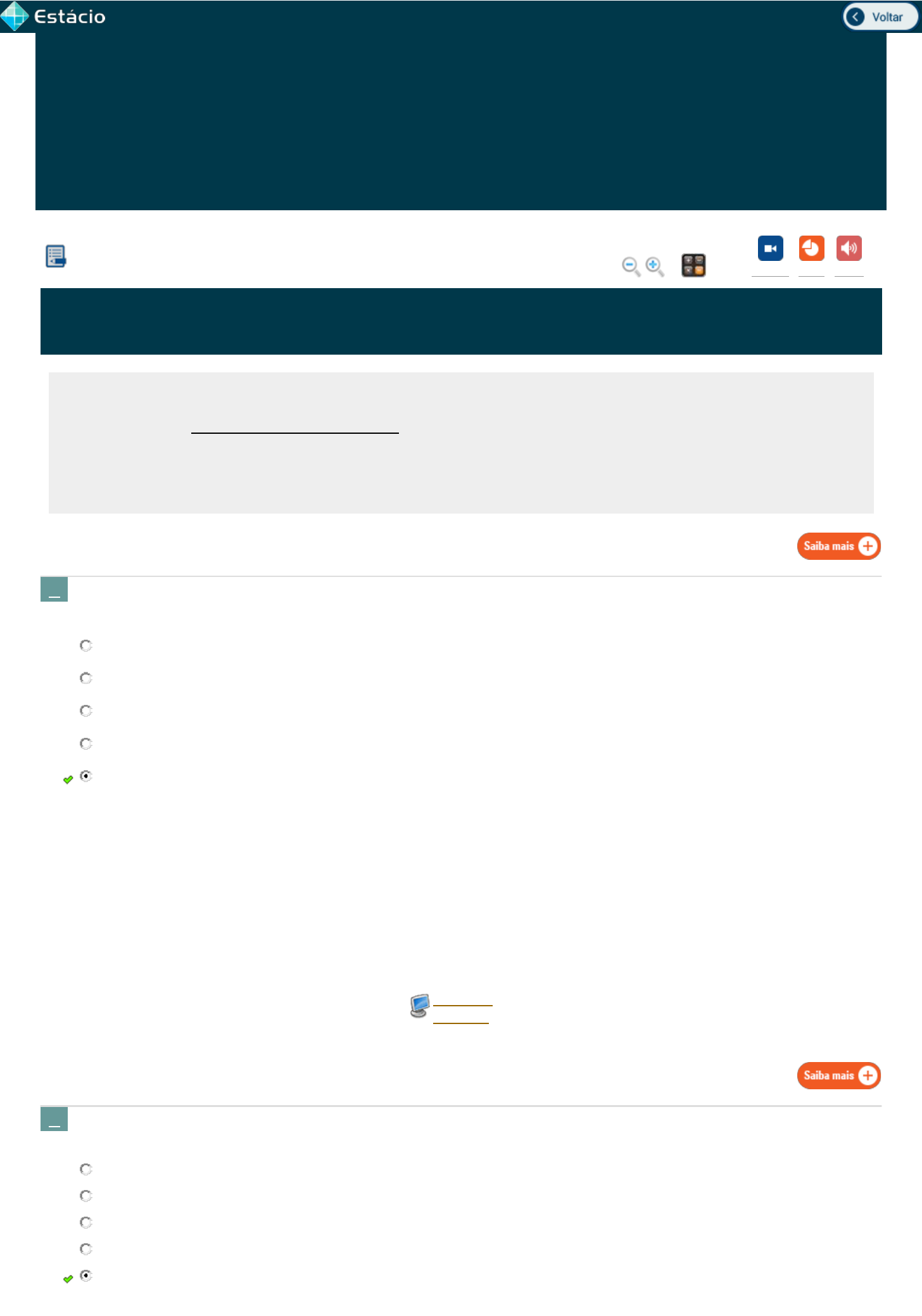 FUNDAMENTOS DE SISTEMAS DE INFORMAÇÃO Lupa Calc. Vídeo PPT MP3 Prezado (a) Aluno(a), Você fará agora seu TESTE DE CONHECIMENTO! Lembre-se que este exercício é opcional, mas não valerá ponto para sua avaliação. O mesmo será composto de questões de múltipla escolha. Após responde cada questão, você terá acesso ao gabarito comentado e/ou à explicação da mesma. Aproveite para se familiarizar com este modelo de questões que será usado na sua AV e AVS. 1. Os softwares de apoio ao comércio eletrônico são classificados em software aplicativo e de sistema. Os Softwares Aplicativos são considerados como: Programas que gerenciam e apoiam operações de um sistema de computador e suas atividades de processamento e de gerenciamento de redes Programas de Desenvolvimento de Sistemas onde podemos encontrar os tradutores de linguagem de programação Programas de Gerenciamento de Redes e Banco de Dados engloba utilitários para sistemas e monitores de desempenho e segurança Programas de Gerenciamento de Sistemas onde podemos encontrar os sistemas operacionais Programas Aplicativos para Finalidades Gerais como navegadores de redes, correio eletrônico, processamento de texto, planilhas eletrônicas ou gerenciamento de banco de dados Explicação: Essa resposta está correta porque o SW (Software) é uma sequência de instruções a serem seguidas e/ou executadas na manipulação, no redirecionamento ou na modificação de um dado/informação ou acontecimento. Eles podem ser SW Aplicativo ou SW de Sistemas. Os SW de Sistema são programas que gerenciam e apoiam operações de um sistema de computador e suas atividades de processamento e de gerenciamento de redes. Gabarito Coment. 2. Software de Sistema de informação computadorizado, com predicados de inteligência artificial, que processa conhecimentos sobre uma área de aplicação específica e complexa, para simular um consultor especializado para os usuários. Estamos falando de: Agentes inteligentes Sistema de lógica difusa Interfaces Multissensoriais Realidade virtual Sistemas especialistas 3. A empresa para desenvolver o seu e-commerce precisa de Softwares. O Software é uma sequência de instruções a serem seguidas e/ou executadas na manipulação, no redirecionamento ou na modificação de um dado/informação ou acontecimento. Temos Software Aplicativo e Software de Sistema. Com relação ao Software Aplicativo assinale a resposta INCORRETA. Esse Software é composto por programas Aplicativos Específicos. O objetivo desse Software são programas que gerenciam e apoiam operações de um sistema de computador e suas atividades de processamento e de gerenciamento de redes. O foco desse sistema é o usuário final. O objetivo desse Software é o desempenho de tarefas de índole prática, como o trabalho em escritório ou empresarial. Esse Software é composto por programas Aplicativos para Finalidades Gerais. Explicação: Essa afirmativa está INCORRETA porque esse é o objetivo do Software de Sistema. 4. O e-commerce ou simplesmente comércio eletrônico é parte integrante do e-business, e para que ele possa ser efetivamente utilizado pelo cliente são necessários alguns Processos Essenciais como: Controle de Acesso, Criptografia e Perfil de Usuário; Conteúdo e Catálogo, Fluxo de Atividades e Perfil de Usuário; Criptografia, Fluxo de Atividades e Processo de Cobrança; Processo de Cobrança, Controle de Acesso e Notificação de Eventos; Controle de Acesso, Notificação de Eventos e Processo de Cobrança; Gabarito Coment. 5. Área da inteligência artificial, cujas aplicações incluem: Percepção visual; Faculdades táteis; Destreza; Locomoção e Condução. Estamos falando de: Robótica Sistemas especialistas Agentes inteligentes Realidade virtual Reconhecimento de voz Gabarito Coment. 6. O e-commerce não teria evoluído se não fosse apoiado por uma tecnologia. Com relação a tecnologia de Servidores, podemos afirmar que: I- Servidores de FTP gerenciam os serviços de envio e recebimento de e-mails. II- Servidores de bancos de dados, contendo os SGBD (Sistemas gerenciadores de bancos de dados), onde estarão os bancos de dados das organizações. III- Servidores de aplicações gerenciam o conteúdo, as aplicações e os sites que disponibilizam o comércio eletrônico. Est(á)ão correto(s) a(s) afirmativa(s): Somente o item II; Somente os itens I e II; Somente o item I; Somente o item III; Somente os itens II e III; Explicação: O item I está errado porque esta afirmação é para servidores de e-mail. Os servidores de FTP gerenciam o acesso à área de FTP. Exemplos de uso: troca de dados entre filiais de uma empresa; ou ainda para disponibilizar arquivos de dados para os clientes baixarem. 7. Os softwares de apoio ao comércio eletrônico são classificados em software aplicativo e de sistema. Os softwares aplicativos são considerados como: Programas de gerenciamento do sistema operacional. Programas de gerenciamento de redes de computadores Programa de controle de acesso à internet. Navegadores de internet, correio eletrônico, processamento de texto, planilhas eletrônicas e gerenciadores de banco de dados. Programas de monitoramento de velocidade de acesso a internet. Explicação: Software é uma sequência de instruções a serem seguidas e/ou executadas na manipulação, no redirecionamento ou na modificação de um dado/informação ou acontecimento. O seu objetivo é o desempenho de tarefas de índole prática, como o trabalho em escritório ou empresarial, cujo foco é: o usuário final. Os Programas Aplicativos para Finalidades Gerais podem ser: Navegadores de redes, correio eletrônico, processamento de texto, planilhas eletrônicas ou gerenciamento de BD. Gabarito Coment. 8. O e-commerce não teria evoluído se não fosse apoiado por uma tecnologia. Com relação a tecnologia de Servidores, podemos afirmar que: I- Servidores de FTP gerenciam o acesso à área de FTP. Exemplos de u