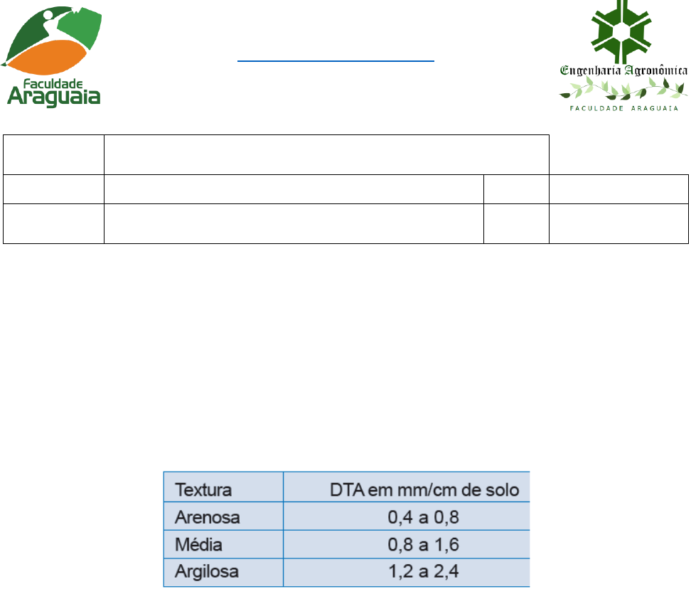 Sociedade de Educação e Cultura de Goiás www.faculdadearaguaia.edu.br Coordenação do Curso de Engenharia Agronômica coord.engagro@faculdadearaguaia.edu.br Aluno (a): Nota: _________ Disciplina: IRRIGAÇÃO E DRENAGEM Turma: 8° A Professor (a): MSc. Mateus Morais Santos Data: Lista de exercícios nº 2 – (Valor 2,5 pontos) 1. (Valor: 1,0 pontos) A disponibilidade total de água de um solo (DTA), em mm/cm de solo, é dada pela expressão: DTA = Da (Cc – Pm)/10, em que Cc é a capacidade de campo, Pm é o ponto de murchamento, ambos em % do peso do solo, e Da é a densidade aparente do solo, em g/cm3. A DTA geralmente aumenta à medida que a textura do solo diminui, conforme pode ser visto no quadro a seguir. Para se chegar ao valor da irrigação total necessária (ITN), o valor da DTA deve ser multiplicado pela profundidade do sistema radicular, em cm (Z), e por um fator de disponibilidade (f), e dividido pela “eficiência de aplicação da irrigação” (Ea). O fator de disponibilidade varia conforme a sensibilidade de cada cultura e a demanda evapotranspirométrica, sendo, em geral, baixo para olerícolas (0,2 a 0,6), médio para fruteiras e forrageiras (0,3 a 0,7), e alto para grãos (0,4 a 0,8). Sendo assim, afirma-se que a) Calcule a ITN para um solo arenoso e com cultivos de olerícolas, para uma cultura com profundidade de raízes Z= 50 cm e fator f = 0,6, e considerando um equipamento com uma eficiência de 60% (0,6). b) Calcule a ITN em um solo onde Cc = 25%, Pm = 15%, Da = 1,2, com uma cultura com profundidade de raízes Z= 50 cm e fator f = 0,6, e considerando um equipamento com uma eficiência de 60% (0,6). c) Um solo argiloso e com culturas com maiores profundidades de raízes exigirão maiores ITN? d) quanto maior a eficiência de aplicação de irrigação, menor deverá ser a profundidade média das raízes? e) quanto maior a eficiência de aplicação de irrigação maior deverá ser a profundidade média das raízes? http://www.faculdadearaguaia.edu.br/ Sociedade de Educação e Cultura de Goiás www.faculdadearaguaia.edu.br Coordenação do Curso de Engenharia Agronômica coord.engagro@faculdadearaguaia.edu.br 2. (Valor: 0,5 pontos) O processo de infiltração de água no solo tem grande importância em projetos de irrigação, principalmente no que se refere ao conceito de velocidade de infiltração (VI) de água no solo, expressa em cm/h ou em mm/h. Em experimento conduzido em Dourados- MS, objetivou-se avaliar a infiltração e verificar a adequação das equações de Horton e Kostiakov-Lewis, na estimativa da taxa de infiltração da água em diferentes sistemas de cultivo, em um mesmo tipo de solo. Nas Figuras 1 e 2, estão apresentadas as taxas de infiltração, respectivamente, no plantio convencional e no plantio direto, na sucessão soja- nabo forrageiro. http://www.faculdadearaguaia.edu.br/ Sociedade de Educação e Cultura de Goiás www.faculdadearaguaia.edu.br Coordenação do Curso de Engenharia Agronômica coord.engagro@faculdadearaguaia.edu.br Analisando essas informações, conclui-se que a) o sistema de plantio direto apresentou valores de taxa de infiltração final de água no solo inferiores ao preparo convencional. b) um solo coberto por vegetação, como o que é característico do plantio direto, é menos permeável do que um solo desmatado ou sob plantio convencional. c) a velocidade de infiltração básica (VIB) do solo, em plantio convencional, foi maior. d) a taxa de infiltração do solo em plantio direto é maior que a do solo em plantio convencional (soja- pousio), pelo maior teor de argila presente no solo sob plantio direto. e) a velocidade de infiltração básica (VIB) do solo em plantio direto, com a sucessão soja- nabo, foi superior. 3. (Valor: 0,5 pontos) A disponibilidade de água para irrigação vem diminuindo drasticamente, e cada vez mais têm-se empregado na agricultura vários métodos para controlar a quantidade de água nesse processo. Recentemente, estão sendo desenvolvidos novos equipamentos e técnicas, com baixo custo, grande durabilidade e de fácil instalação e operação, para avaliar a tensão da água no solo. A respeito desse assunto e da medição da quantidade de água no solo, explique o método de funcionamento de dois desses equipamentos. 4. (Valor: 0,5 pontos) A determinação do teor de água por esse método é muito utilizada em sistemas de irrigação. Este é um método indireto para a determinação da umidade do solo, a partir da tensão de água retida no mesmo. Qual é o nome desse equipamento? http://www.faculdadearaguaia.edu.br/