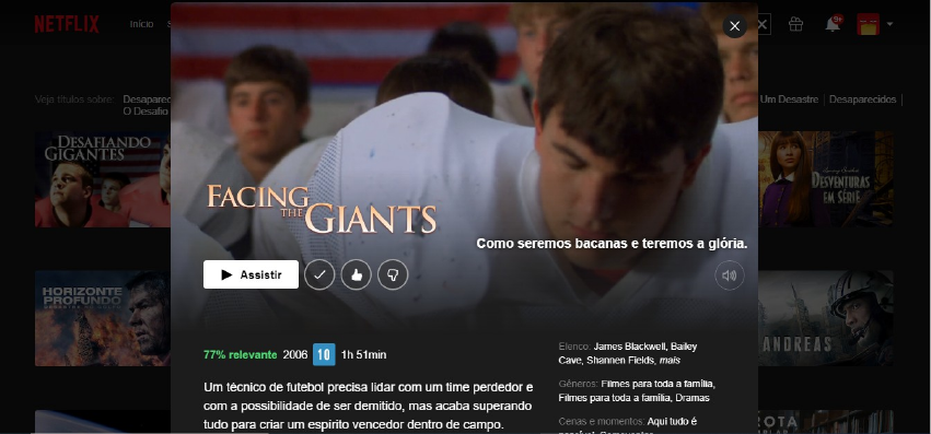 Nome: Mariana Mascarenhas L. Santos RA:0506252 Recursos Humanos Filme: Desafiando Gigantes O filme trata muito sobre fé, liderança, motivação, trabalho em grupo e superação. A história refere-se a vida de um treinador de futebol americano que não sabia o que era vencer a 6 anos, pois ele não tinha fé, não sabia liderar e nem planejar. O técnico já não tinha mais esperanças de se tornar um bom líder novamente, ninguém mais acreditava em seu potencial, nem ele mesmo. Até que um dia veio um visitante inesperado e o desafiou a acreditar que o poder da fé poderia mudar tudo, desde então ele começou a ter força para superar e perseverança em vencer. Os alunos precisavam do bom desempenho do time para conseguirem bolsas de estudos. Juntos, como um time, eles começaram a ter fé e acreditar que poderiam vencer e ser alguém melhor, o treinador começou a liderar melhor e planejar melhor, obtendo assim um melhor desempenho e sucesso. O filme nos mostra como um bom líder pode gerar outros grandes líderes, a base de tudo é a força de vontade, um bom planejamento e saber liderar um time sempre os motivando, hoje, infelizmente, temos poucos líderes assim nas organizações. O número de funcionários desmotivados hoje é muito grande, gerando um mal desempenho e instabilidade nas empresas. Precisamos de mais pessoas que sabem liderar para um melhor desempenho dentro das organizações.