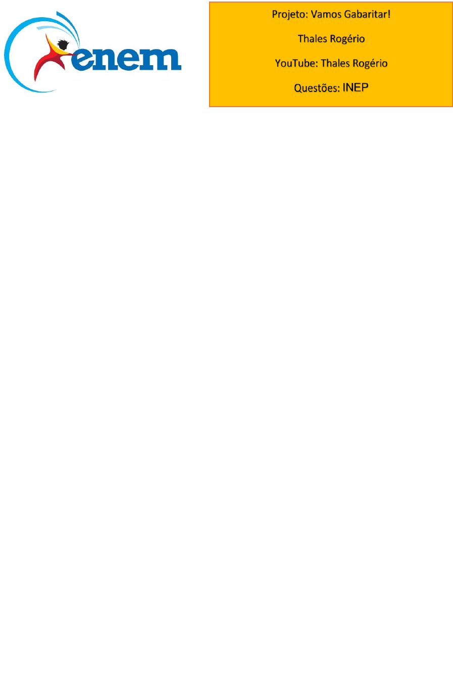 Questões de Geografia 1- Desde a sua formação, há quase 4,5 bilhões de anos, a Terra sofreu várias modificações em seu clima, com períodos alternados de aquecimento e resfriamento e elevação ou decréscimo de pluviosidade, sendo algumas em escala global e outras em nível menor. ROSS, J. S. (Org.) Geografia do Brasil. São Paulo: Editora da Universidade de São Paulo, 2003 (adaptado). Um dos fenômenos climáticos conhecidos no planeta atualmente é o El Nino que consiste a) na mudança da dinâmica da altitude e da temperatura. b) nas temperaturas suavizadas pela proximidade com o mar. c) na modificação da ação da temperatura em relação à latitude. d) no aquecimento das águas do Oceano Pacífico, que altera o clima. e) na interferência de fatores como pressão e ação dos ventos do Oceano Atlântico. 2- A sociedade em movimento tem gestado algumas alternativas. Surgem novas experiências de luta no campo, nas quais os movimentos sociais têm buscado formas para permanecer na terra, afirmando sua territorialidade. Estes novos sujeitos sociais, de que são exemplo os seringueiros no Acre e as quebradeiras de coco no Maranhão, Pará, Tocantins e Piauí, têm lutado por seu reconhecimento, chegando em certos casos a obter mudanças na legislação. MARQUES, M. O conceito de espaço rural em questão. São Paulo: Terra Livre, ano 18, v. 2, jul./dez. 2002. De acordo com o debate apresentado no texto, e visando à permanência digna no campo, a organização social e política dos seringueiros busca a) a implementação de estratégias de geração de emprego e renda apoiadas na automação produtiva de ponta. b) a efetivação de políticas públicas para a preservação das florestas como condição de garantia de sustentabilidade. c) a distribuição de grandes extensões de terra com financiamentos voltados à produção agroindustrial em larga escala. d) o estímulo à implantação generalizada de indústrias do setor de papel e celulose focadas na Amazônia. e) o aprofundamento de políticas governamentais que potencializem os fluxos sociais para as cidades. 3- Uma gigante empresa taiwanesa do setor de tecnologia vai substituir parte de seus funcionários por um milhão de robôs em até três anos, segundo a agência de notícias chinesa. O objetivo é cortar despesas. Os robôs serão usados para fazer trabalhos simples e de rotina, como limpeza, soldagem e montagem, atividades que atualmente são feitas por funcionários. A empresa já tem 10 mil robôs e o número deve chegar a 300 mil em 2012 e a um milhão em três anos. Fabricante do Ipad vai trocar trabalhadores por um m ilhão de robôs em três anos. Disponível em: http://noticias.r7.com. Acesso em: 21 ago. 2011 (adaptado). Em relação aos efeitos da decisão da empresa, uma divergência entre o empresário e os funcionários, no exemplo citado, encontra-se nos respectivos argumentos: a) Aumento da eficiência - Perda dos postos de trabalho. b) Reforço da produtividade - Ampliação das negociações. c) Diminuição dos custos - Redução da competitividade. d) Inovação dos investimentos - Flexibilização da produção. e) Racionalização do trabalho - Modernização das atividades. 4- O gráfico divulgado pela Associação por Vias Seguras traça objetivamente, a partir de dados do Ministério da Saúde, um histórico do número de vítimas fatais em decorrência de acidentes de trânsito no Brasil ao longo de catorze anos. As informações nele dispostas demonstram que o número de vítimas fatais a) aumentou de forma progressiva ao longo do período. b) teve sua maior redução no final da década de noventa. c) estabilizou-se nos cinco primeiros anos do século XXI. d) sofreu mais redução que aumento ao longo do período. e) estabilizou-se na passagem do século XX ao século XXI. 5- Cenas do filme Tempos Modernos (Modern Times), EUA, 1936, Direção: Charles Chaplin, Produção: Continental. A figura representada por Charles Chaplin critica o modelo de produção do início do século XX, nos Estados Unidos da América, que se espalhou por diversos países e setores da economia e teve como resultado a) a subordinação do trabalhador à máquina, levando o homem a desenvolver um trabalho repetitivo. b) a ampliação da capacidade criativa e da polivalência funcional para cada homem em seu posto de trabalho. c) a organização do trabalho que possibilitou ao trabalhador o controle sobre a mecanização do processo de produção. d) o rápido declínio do absenteísmo, o grande aumento da produção conjugado com a diminuição das áreas de estoque. e) as novas técnicas de produção que provocaram ganhos de produtividade, repassados aos trabalhadores como forma de eliminar as greves. 6- TEXTO I Em março de 2004, o Brasil reconheceu na Organização das Nações Unidas a existência, no país, de pelo menos 25 mil pessoas em condição análoga à escravidão — e esse é um índice considerado otimista. De 1995 a agosto de 2009, cerca de 35 mil pessoas foram libertadas em ações dos grupos móveis de fiscalização do Ministério do Trabalho e Emprego. Mentiras mais contadas sobre trabalho escravo. Disponível em: www.reporterbrasil.com.br. Acesso em: 22 ago. 2011 (adaptado). TEXTO II O Brasil subiu quatro posições entre 2009 e 2010 no ranking do Índice de Desenvolvimento Humano (IDH) divulgado pelo Programa das Nações Unidas para Desenvolvimento. Mas, se o IDH levasse em conta apenas a questão da escolaridade, a posição do Brasil no ranking mundial ficaria pior, passando de 73 para 93. UCHINAKA, F; CHAVES-SCARELLI, T Brasil é o país que mais avança, apesar da variável "educação” puxar IDH para baixo. Disponível em: http://noticias.uol.com.br. Acesso em: 22 ago. 2011 (adaptado). Estão sugeridas nos textos duas situações de exclusão social, cuja superação exige, respectivamente, medidas de a) redução de impostos e políticas de ações afirmativas. b) geração 